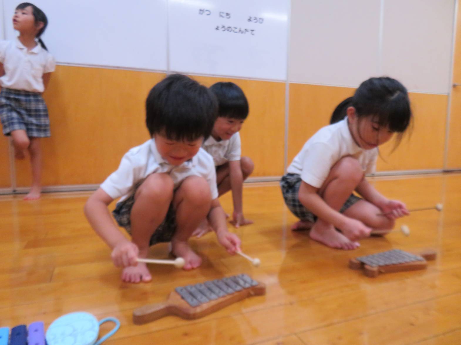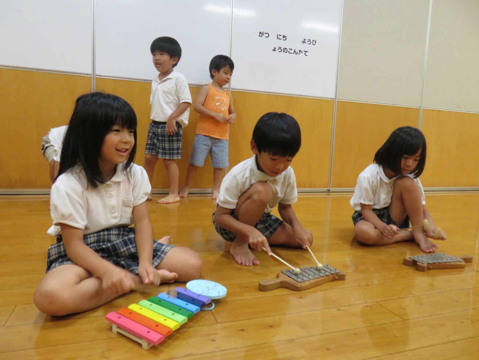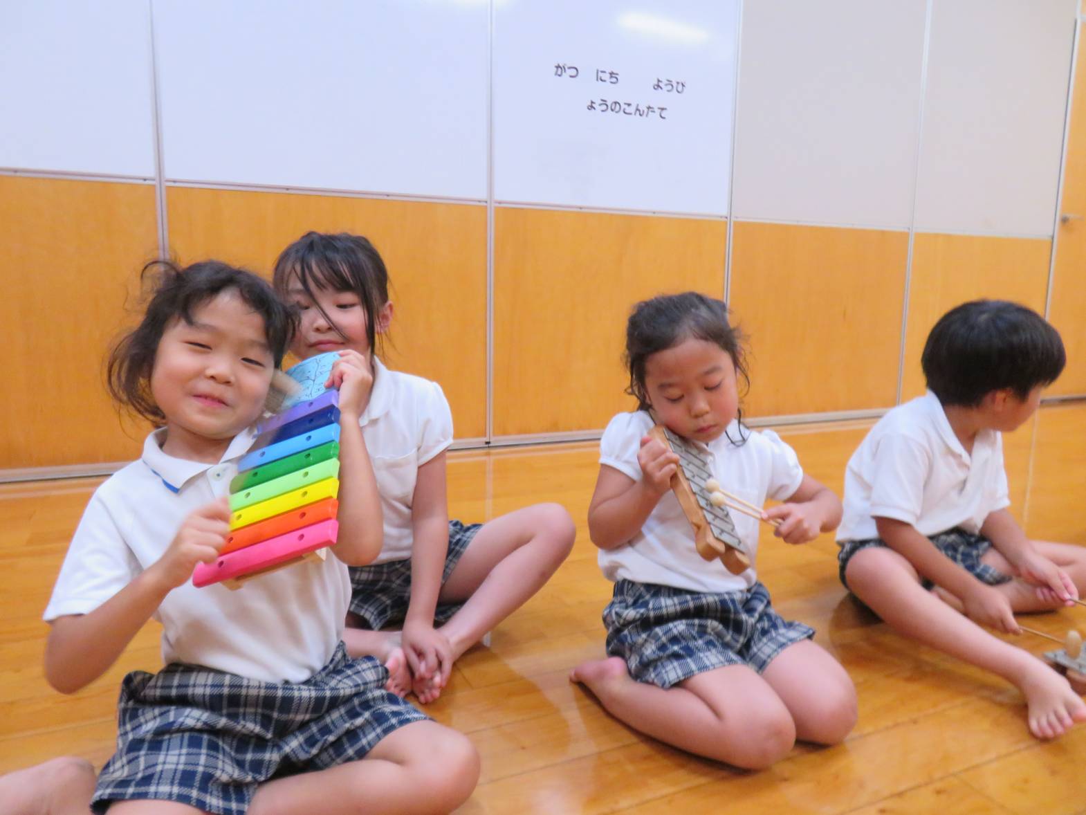 終わりの時間になると、「この楽器面白かった。」「ピアノまたしようね!」と満足気な表情や次の演奏を楽しみするきりん組さんでした。