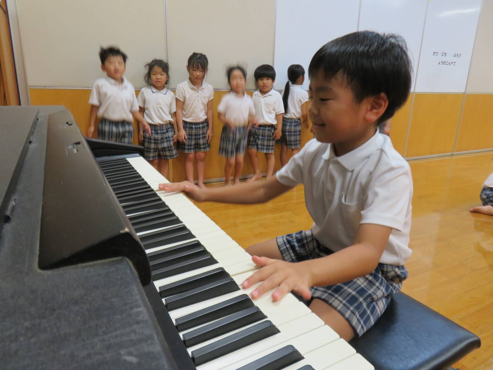 念願のピアノを弾く中でも、片手で一音一音耳を傾けながら弾く子や両手で軽快に弾く子と演奏の仕方も様々。