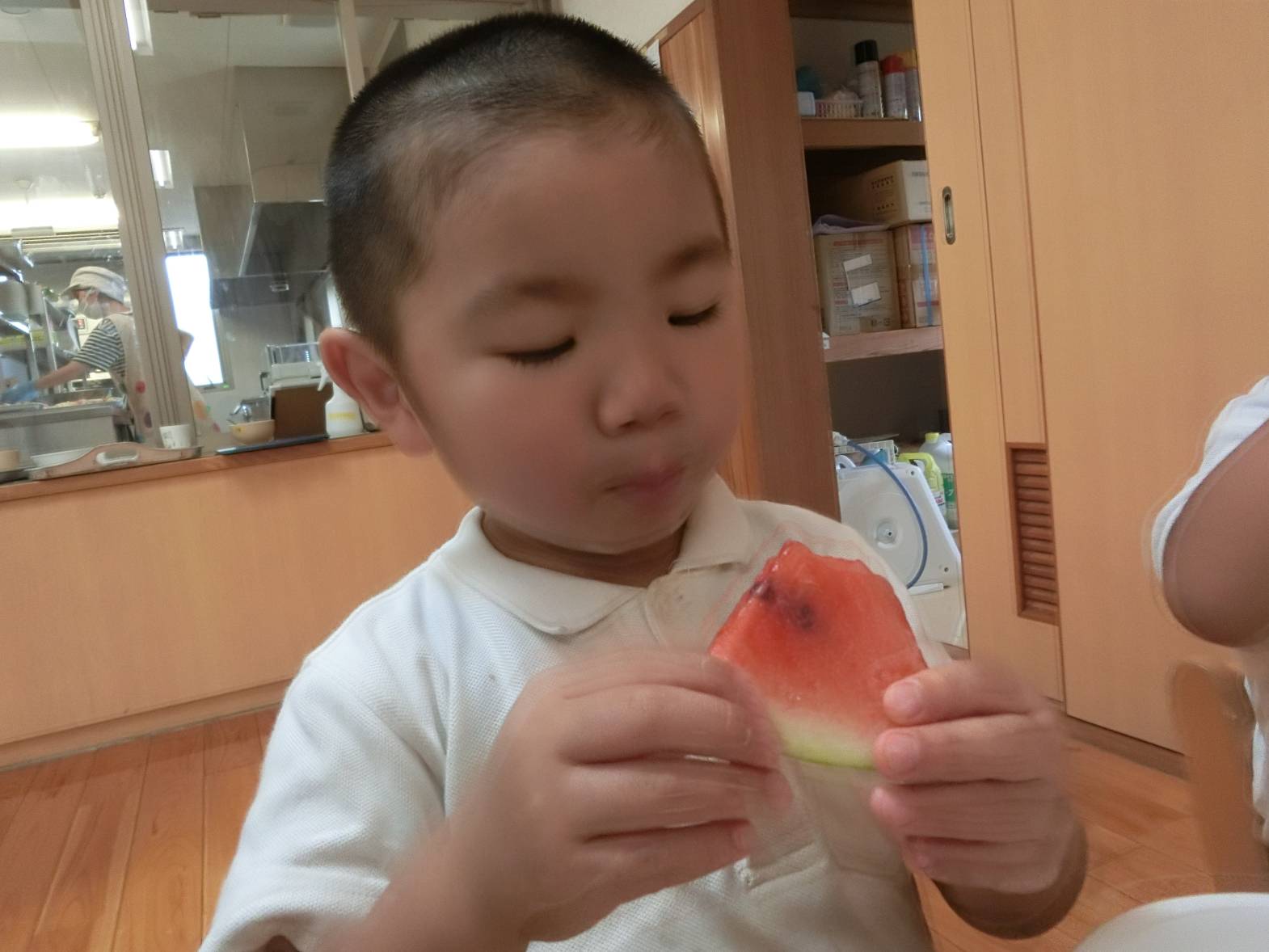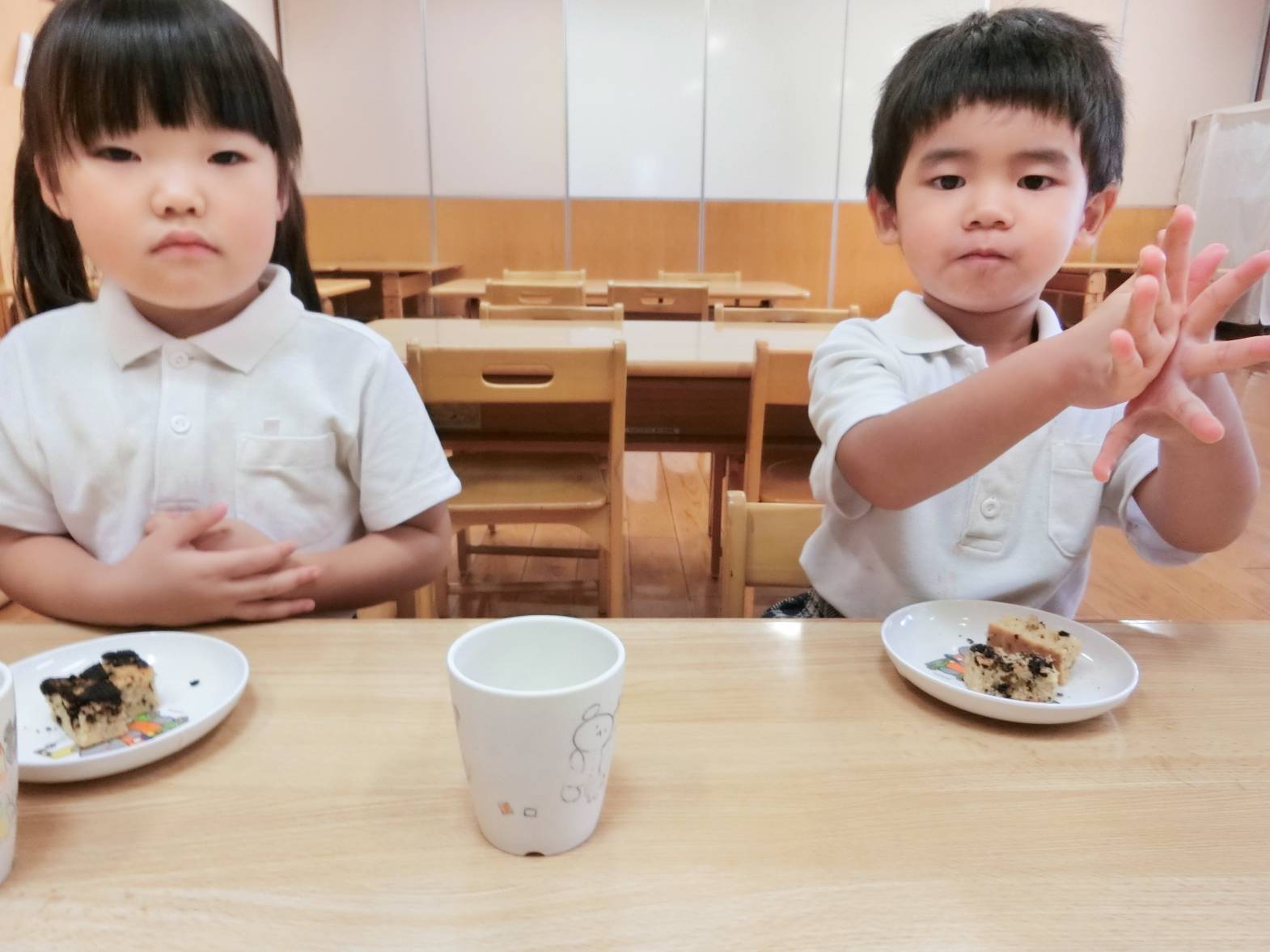 おやつには、ケーキとカルピスが出て「カルピスいっぱい欲しいな♪」、「おやつおかわりある?」とたくさん食べたい気持ちのりす組さんでした。