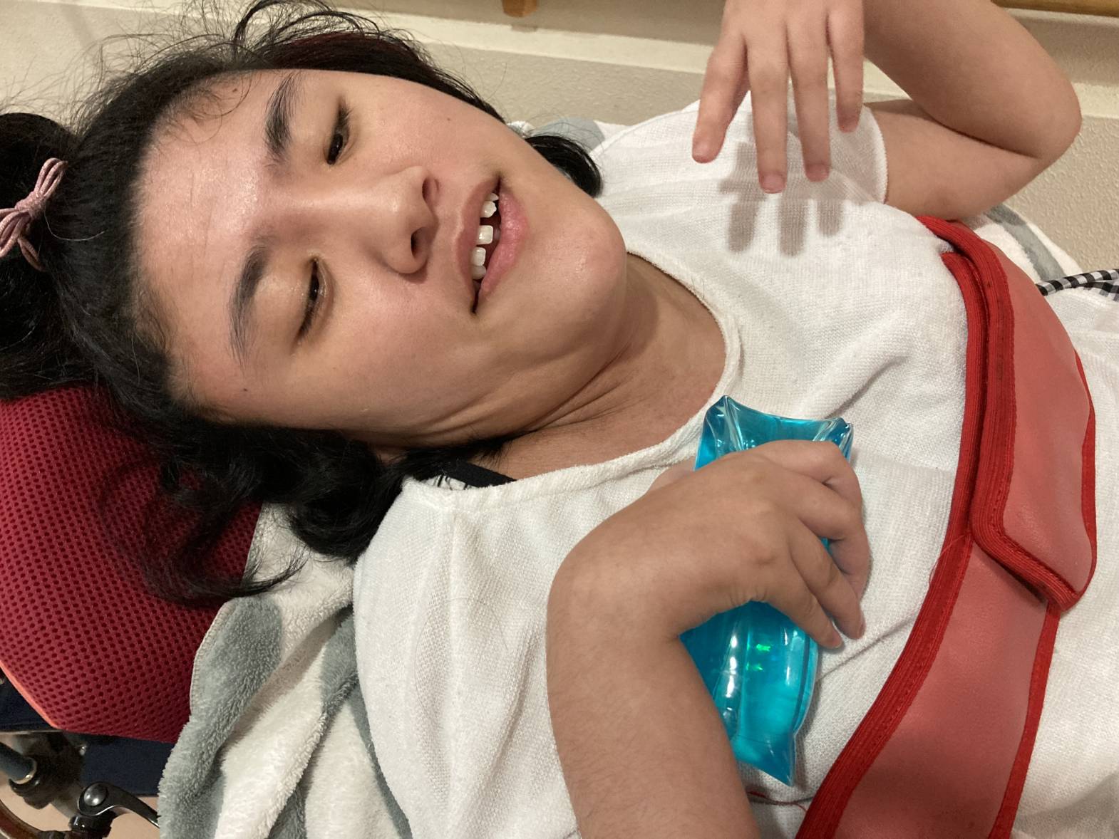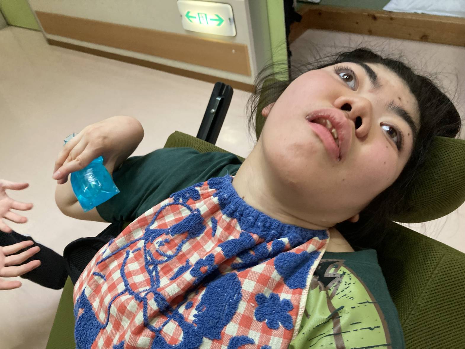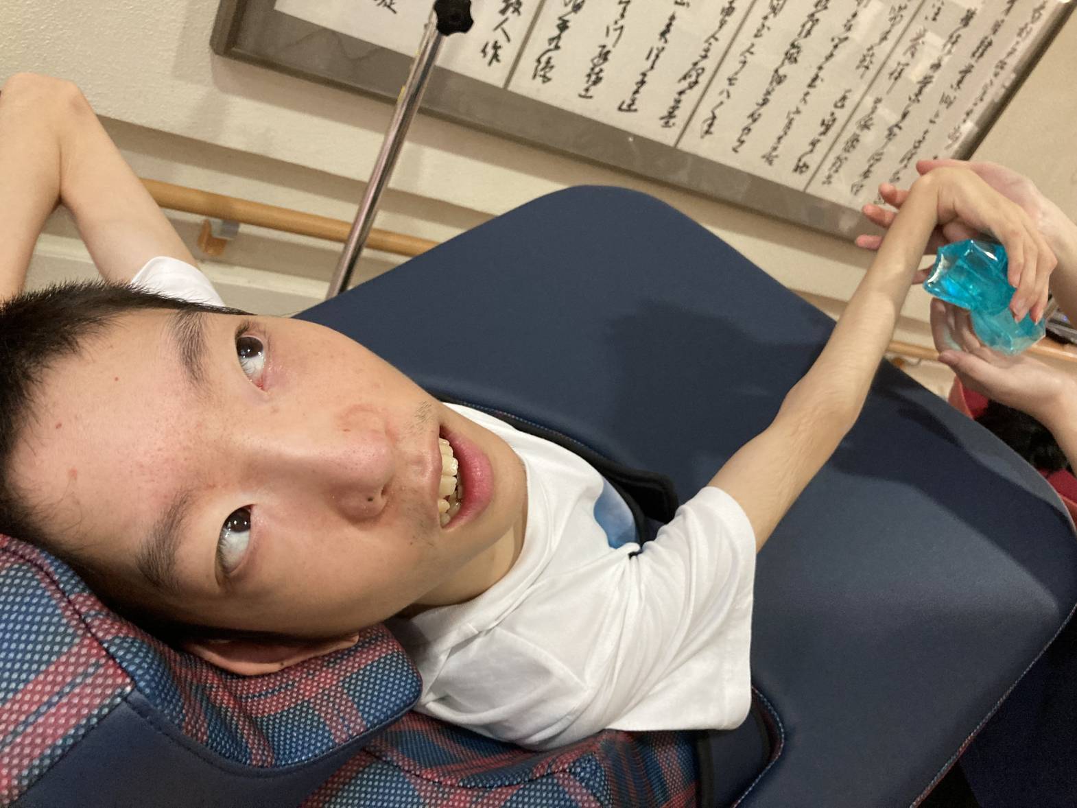 今日はレクリエーション活動で「にょろにょろ棒」を使って感触ゲームを行いました。