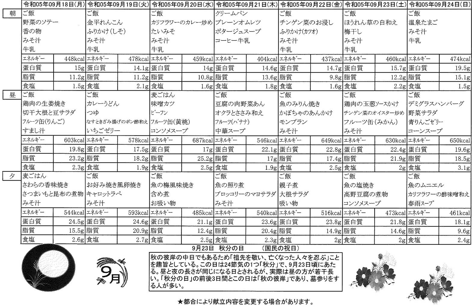9月18日(月)~9月24日(日)の献立表になります。是非ご覧ください。