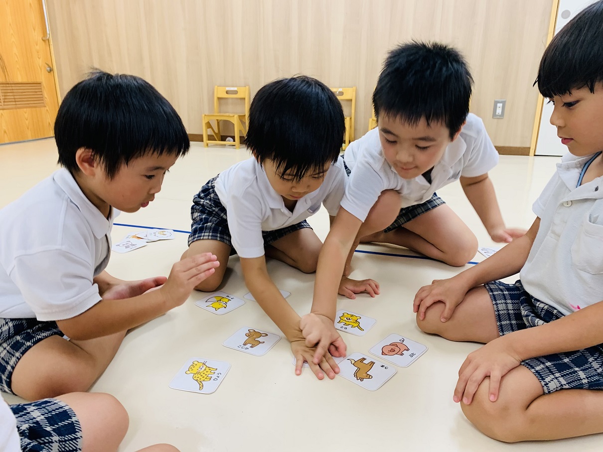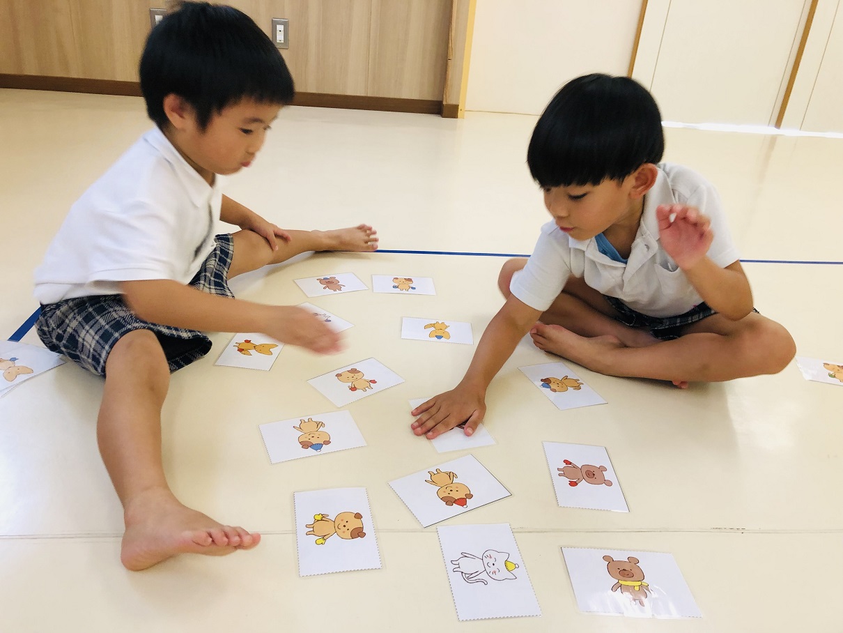 日々の文字遊びで、読める平仮名も増えてきたぞう①グループさん。 みんなでかるた遊びに取り組んでみました! 職員の声を聞いて、素早くカードに手を伸ばす子どもたち。 同時に手を置いた際はジャンケンで決めたり、誰が早かったか聞いたり話し合うことができました! 最後みんなで枚数を数え、1位を決めると、「すごいね!」と素敵な言葉が飛び交いました♪ 「またかるたしたい!」「今度はもっと難しいのがいいな!」と次回の活動に期待を膨らませるぞう①グループさんでした☆