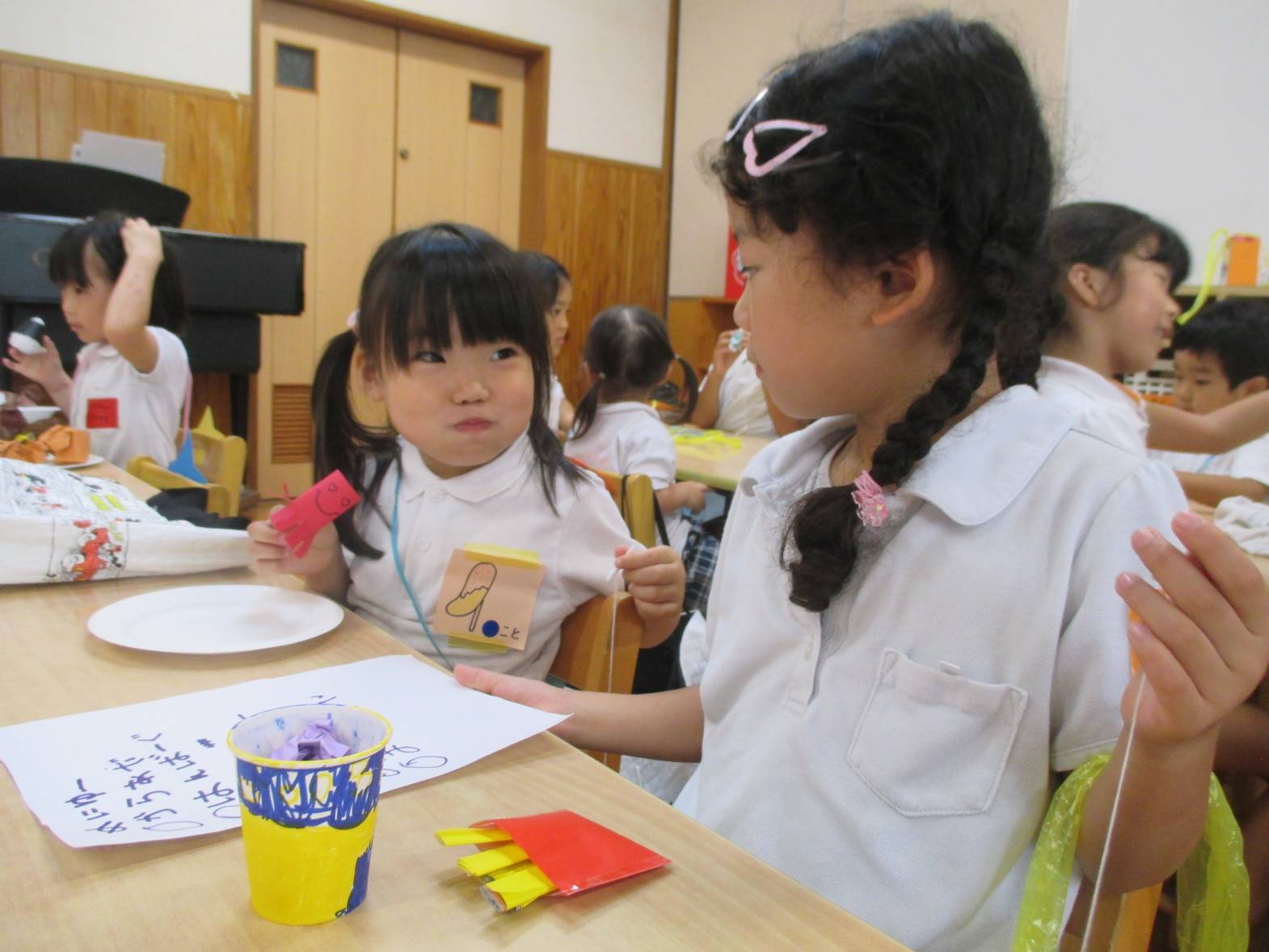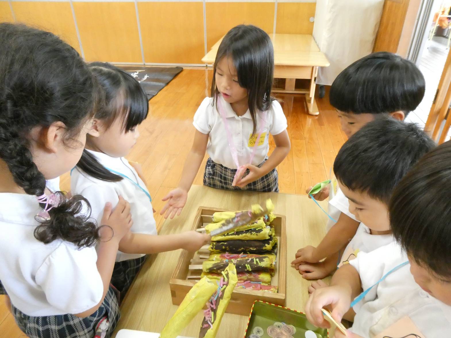 前日から、「いらっしゃいませ~っていうんだよ。」、「先生、明日お店屋さんごっこだよね。」と心待ちにしていました。