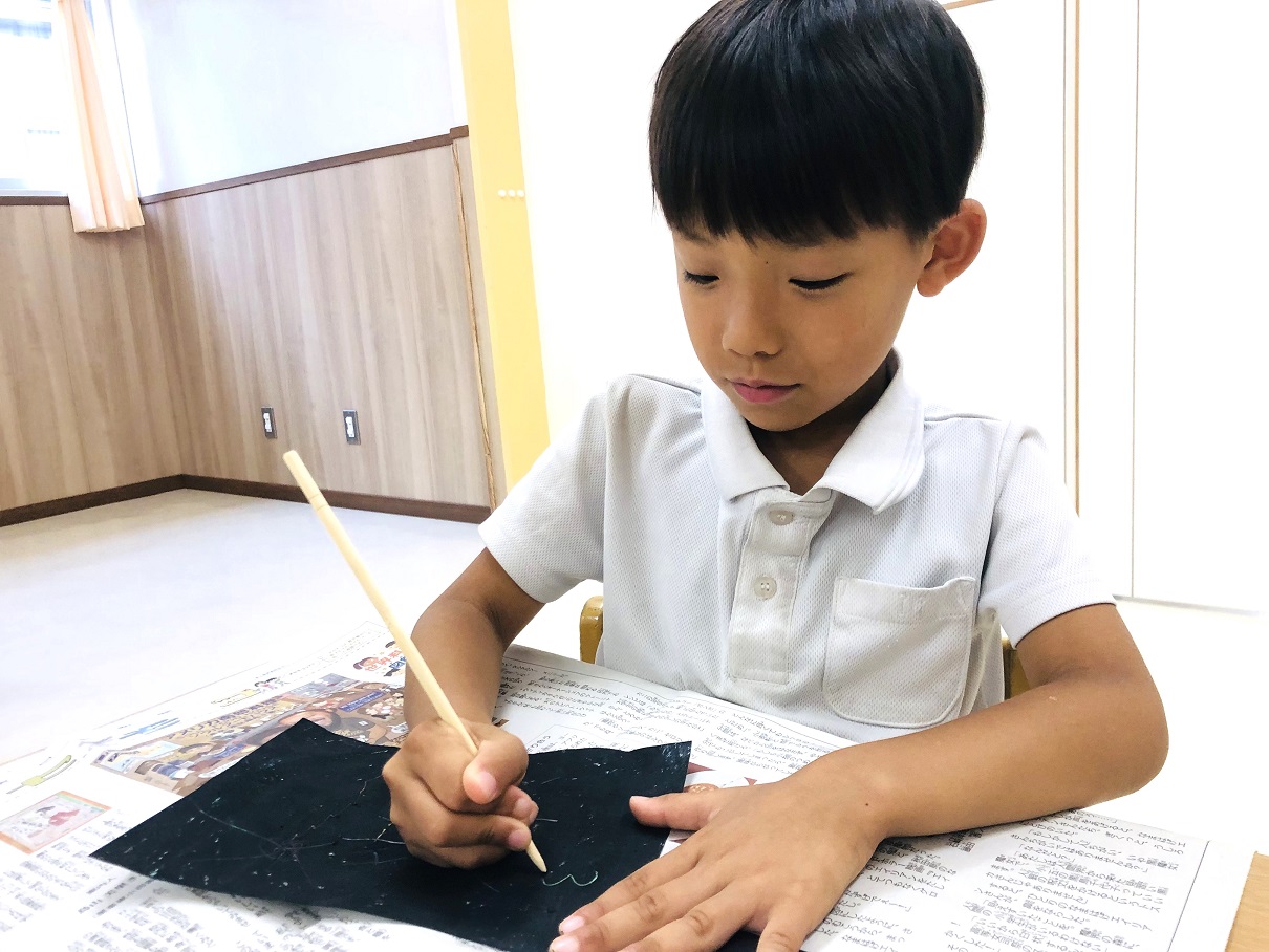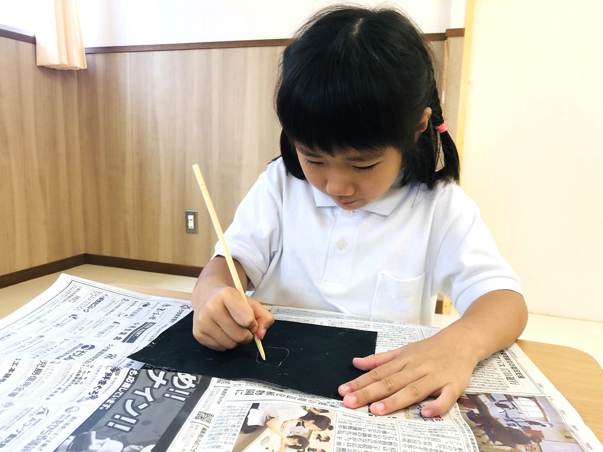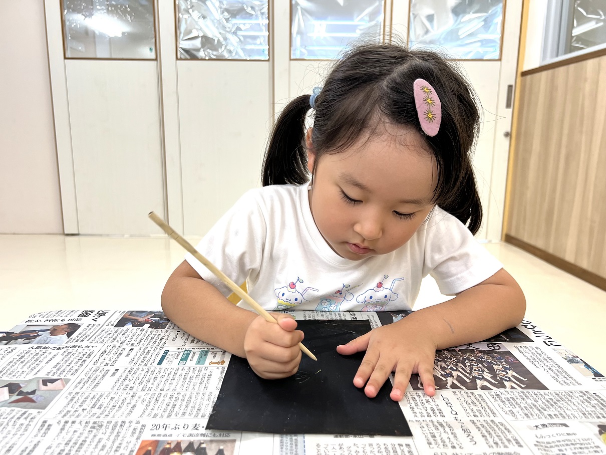 読み聞かせの後は、スクラッチアートに挑戦してみました!
