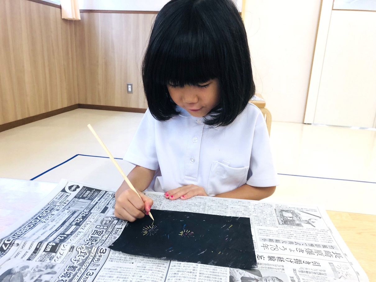 ワクワクドキドキを胸に、花火をイメージして描いていきます。