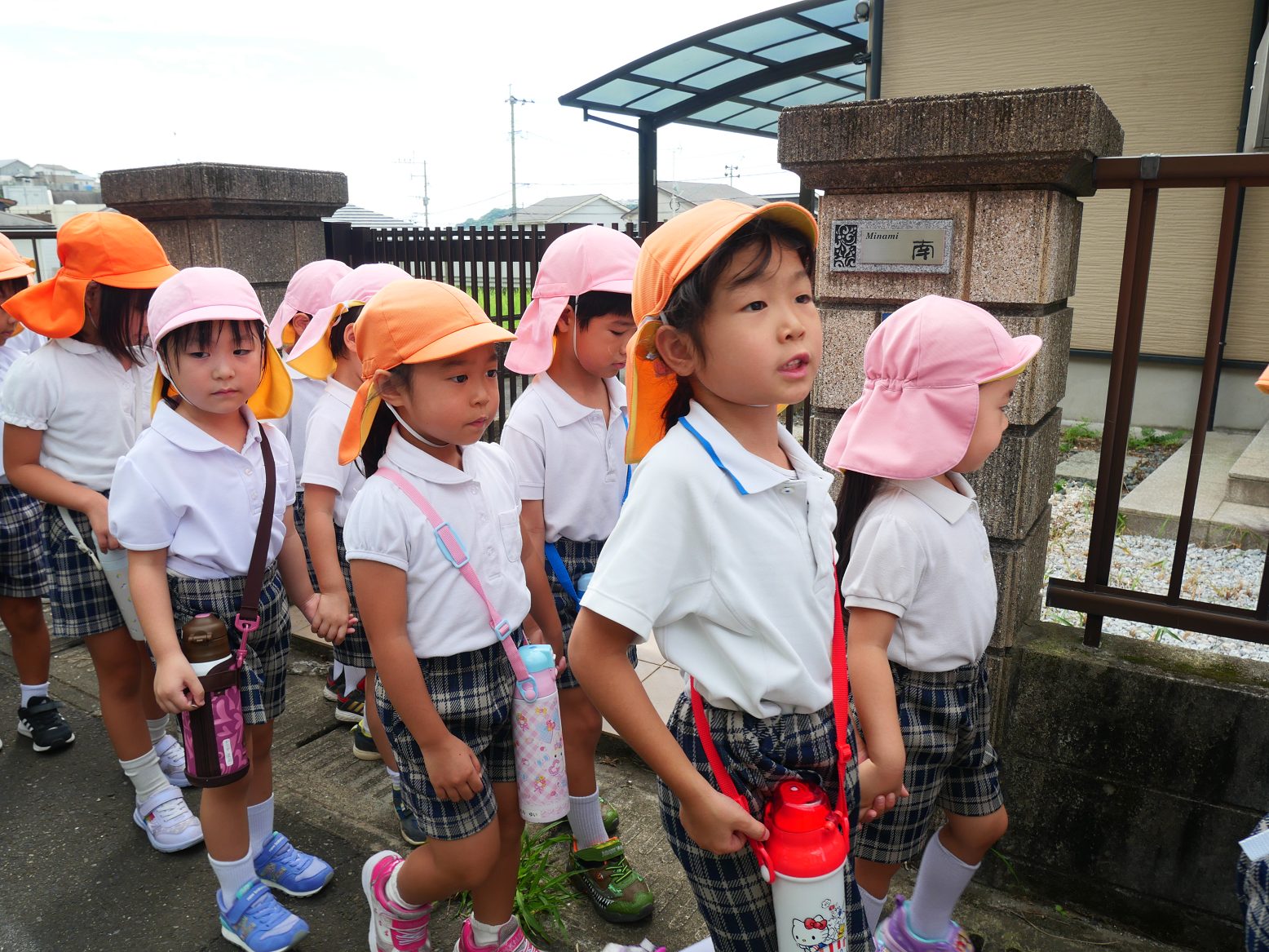 今回のおむすびの日は、うさぎ組さんときりん組さん合同で保育園周辺の散歩を行いました。