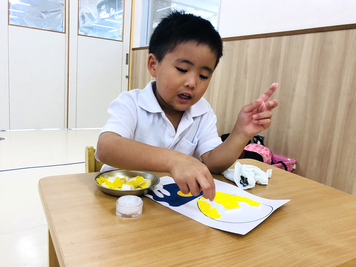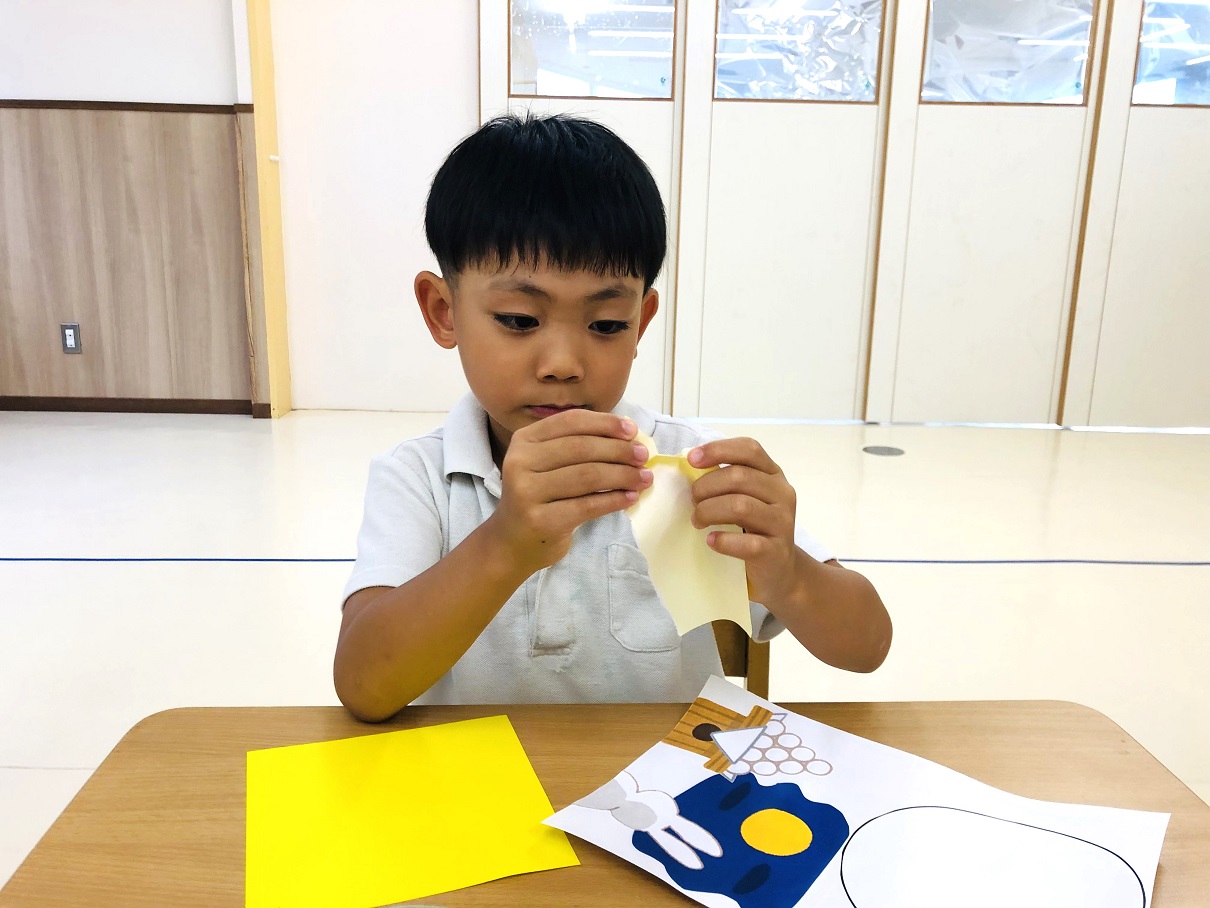 9月に入り、少しずつ涼しい風も吹いてきた中、ぞう①グループさんでは十五夜にちなんだちぎり絵遊びを行いました。