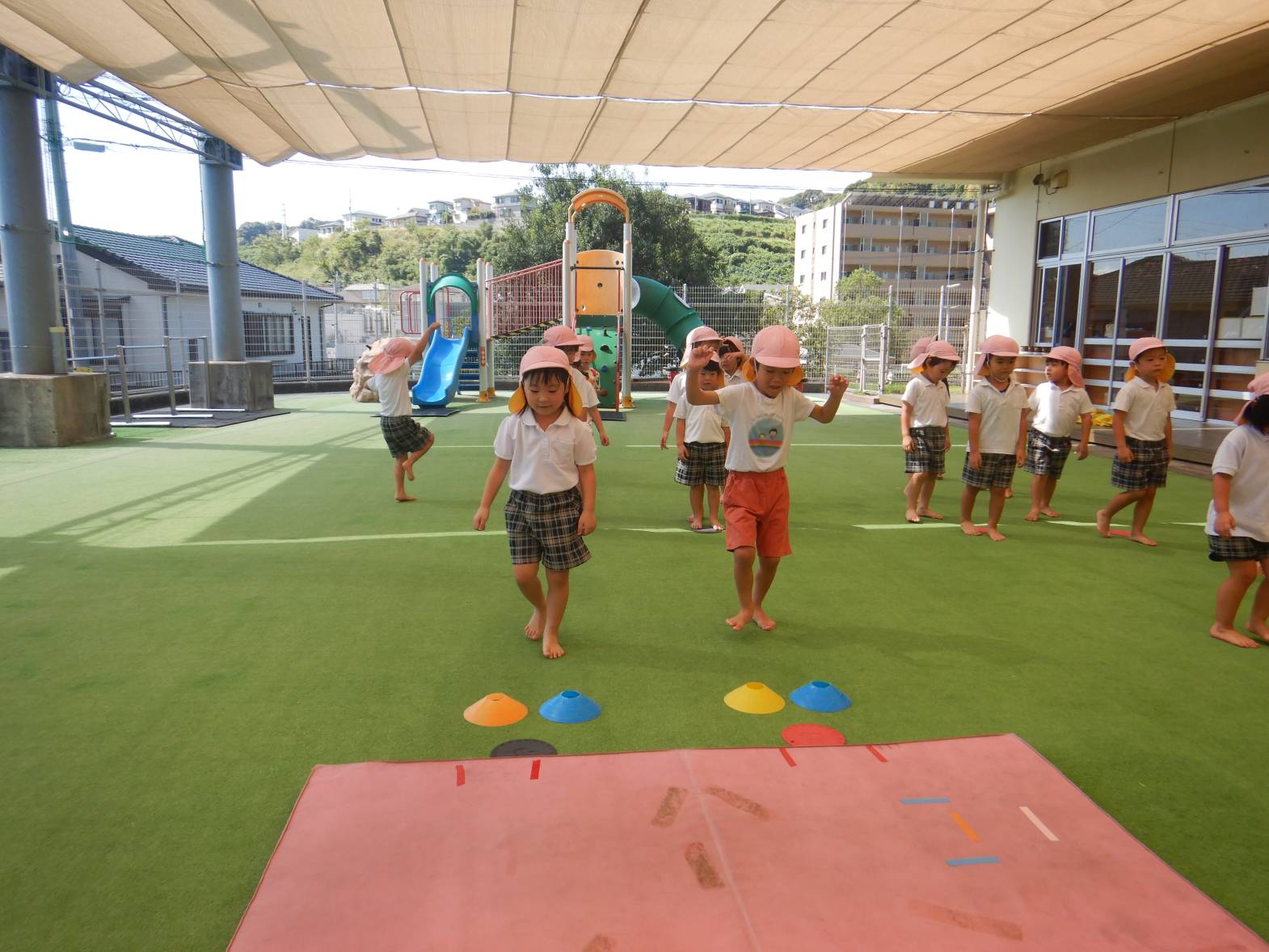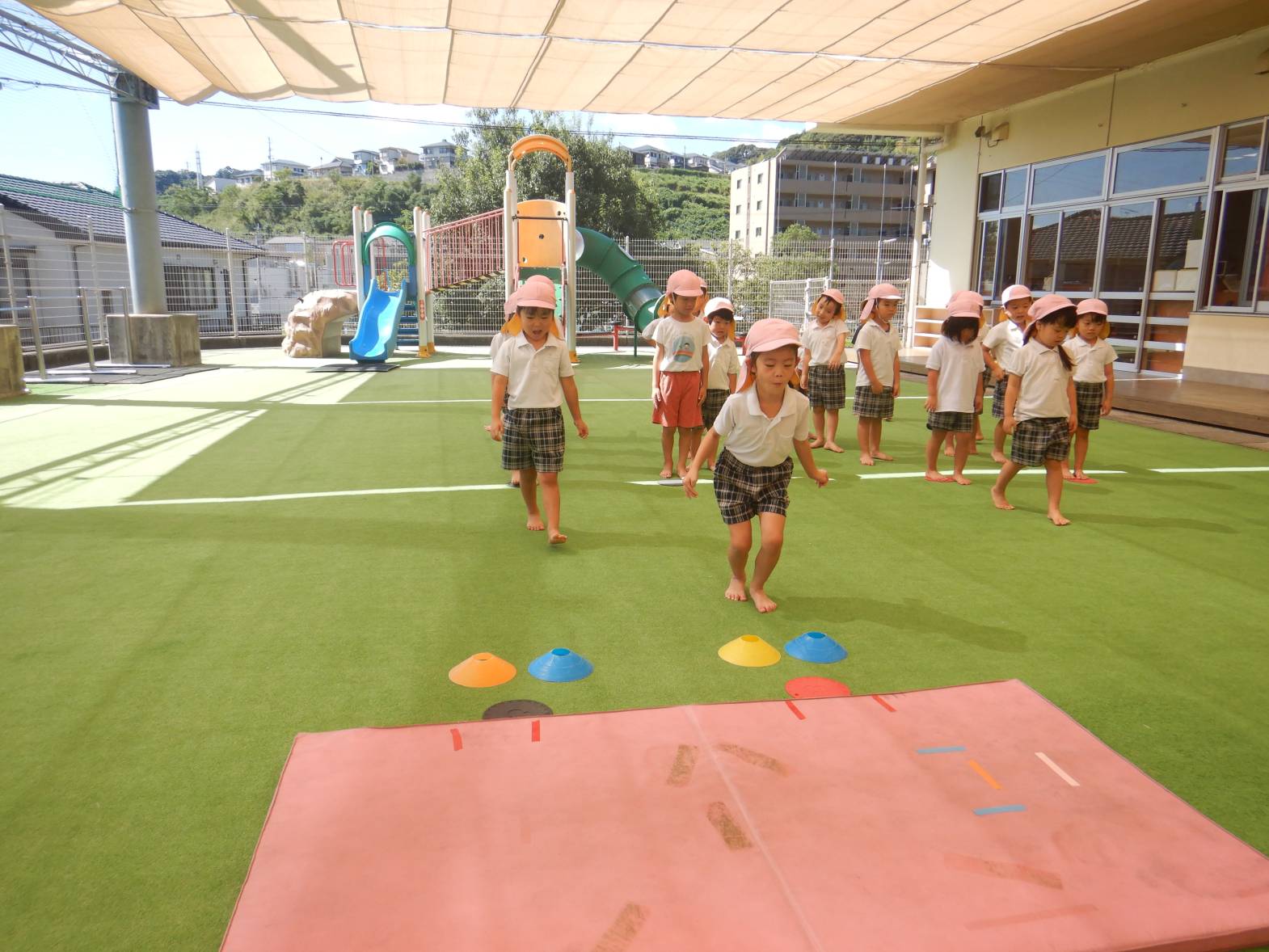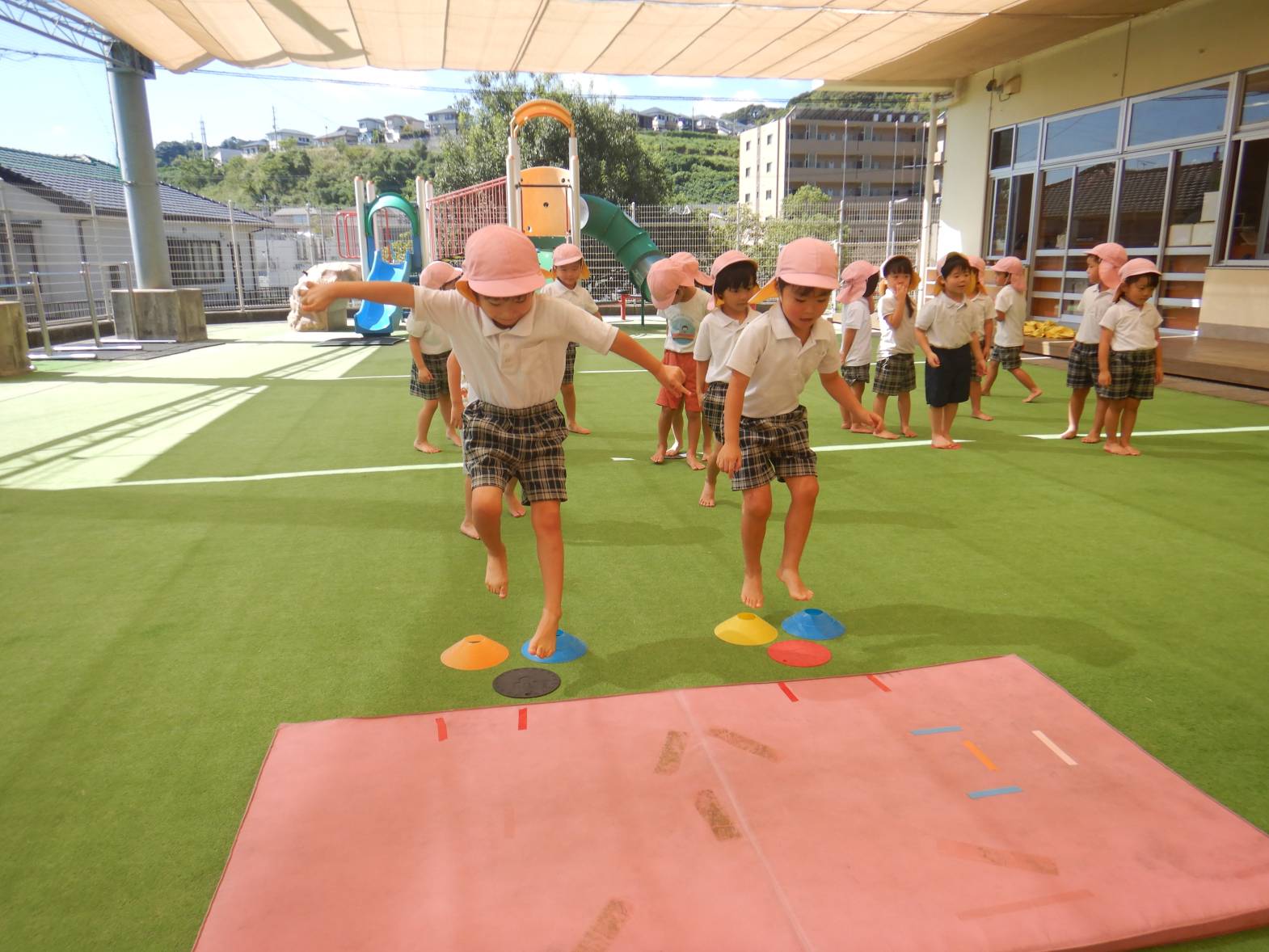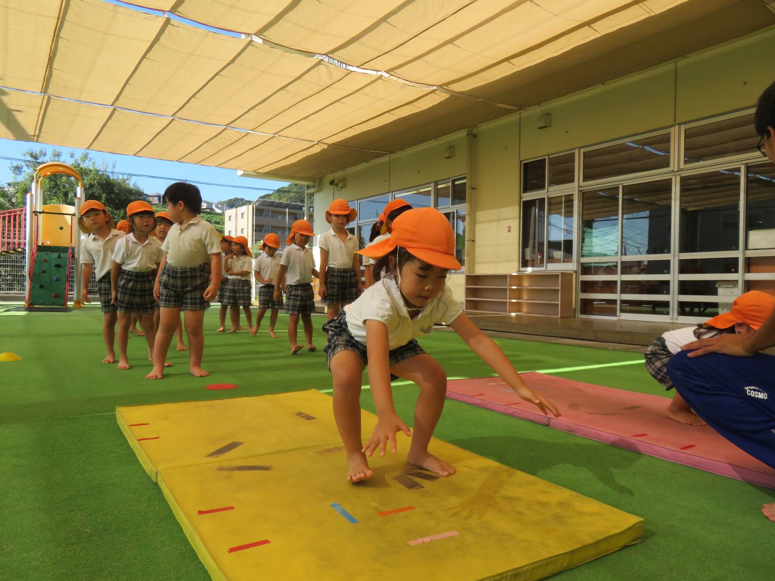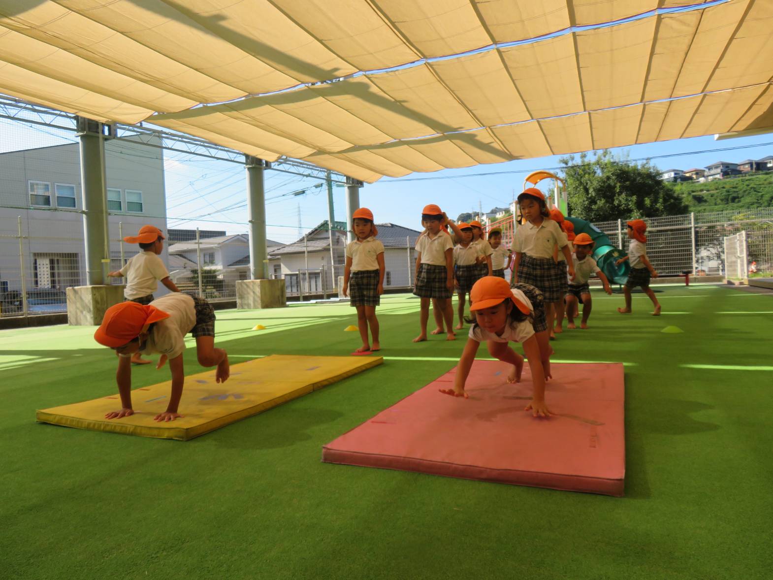 きりん組さんでは、跳び箱に向けての練習がスタートしました。