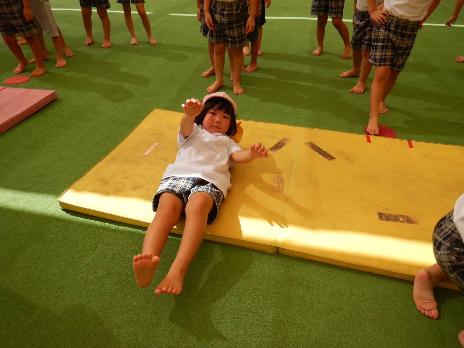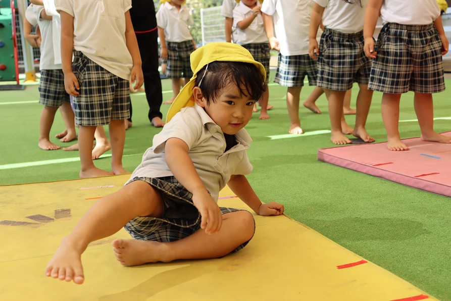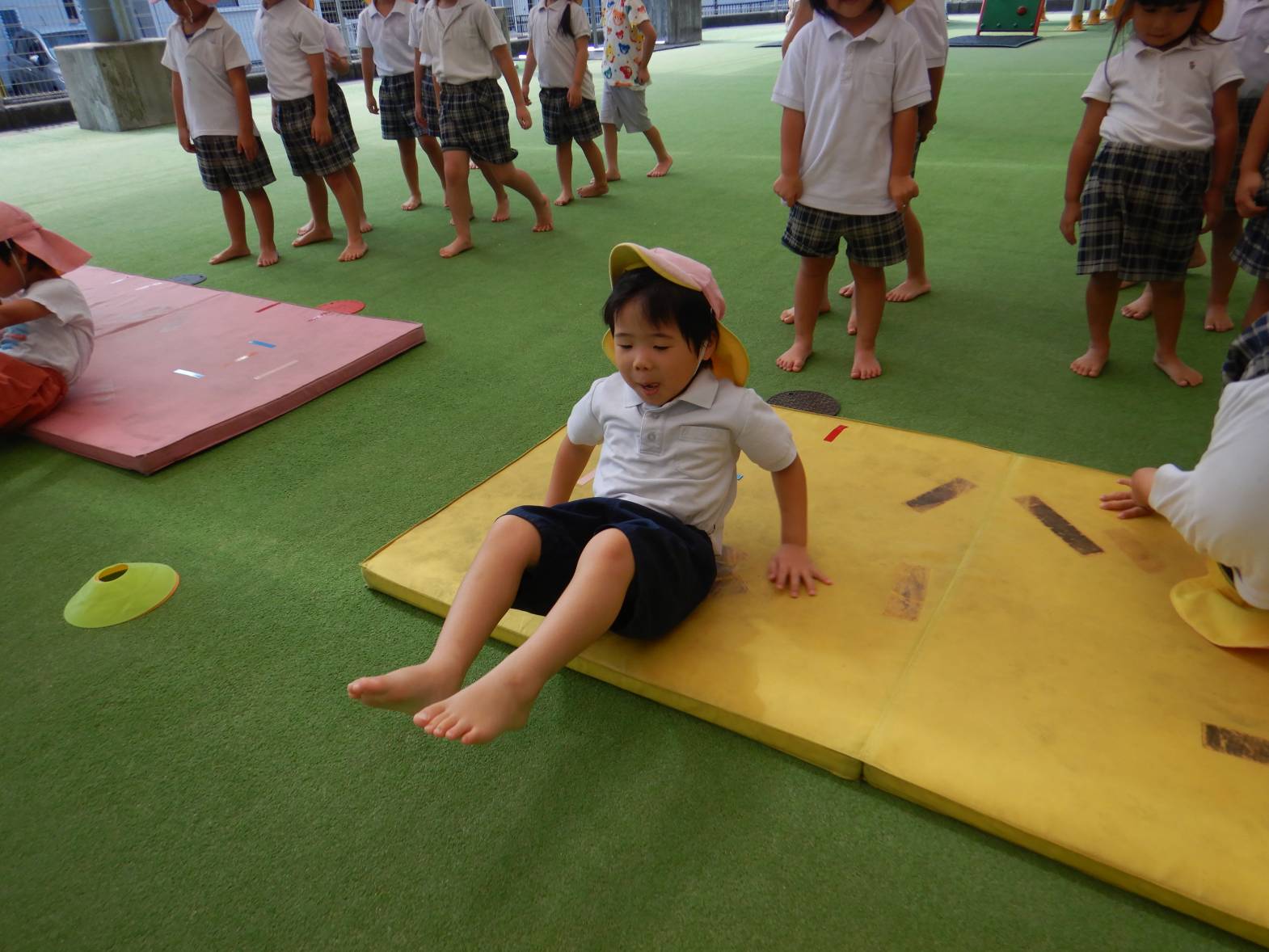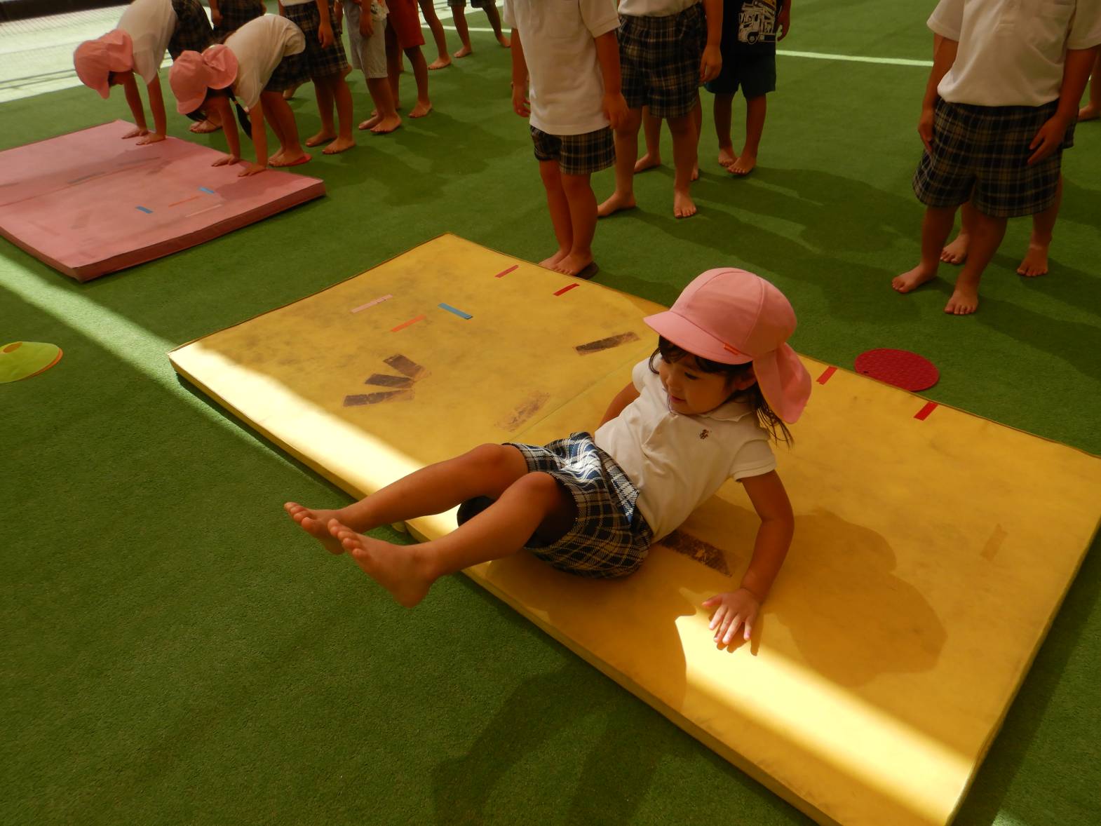 助走前転も怖がることなく挑戦することができ「できたよ!」と満足そうなうさぎ組さんでした。