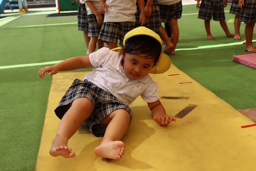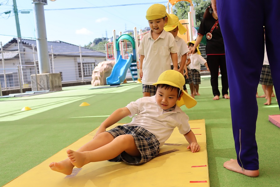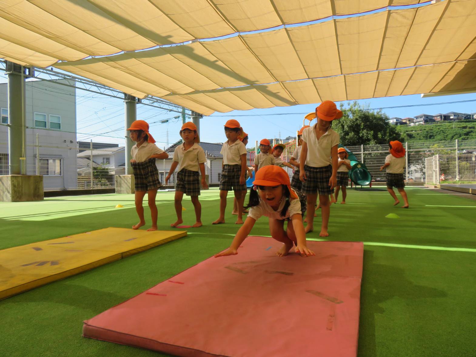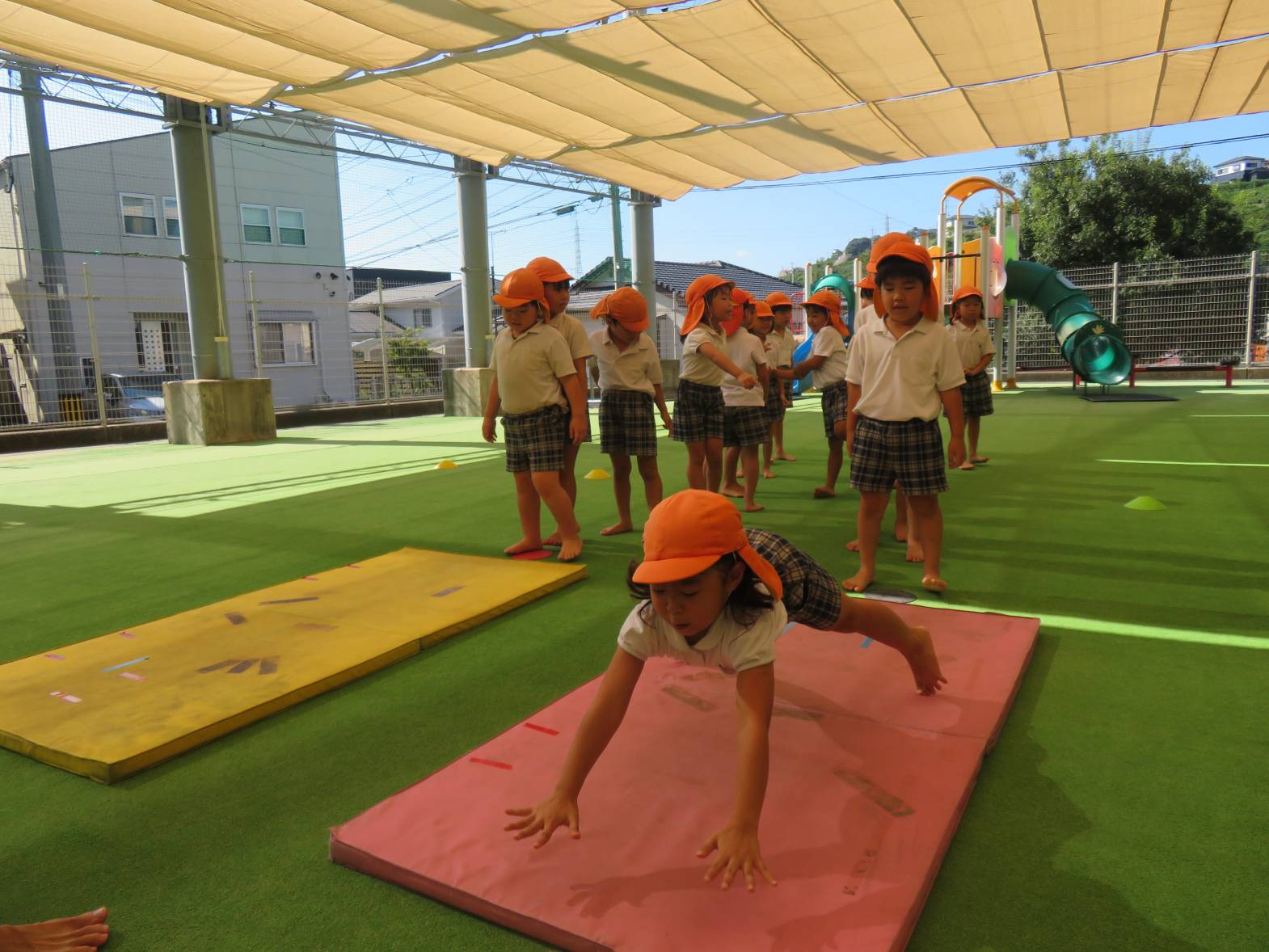 助走前転も怖がることなく挑戦することができ「できたよ!」と満足そうなうさぎ組さんでした。