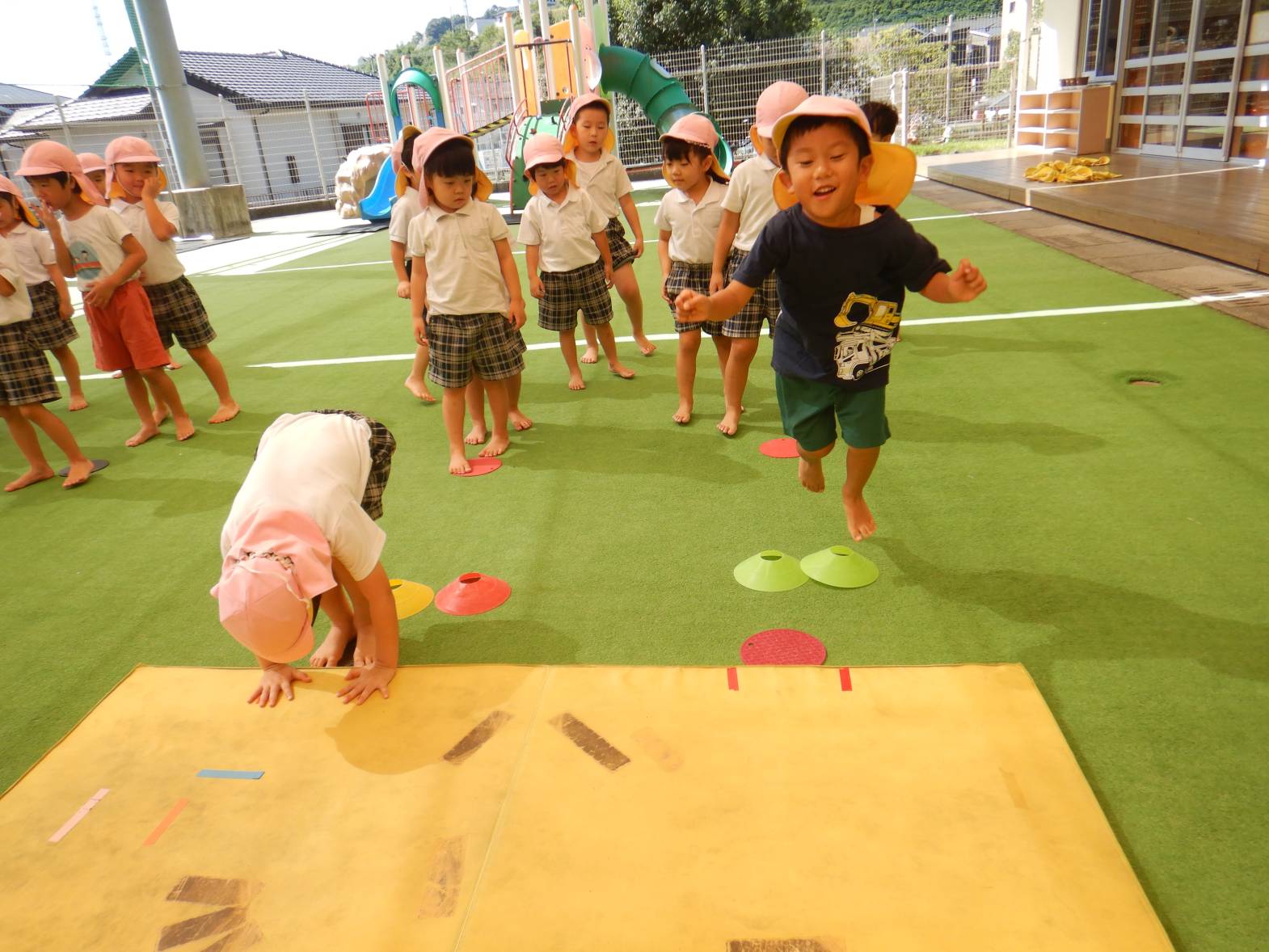 「1番高くジャンプするぞ!」「負けないぞ!」と、勢いよく跳ぶ姿が見られました。
