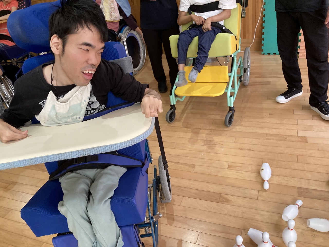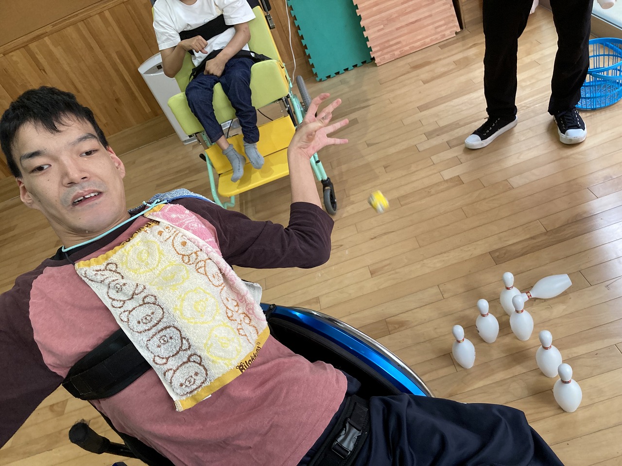 ボウリングではボールを5投し倒れたピンの数を競いました。