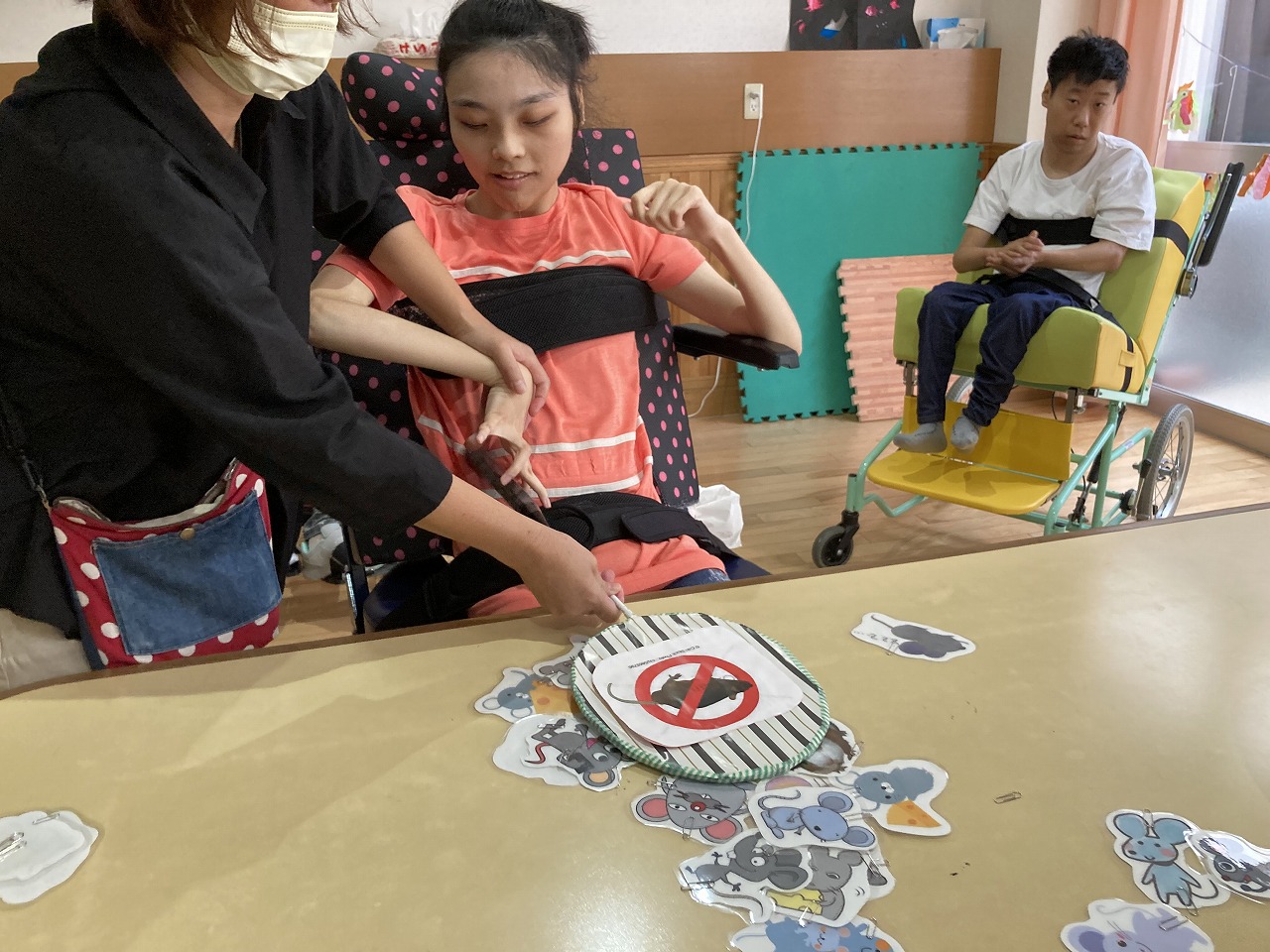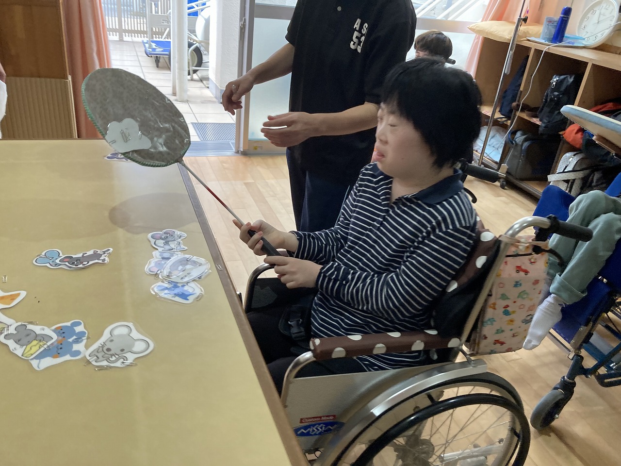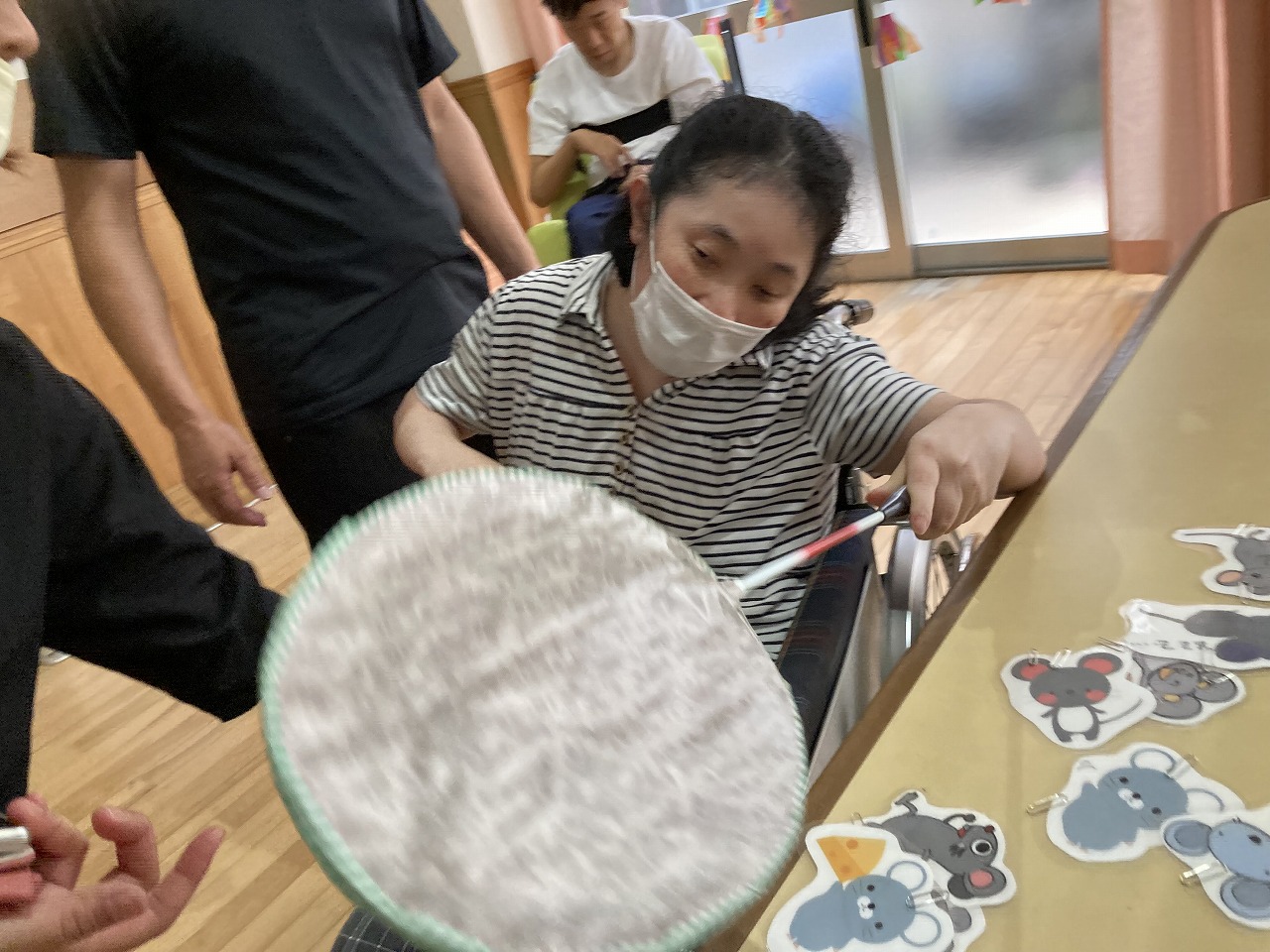ネズミを捕まえる利用者さんと捕ったネズミ確保する職員と息を合わせられるかが試される競技でした。