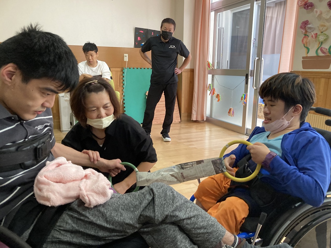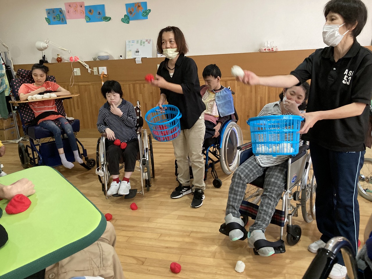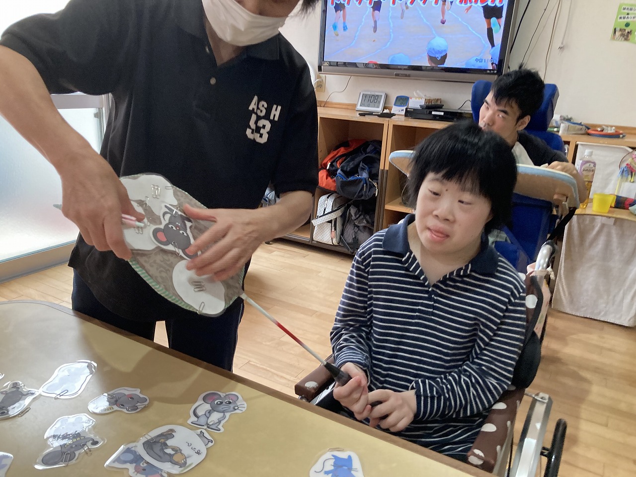 ネズミを捕まえる利用者さんと捕ったネズミ確保する職員と息を合わせられるかが試される競技でした。