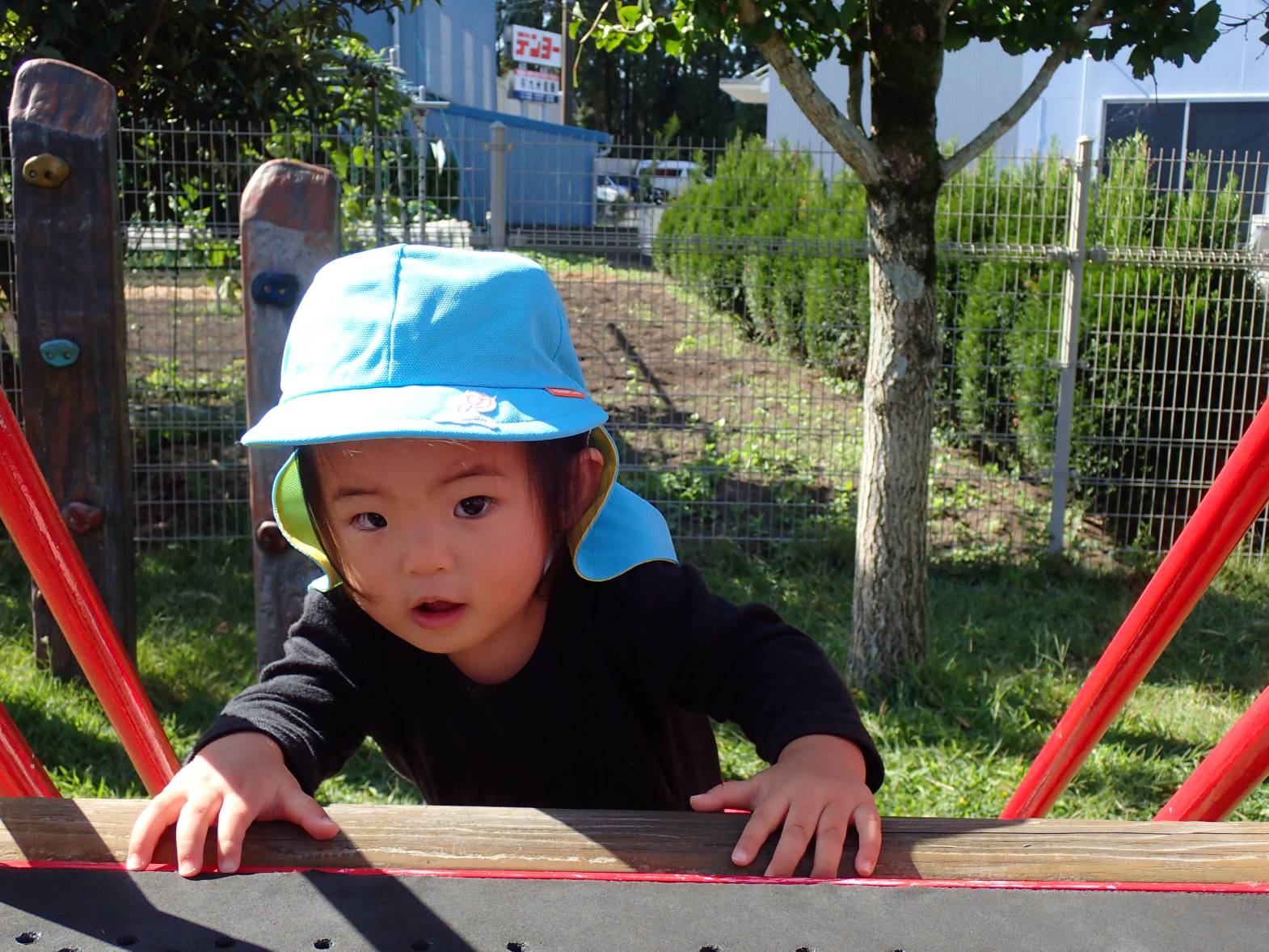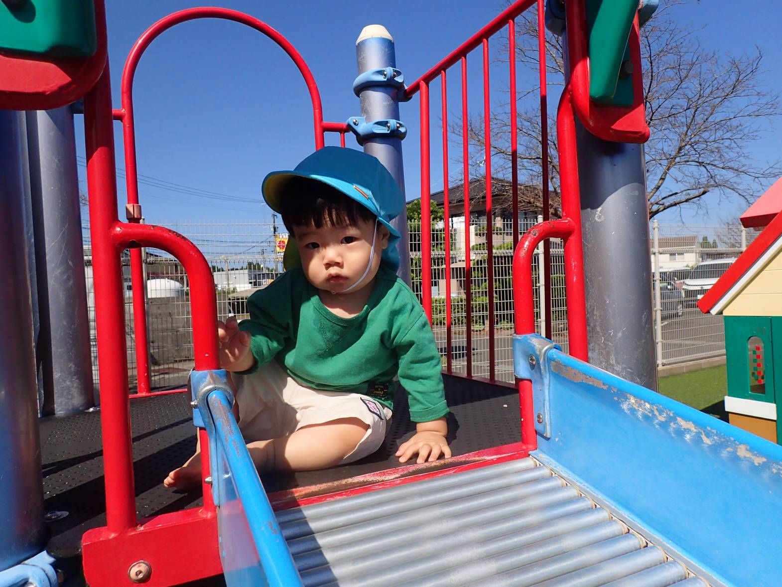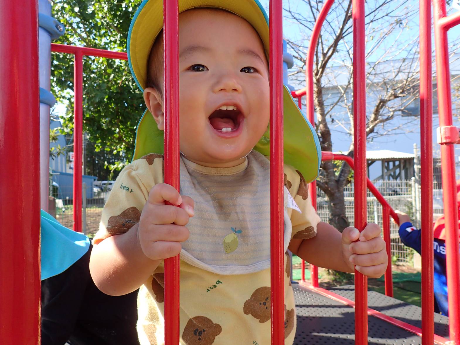 戸外では、滑り台遊びが大好きな子どもたち。 階段だけでなく丸太の坂の方から登ろうとする姿が増えました。 手足を上手に使って登る姿が見られます! 滑る時には、足を出し座って滑る姿勢になることを伝える中で、少しずつ覚えてきている子どもたち。 風を浴びて、気持ちよさそうなひよこ組さんでした!
