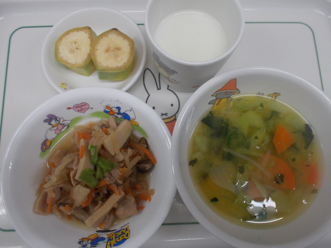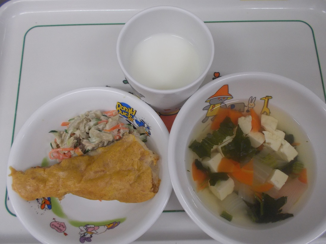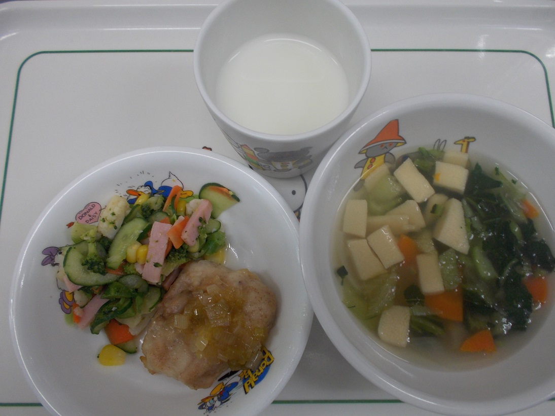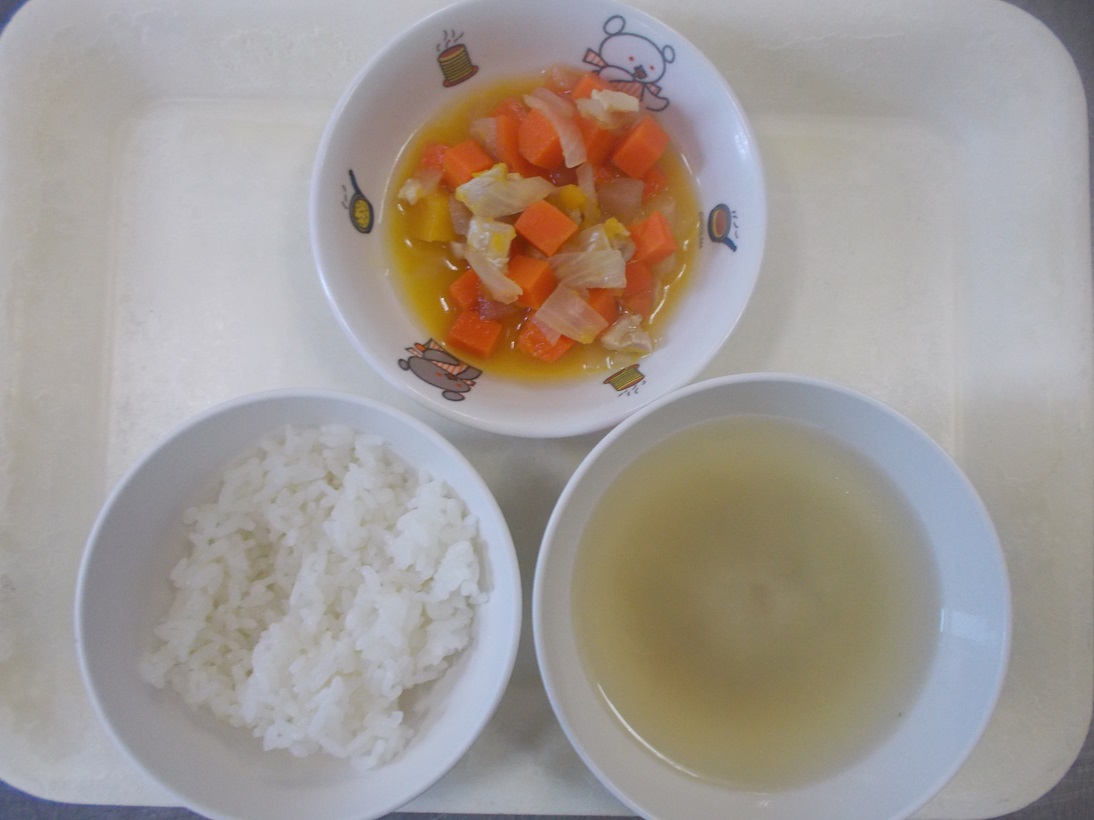 11月6日(月)から11月11日(土)までの給食献立写真・離乳食提供量と写真の一例です。