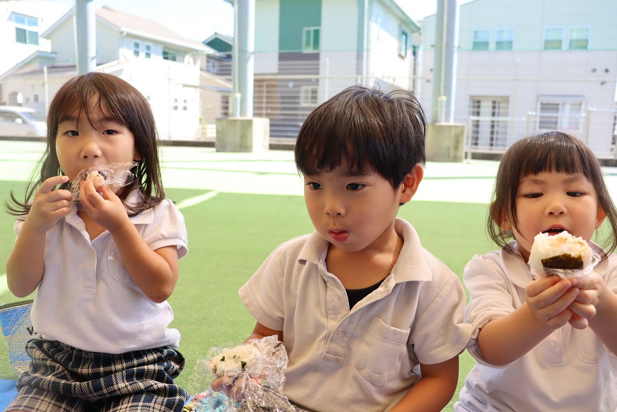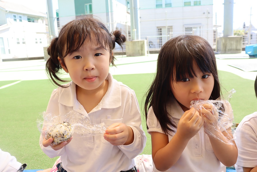 おむすびの時間では、「おにぎり、美味しいね。」「僕のおにぎり、大きいよ!」と嬉しそうにおにぎりを食べる姿が見られました。