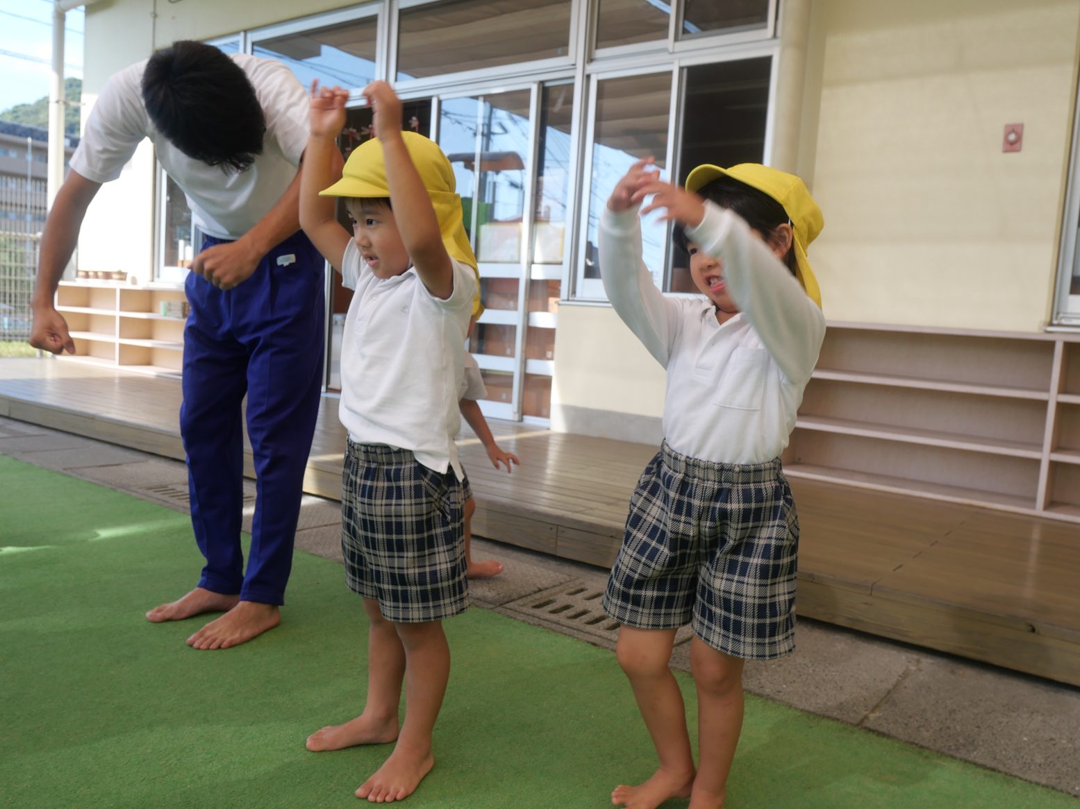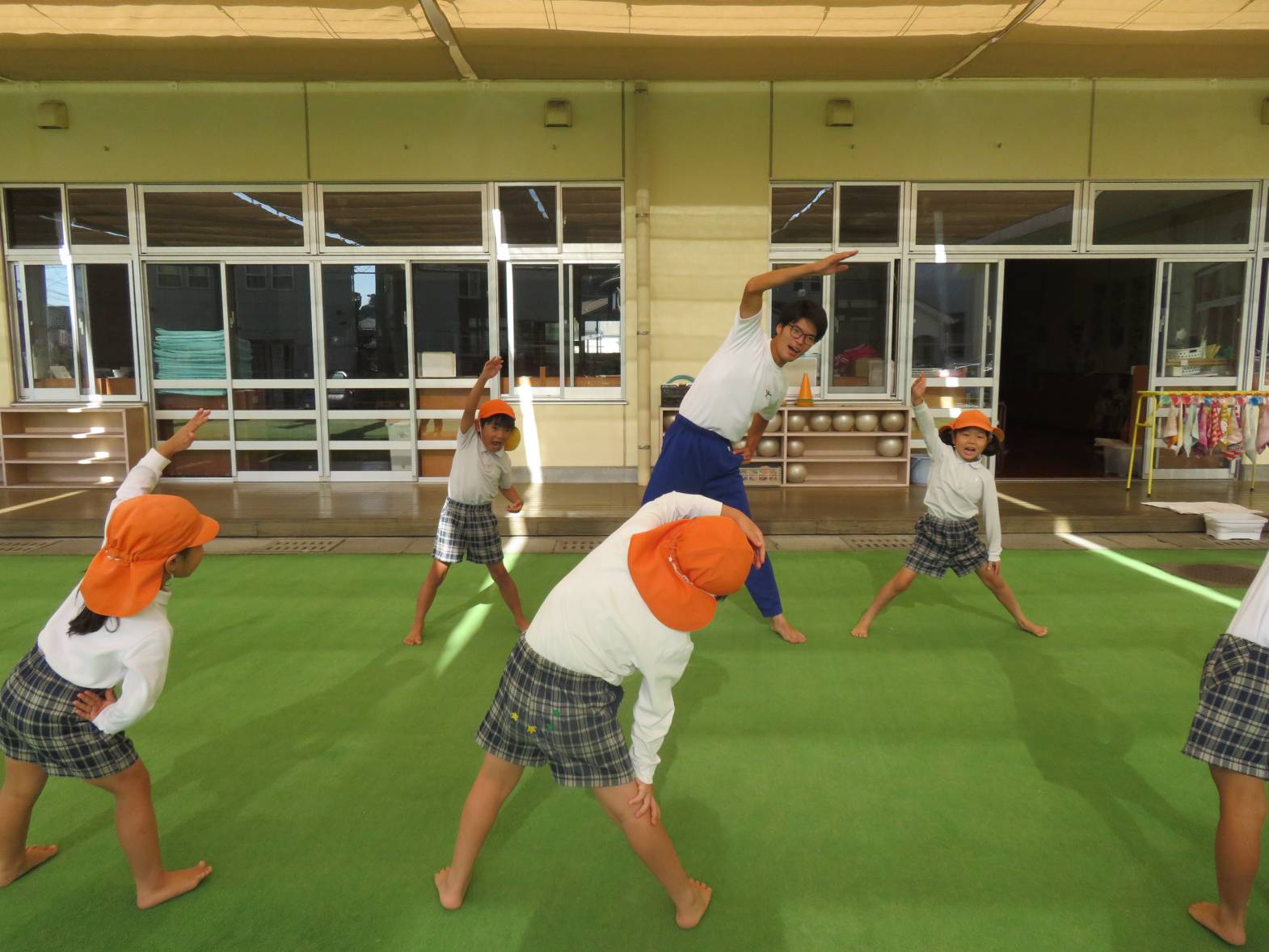 屈伸や伸脚など、とても上手にできるようになった子どもたち。