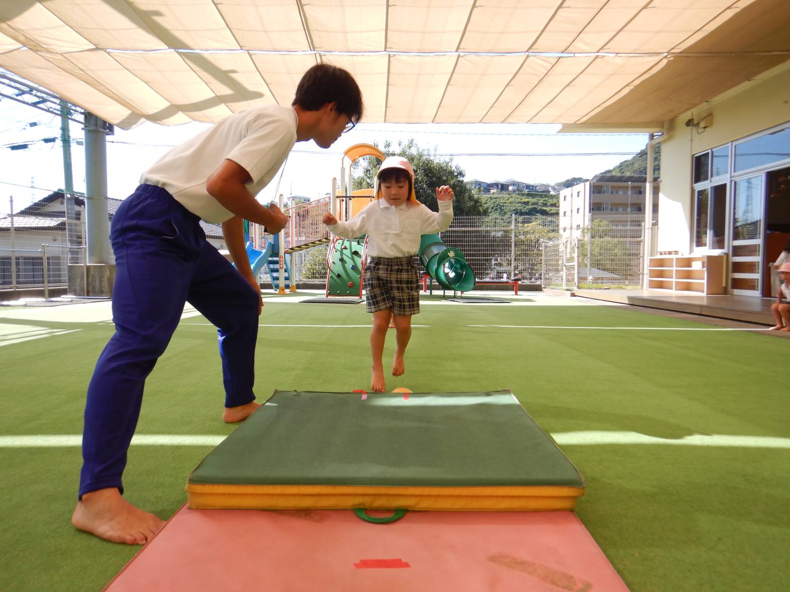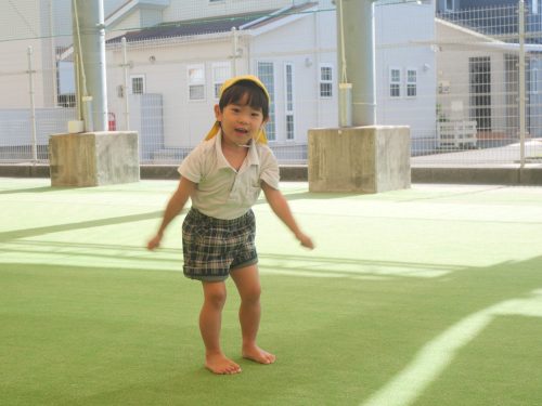 繰り返し行う中で、コツを掴み上手に跳び越えられると「できた!」ととてもいい笑顔が見られました。