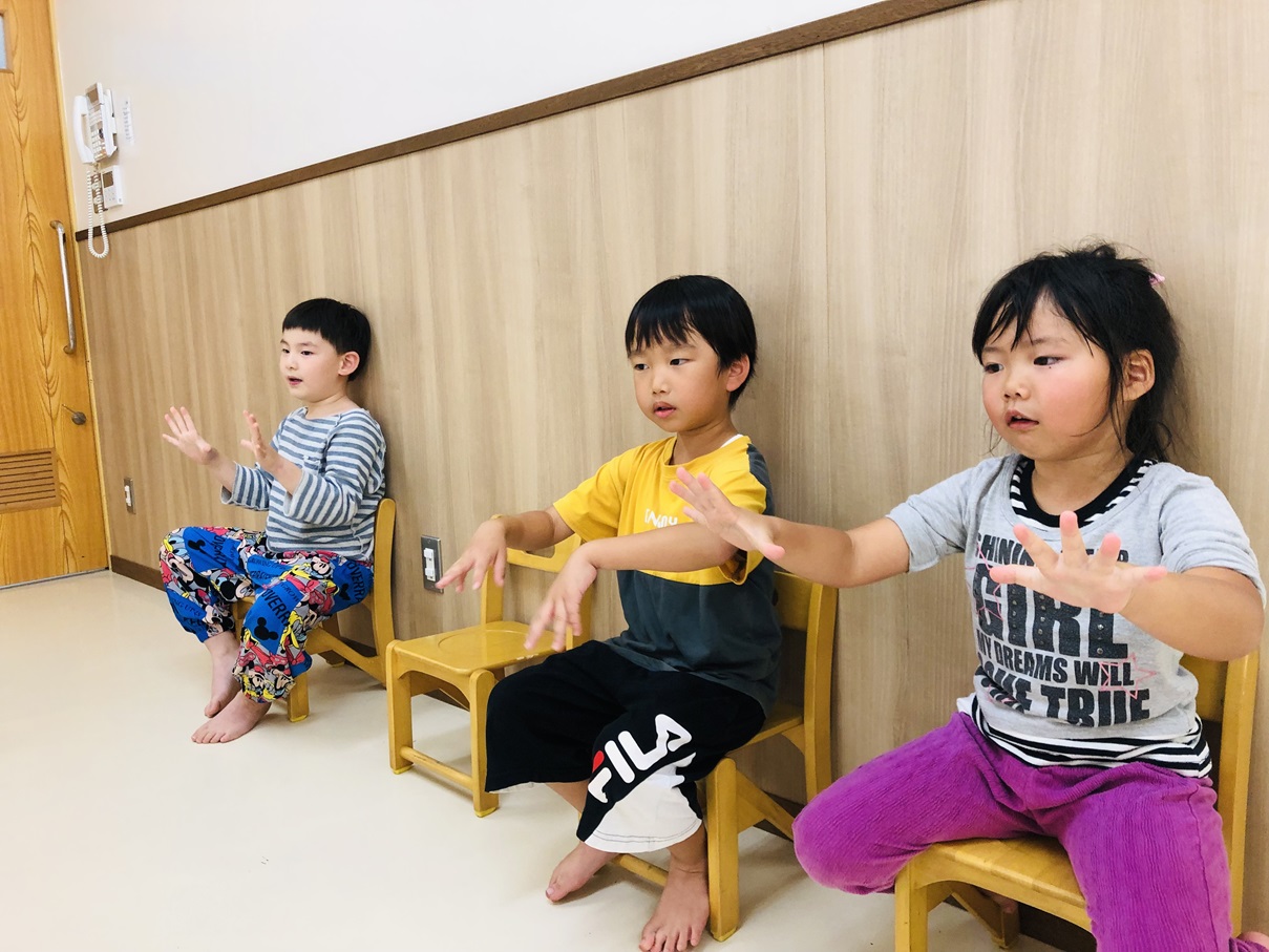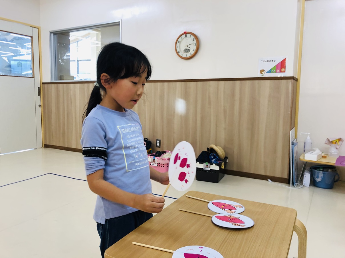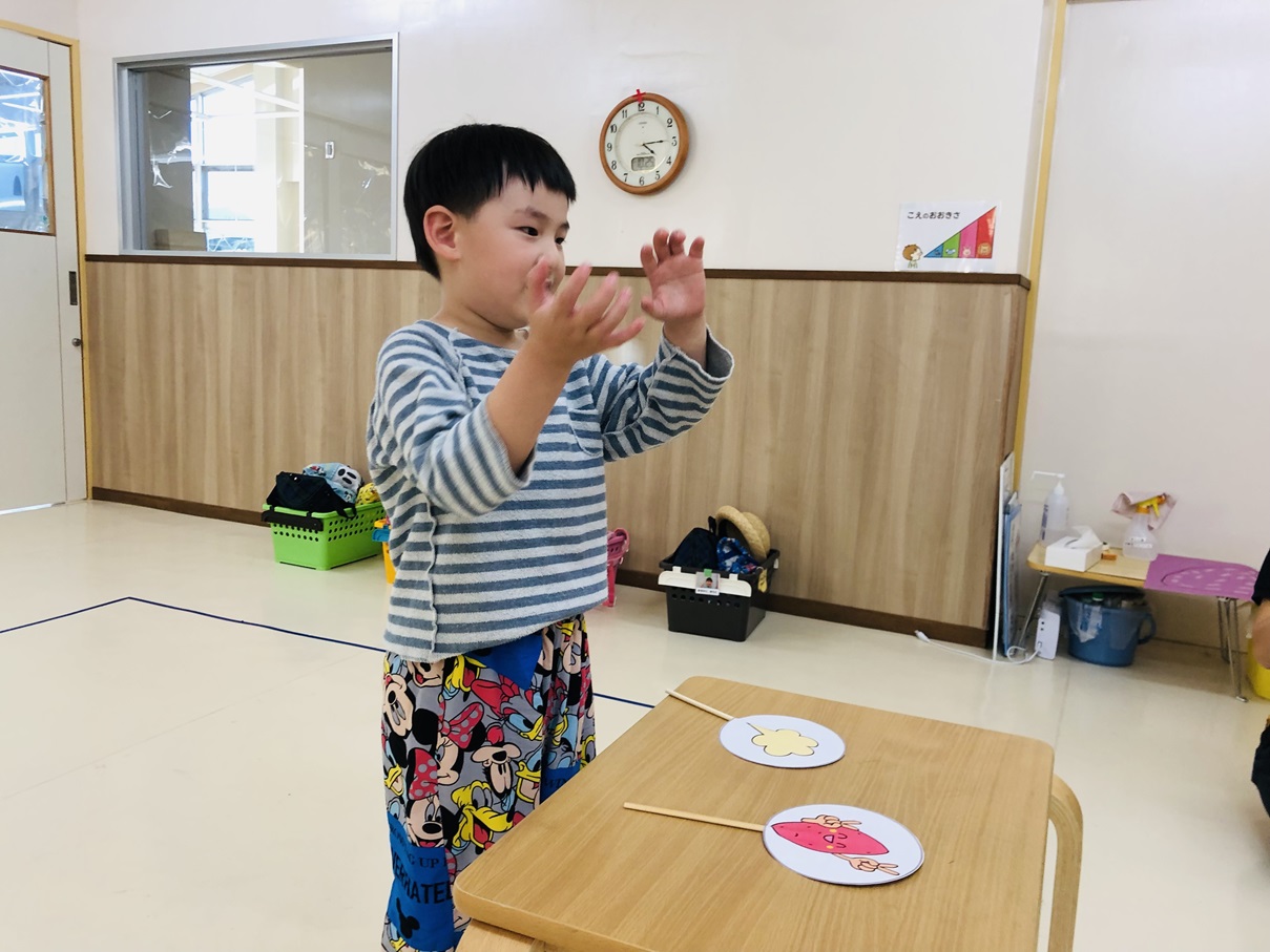 「焼き芋焼き芋お腹がグ~♪」と楽しくお歌を歌いながら、笑顔いっぱいジャンケンをします。