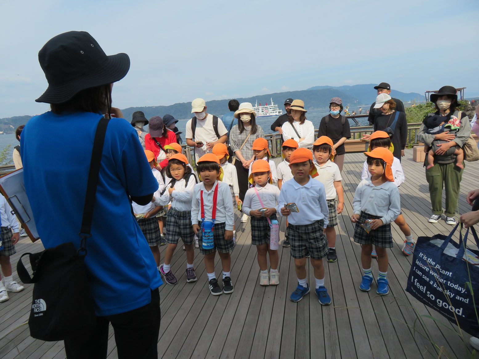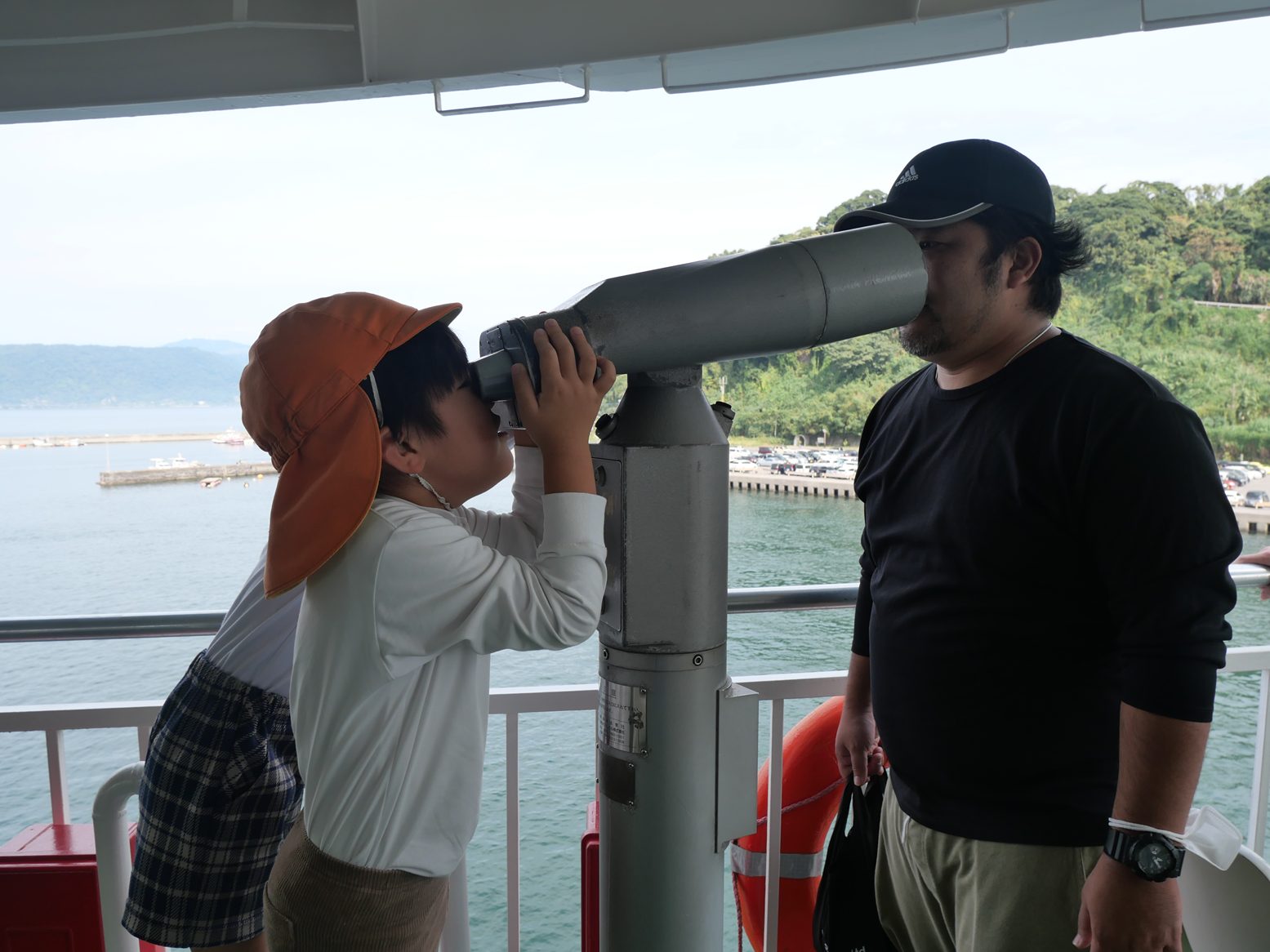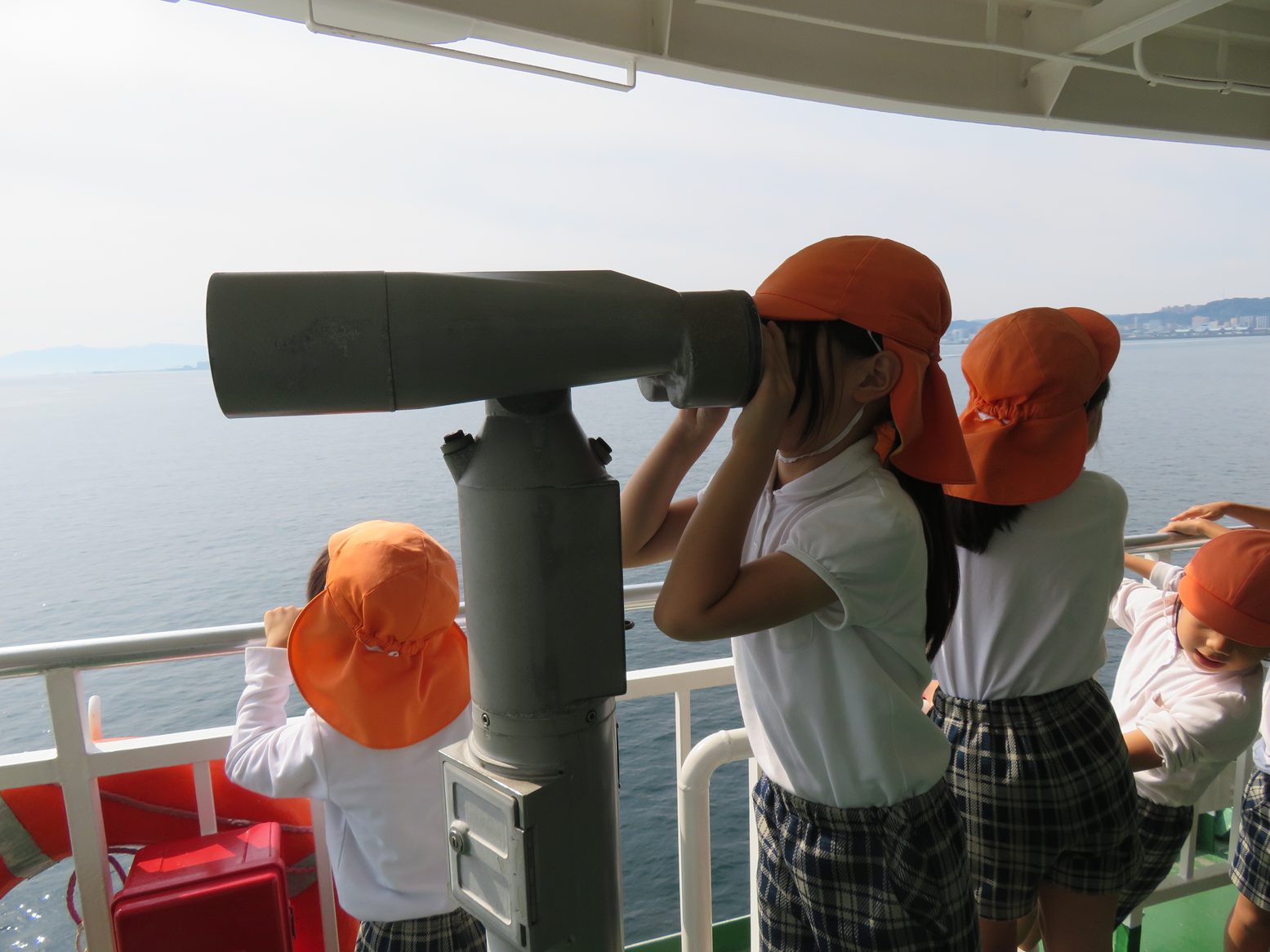 「風が強いね!」「イルカは見えるかな?」と友だちやおうちの方とたくさん話しながら桜島に向かいます。