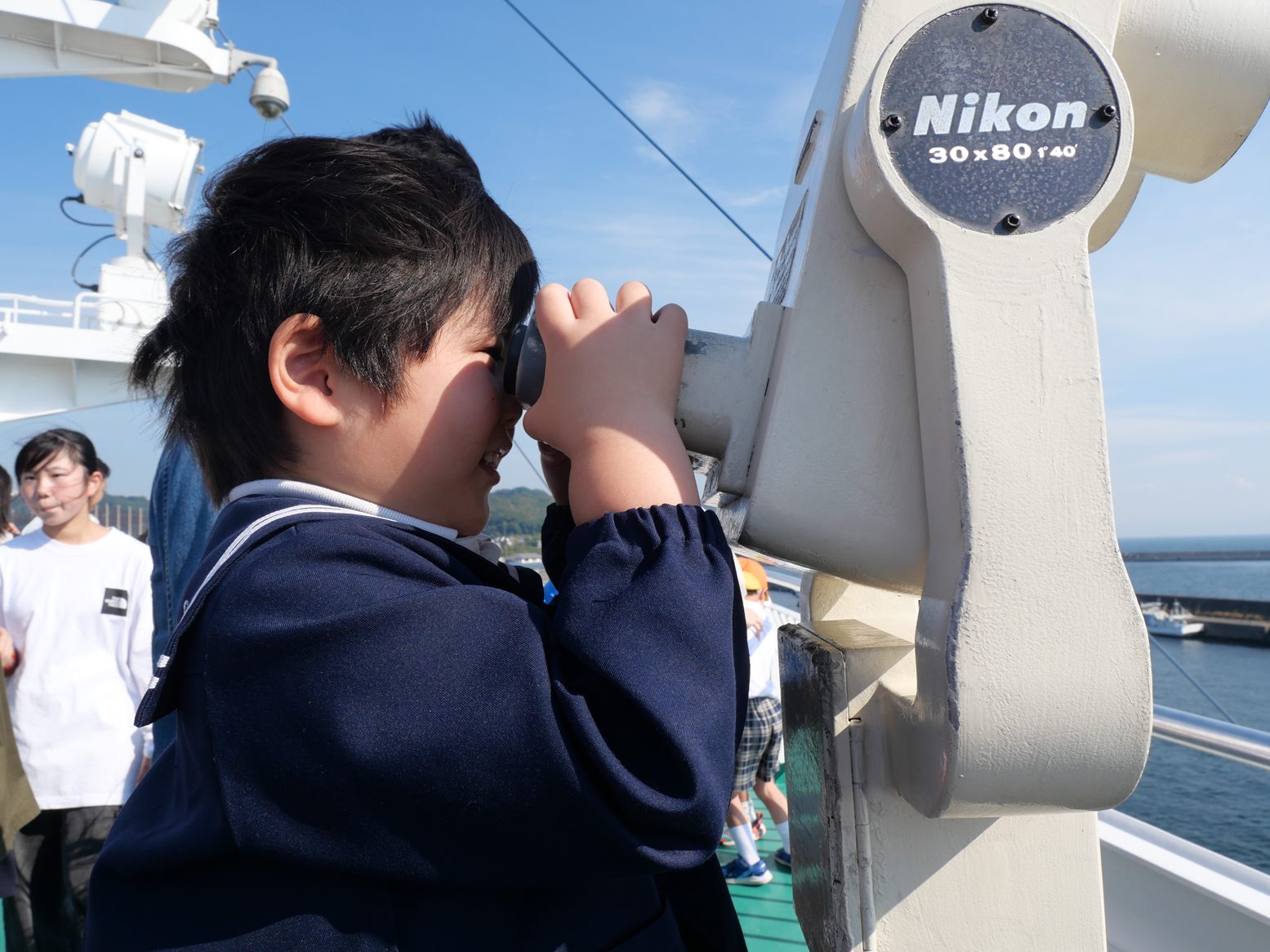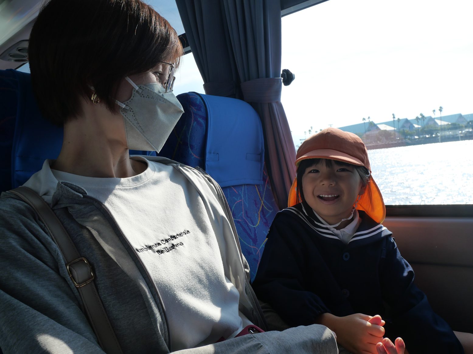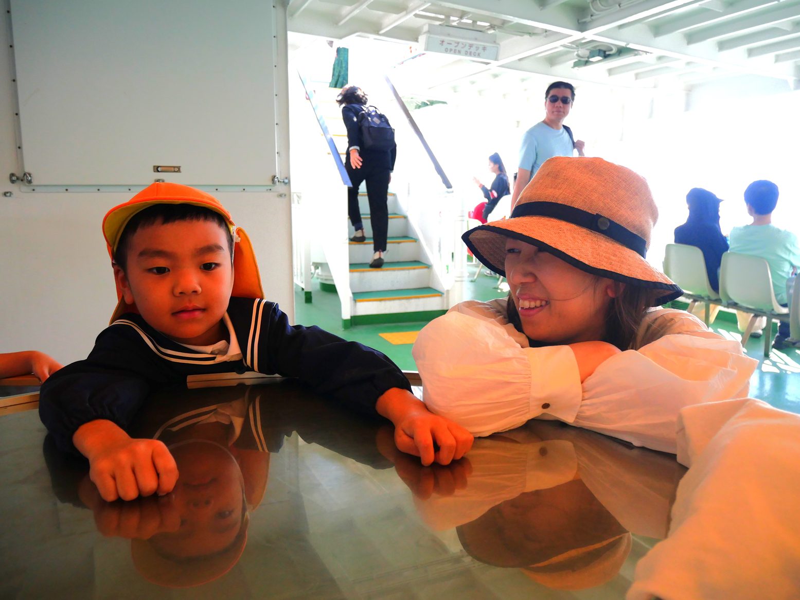 「風が強いね!」「イルカは見えるかな?」と友だちやおうちの方とたくさん話しながら桜島に向かいます。