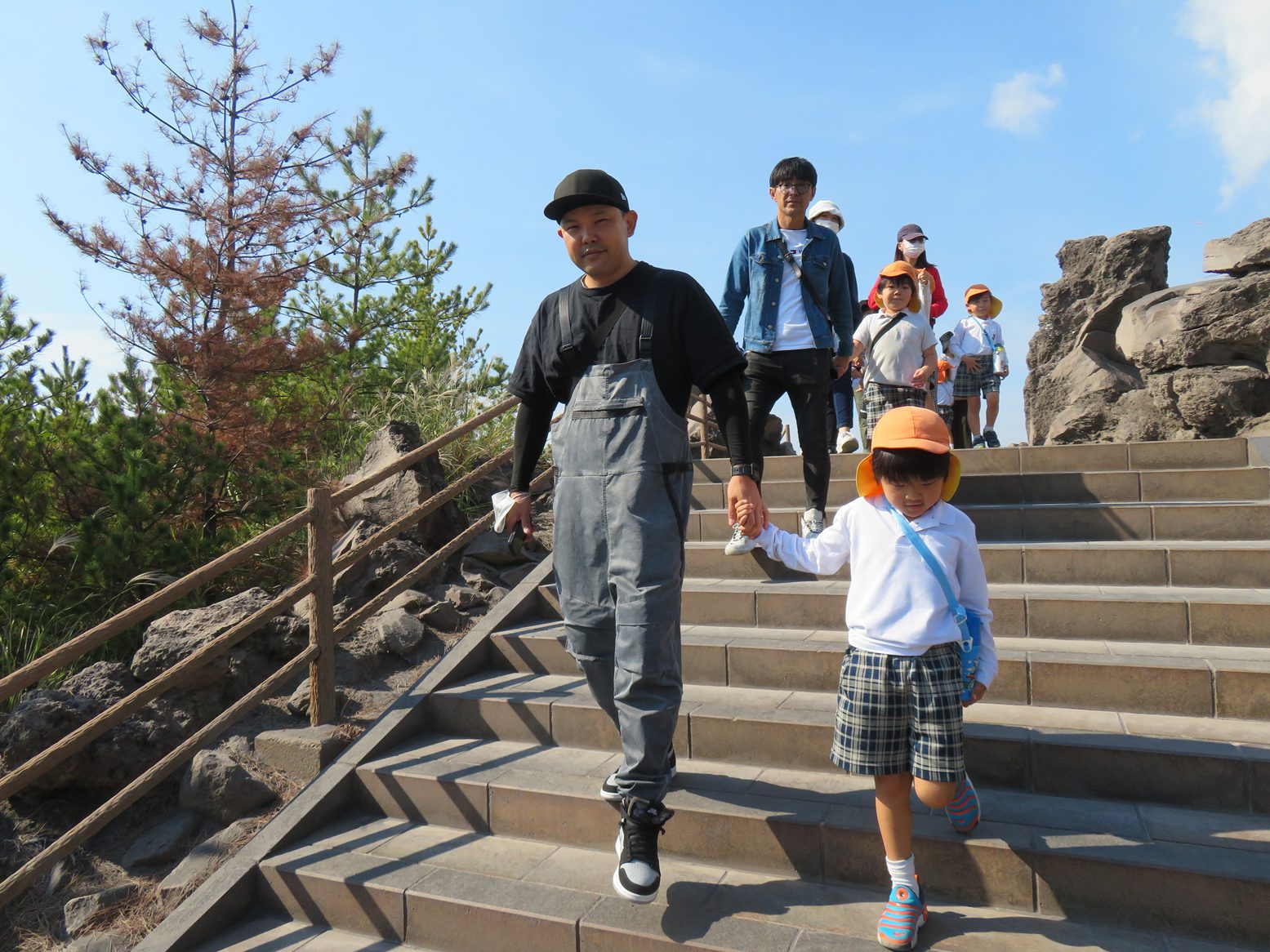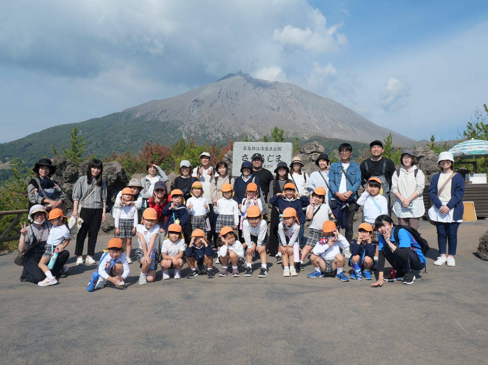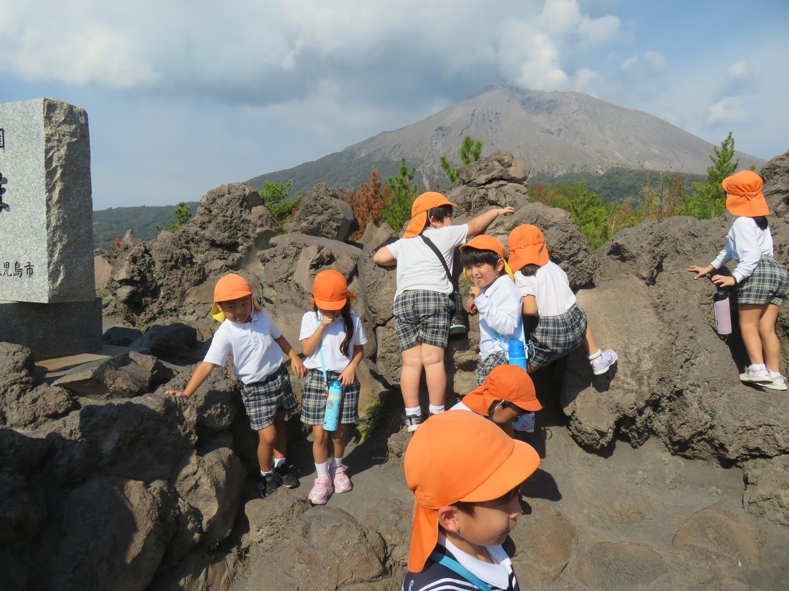 ごつごつした大きな溶岩に触ってみたり桜島と記念撮影をしたり、楽しい時間を過ごしました。