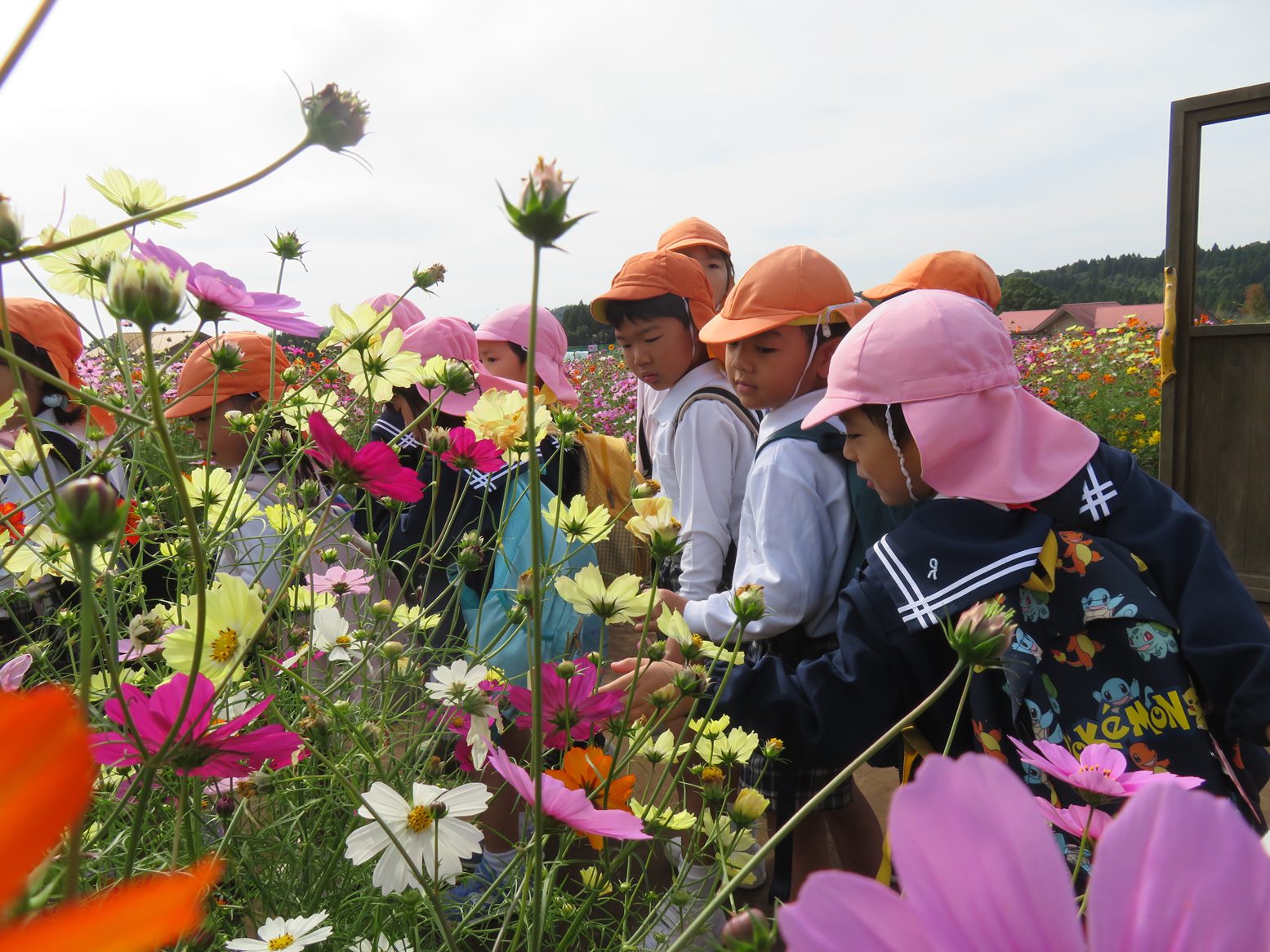 優しくコスモスに触ってみたり、においをかいだりと思い思いに楽しみました。