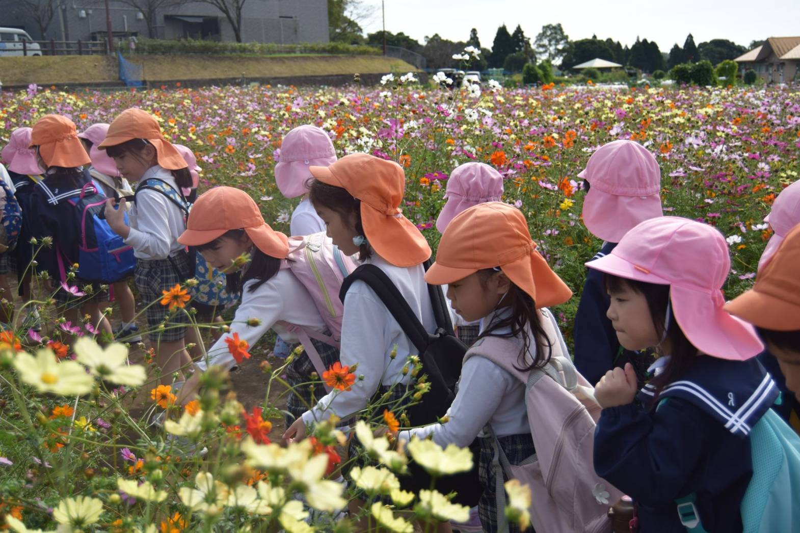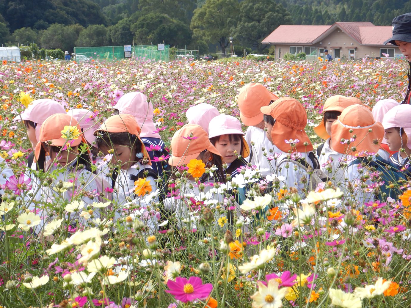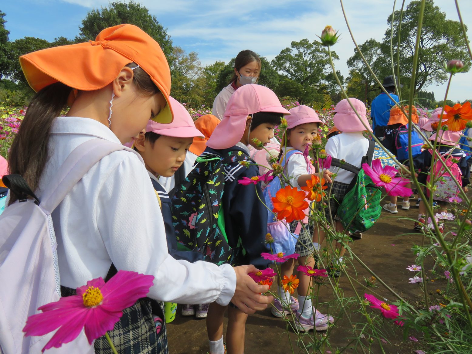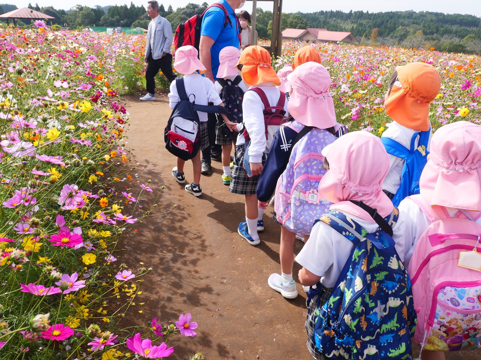 今日のおむすびの日では、うさぎ組さんときりん組さん合同で都市農業センターにコスモスを見に行きました。