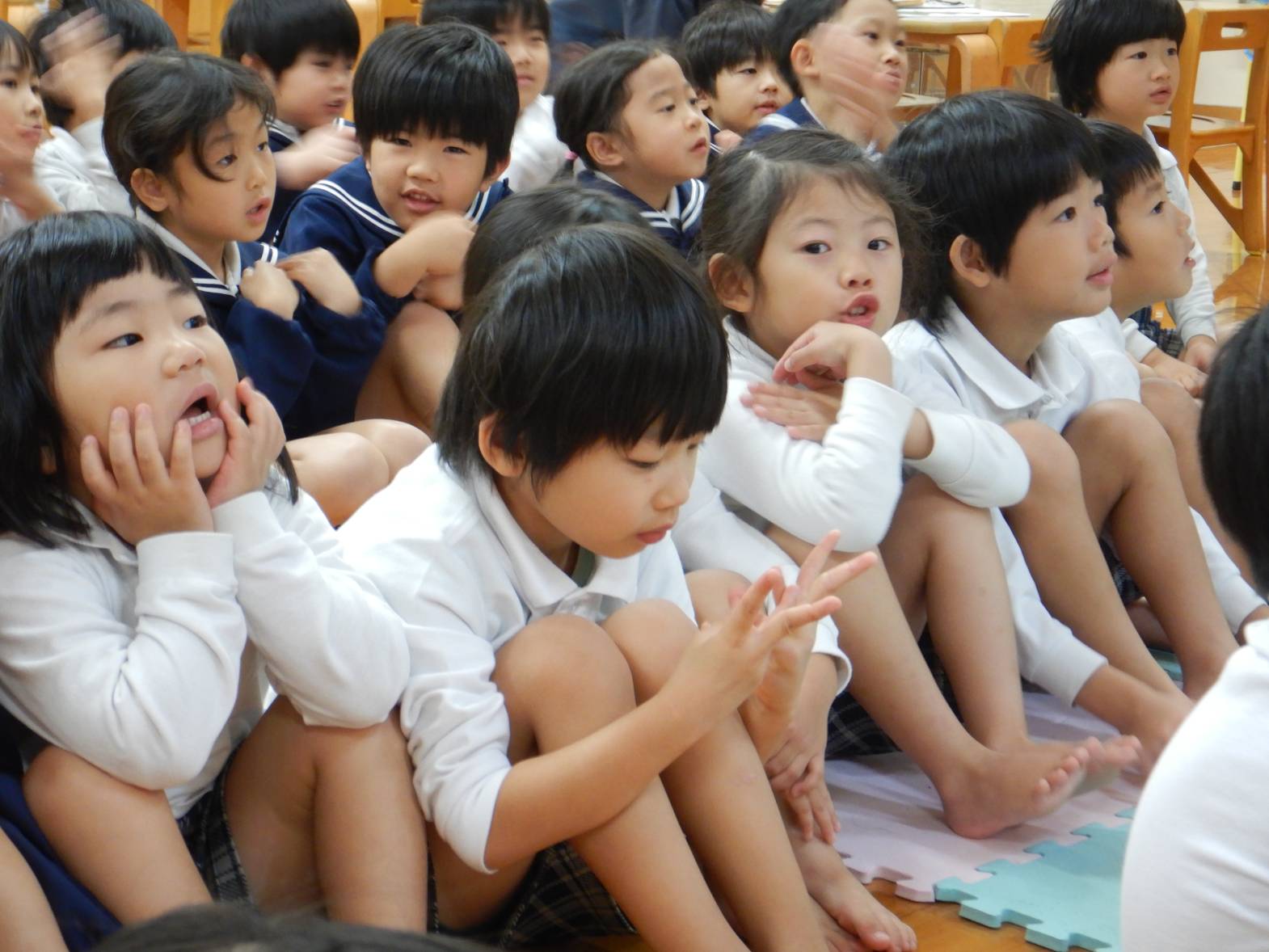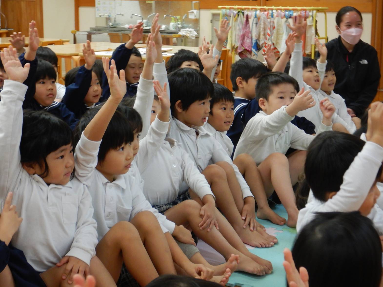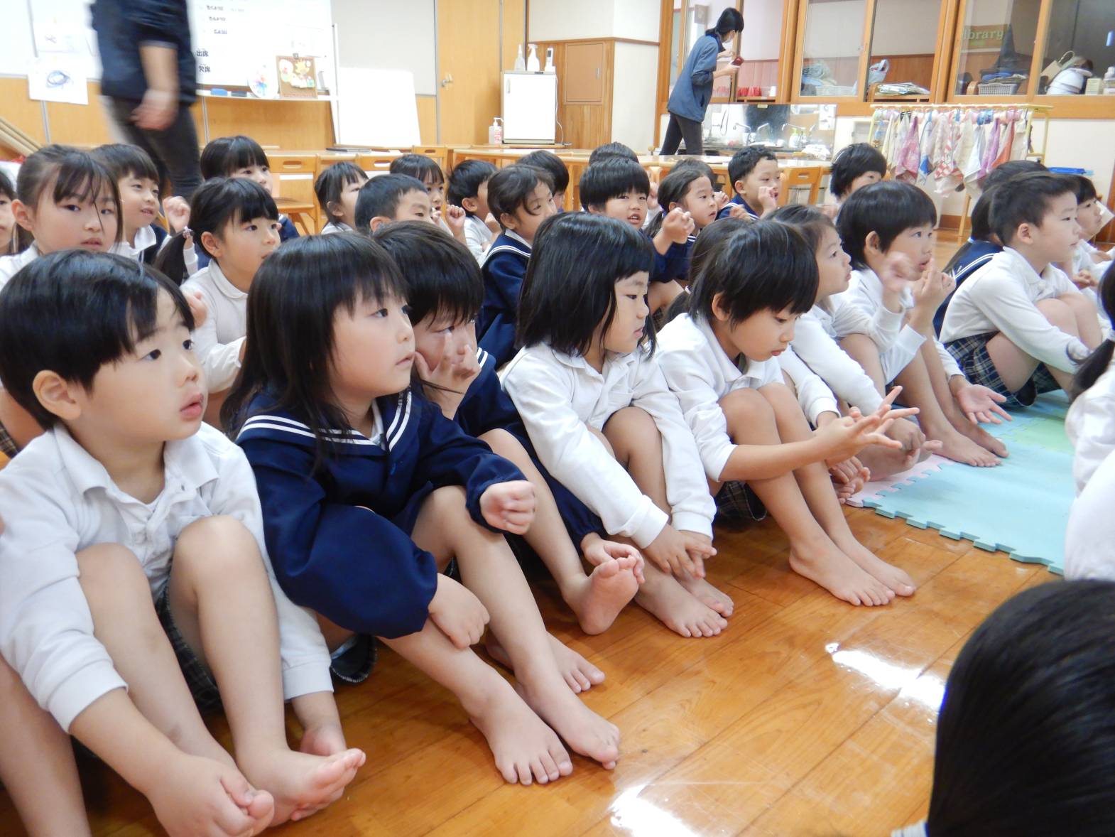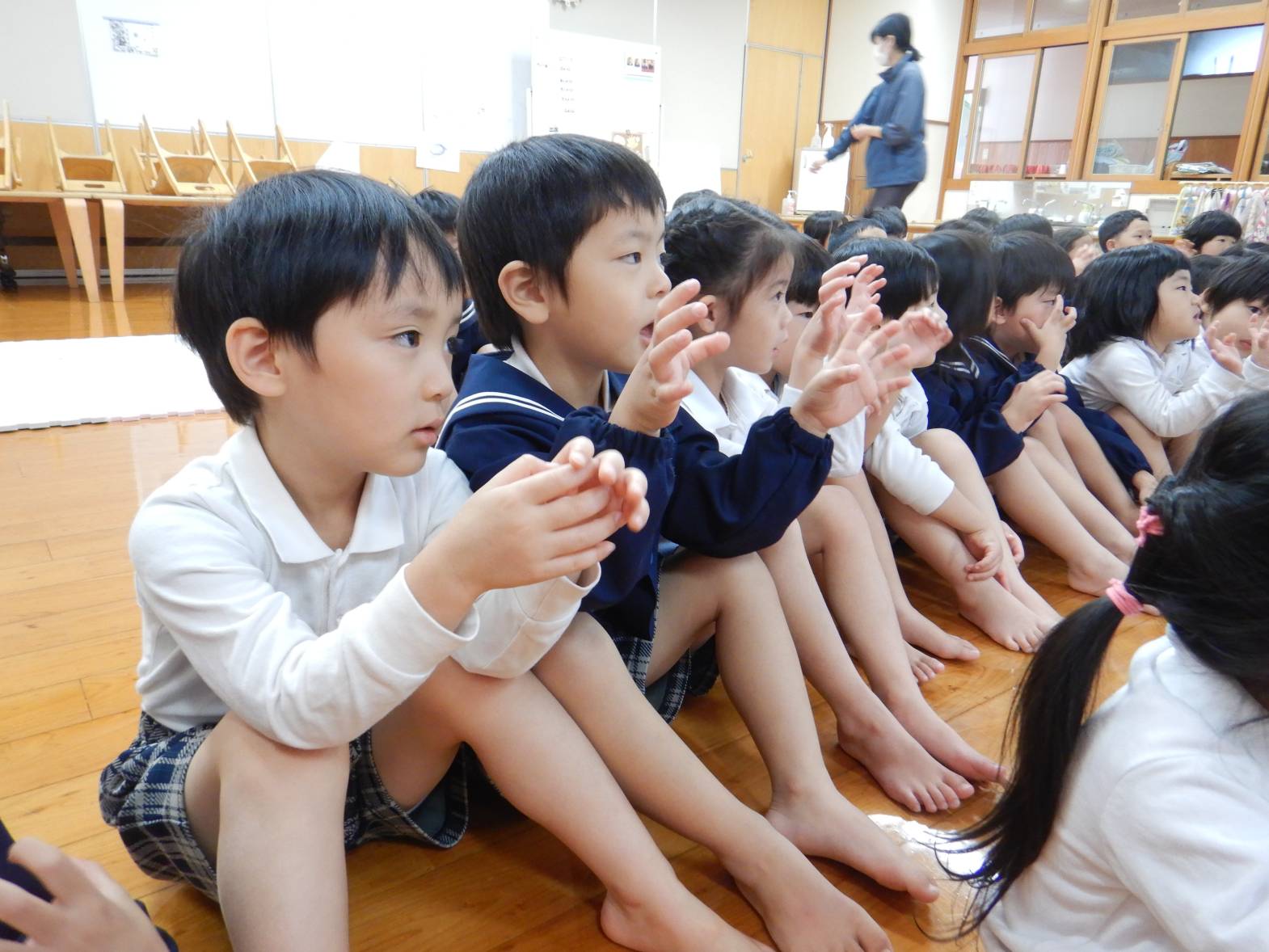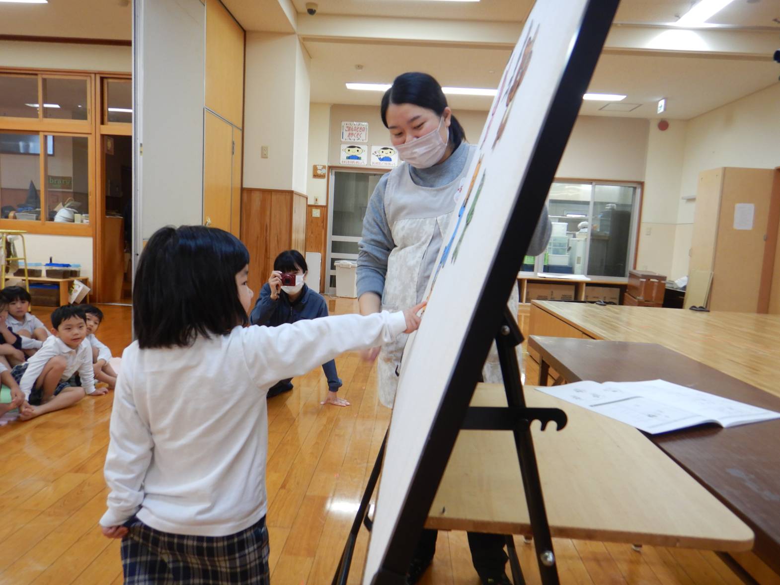 今週は子どもたちの大好きなお話会でした。 パネルシアター「へんてこおしくらまんじゅう」では、「体が違うよね。」とお友だちと楽しそうに話をする子どもたち。 飛び出す絵本「三匹の子ブタ」では、「知ってる!」と目を輝かせる子どもたち。 「次は何の絵本かな?」と次のお話会を心待ちにするうさぎ組さんでした。