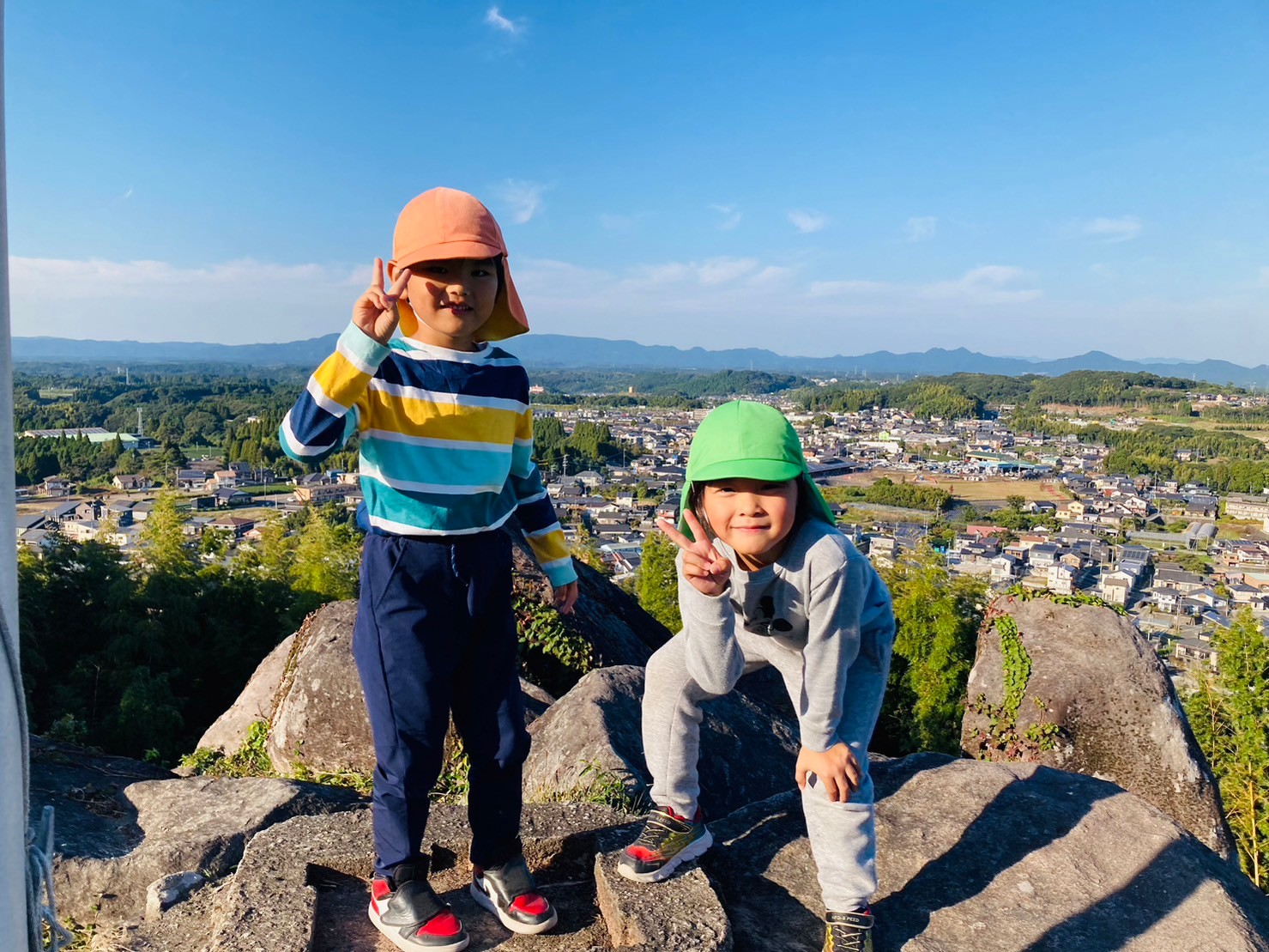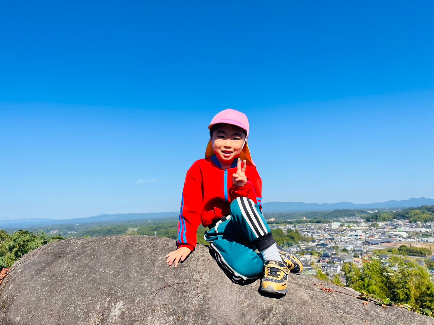 春山にある、上山岡で登山を行いました。 「山の中寒いね~。」「だれが階段作ってくれたんだろう?」とお友達と会話を楽しみながら、15分程、急な階段を上りました! 山頂が近付くと、「もうちょっと?空が見えて来た!」とドキドキ、ワクワクな様子の子どもたち! 山頂では、「僕が行く小学校が見える!」と学校や自分の家を探したり、「ヤッホー!」と大きな声を出したりする子どもたちの姿が見られました!