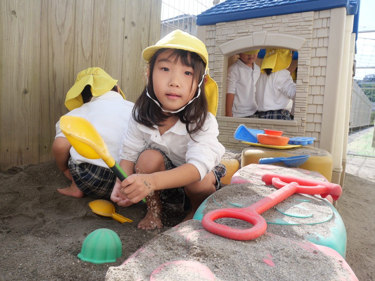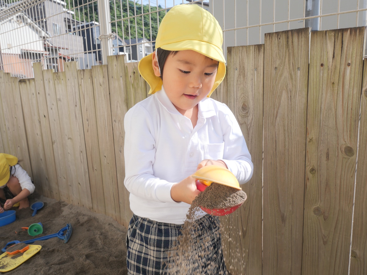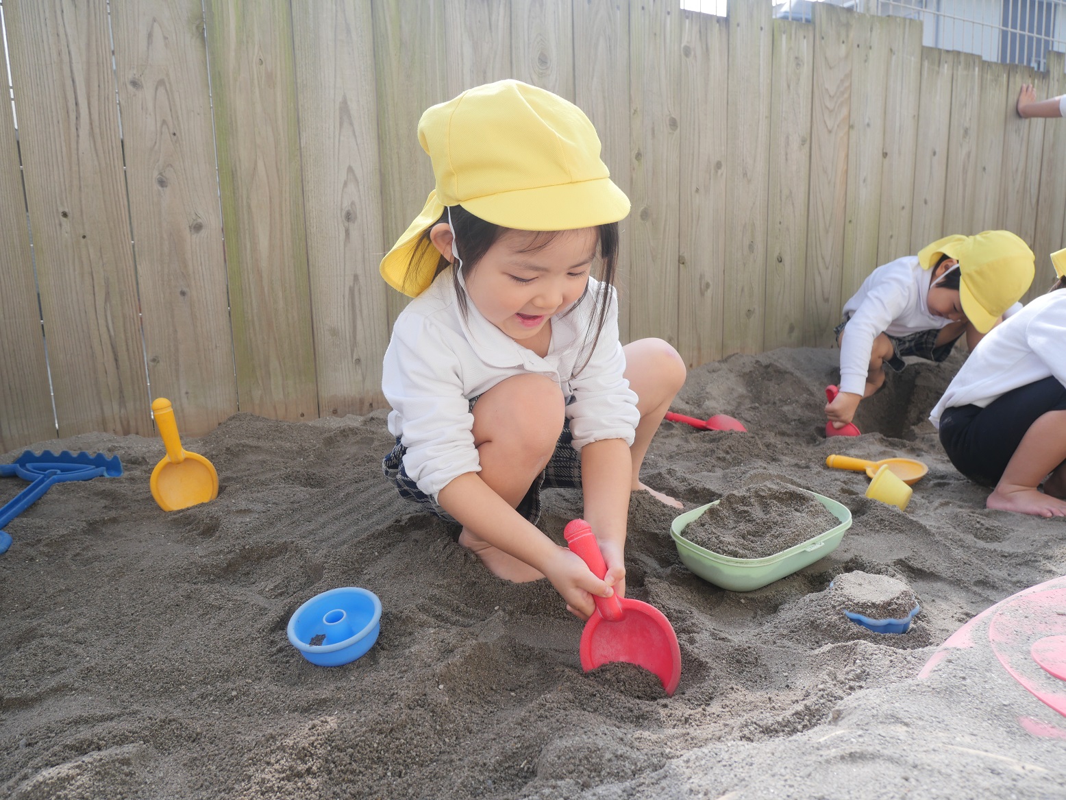 「砂がたくさんとれたよ。」「穴が大きくなった!」と、友だち同士で嬉しそうに話す姿が見られました。