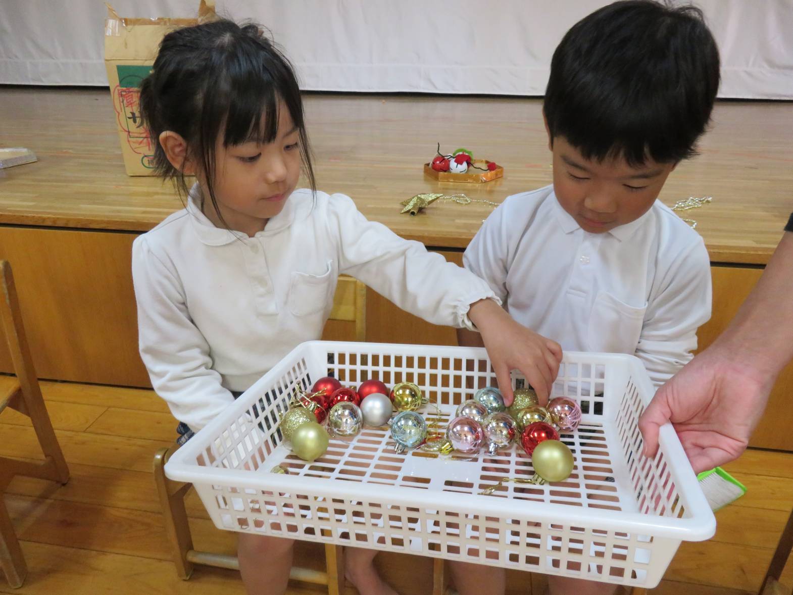 「どの飾りにしようかな?」「どこにつけようかな?」と一つひとつ真剣な子どもたち。