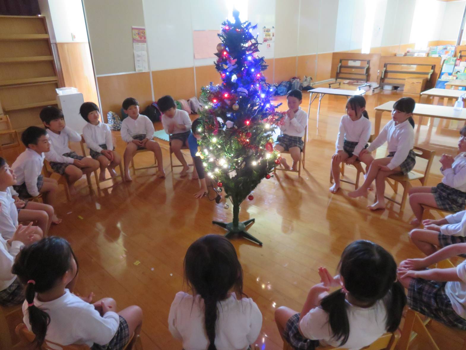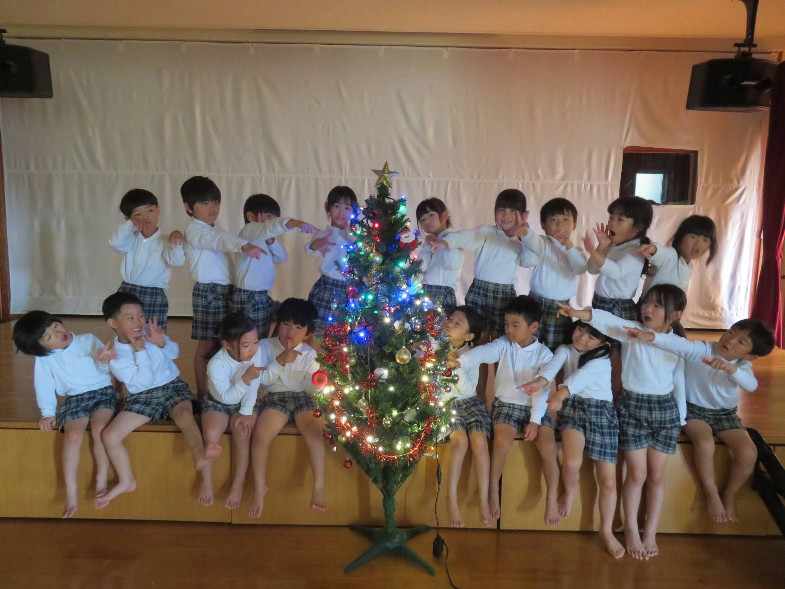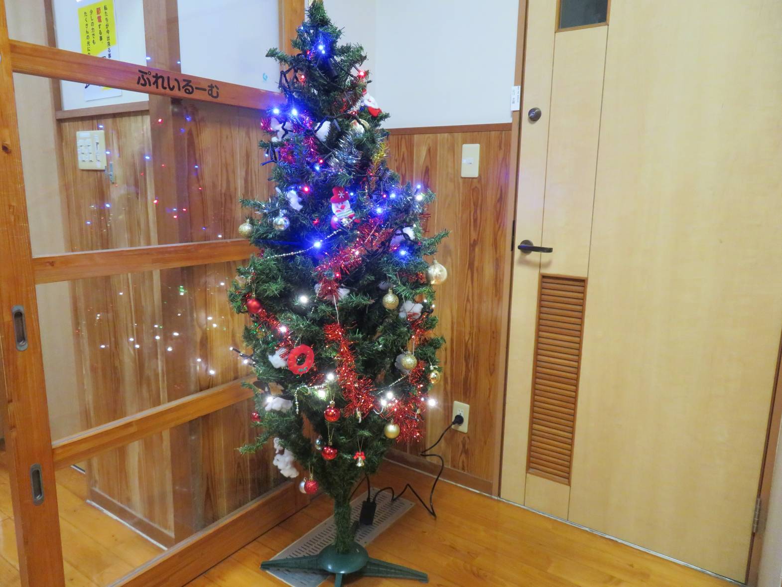 きりん組みんなで飾りつけをしたツリーはプレイルーム前にひっそりと登場です!