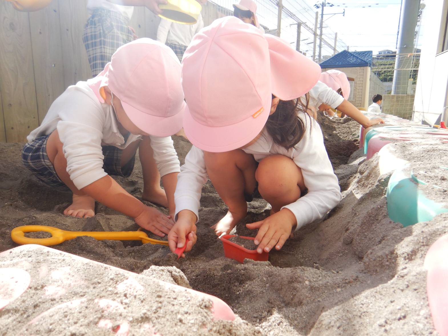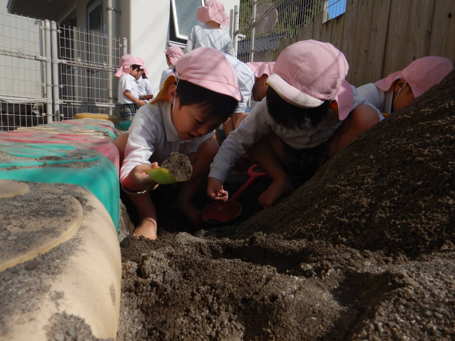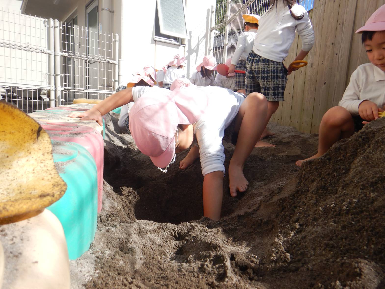 今日は、砂場に行きました。 「お山一緒につくろ!」「トンネルで来たよ。」とウキウキの子どもたち。 「お帰りなさい!」とごっこ遊びを楽しむ姿が見られました。 「また行きたいね!」と次の砂場を楽しみにするうさぎ組さんでした。