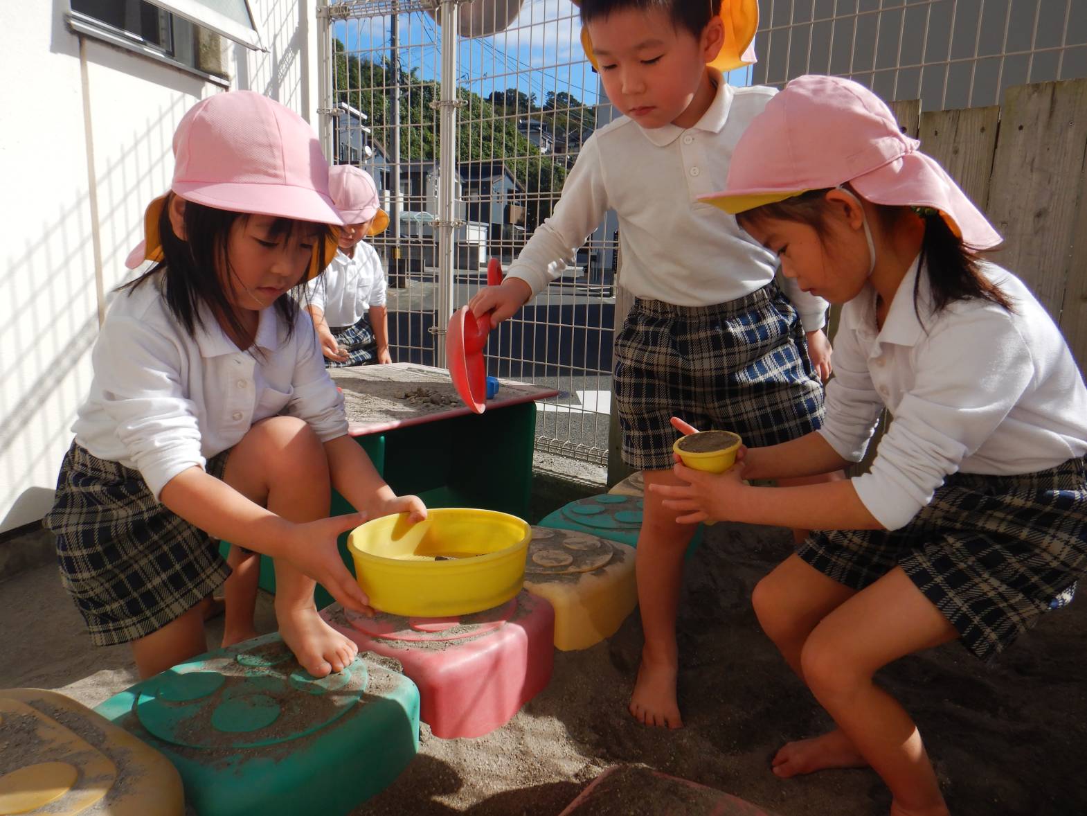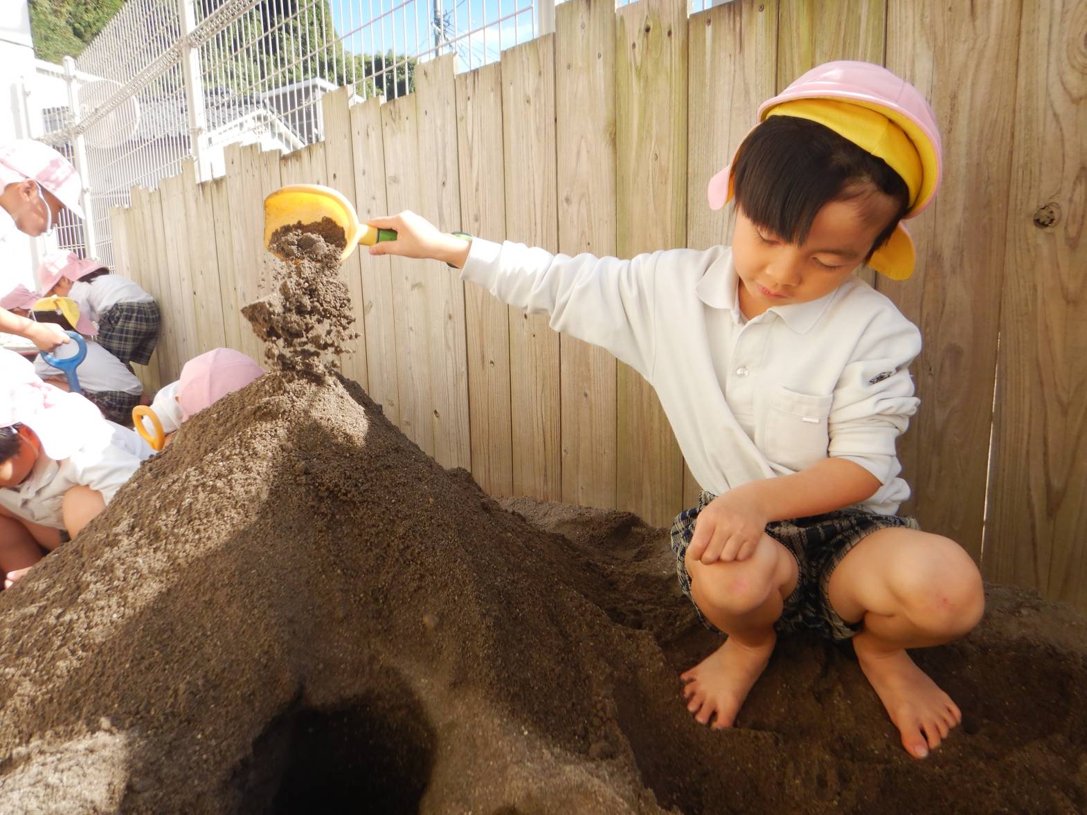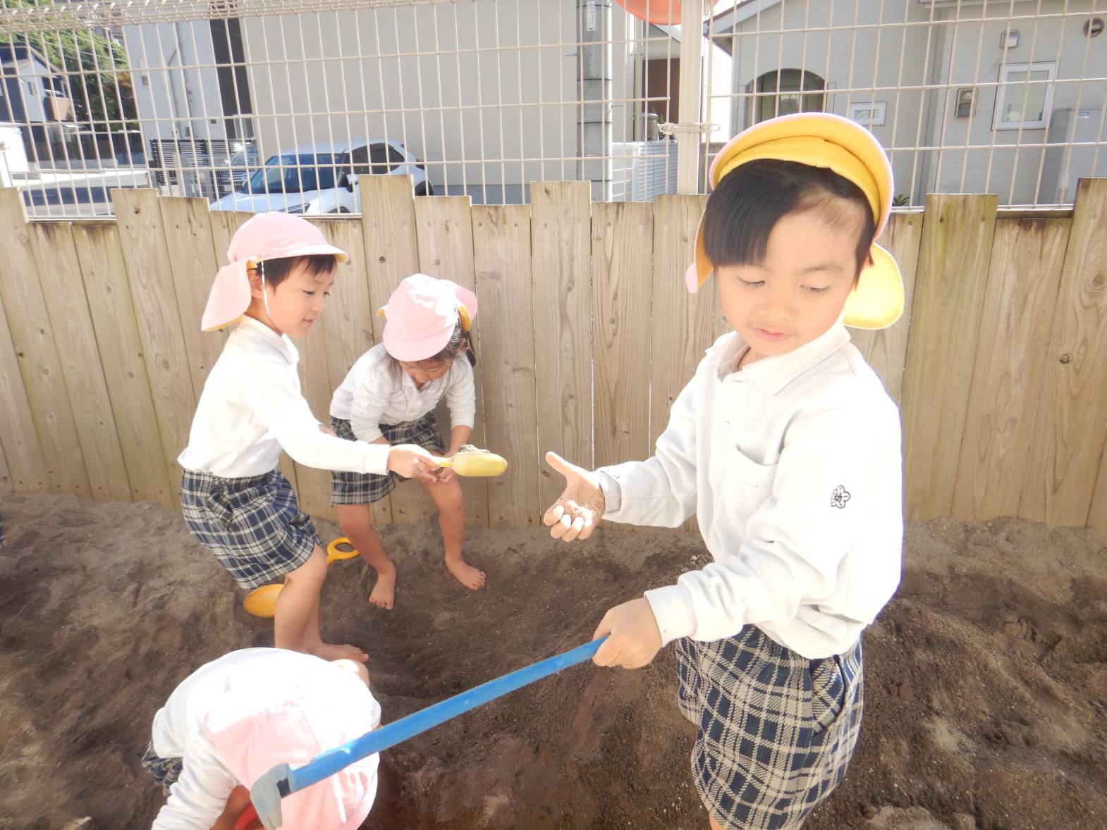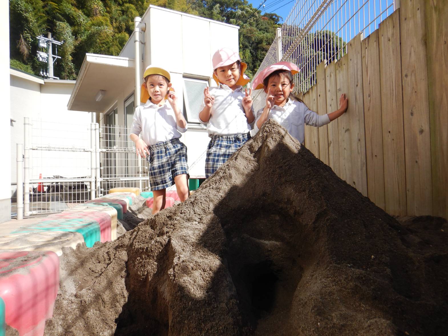 今日は、砂場に行きました。 「お山一緒につくろ!」「トンネルで来たよ。」とウキウキの子どもたち。 「お帰りなさい!」とごっこ遊びを楽しむ姿が見られました。 「また行きたいね!」と次の砂場を楽しみにするうさぎ組さんでした。