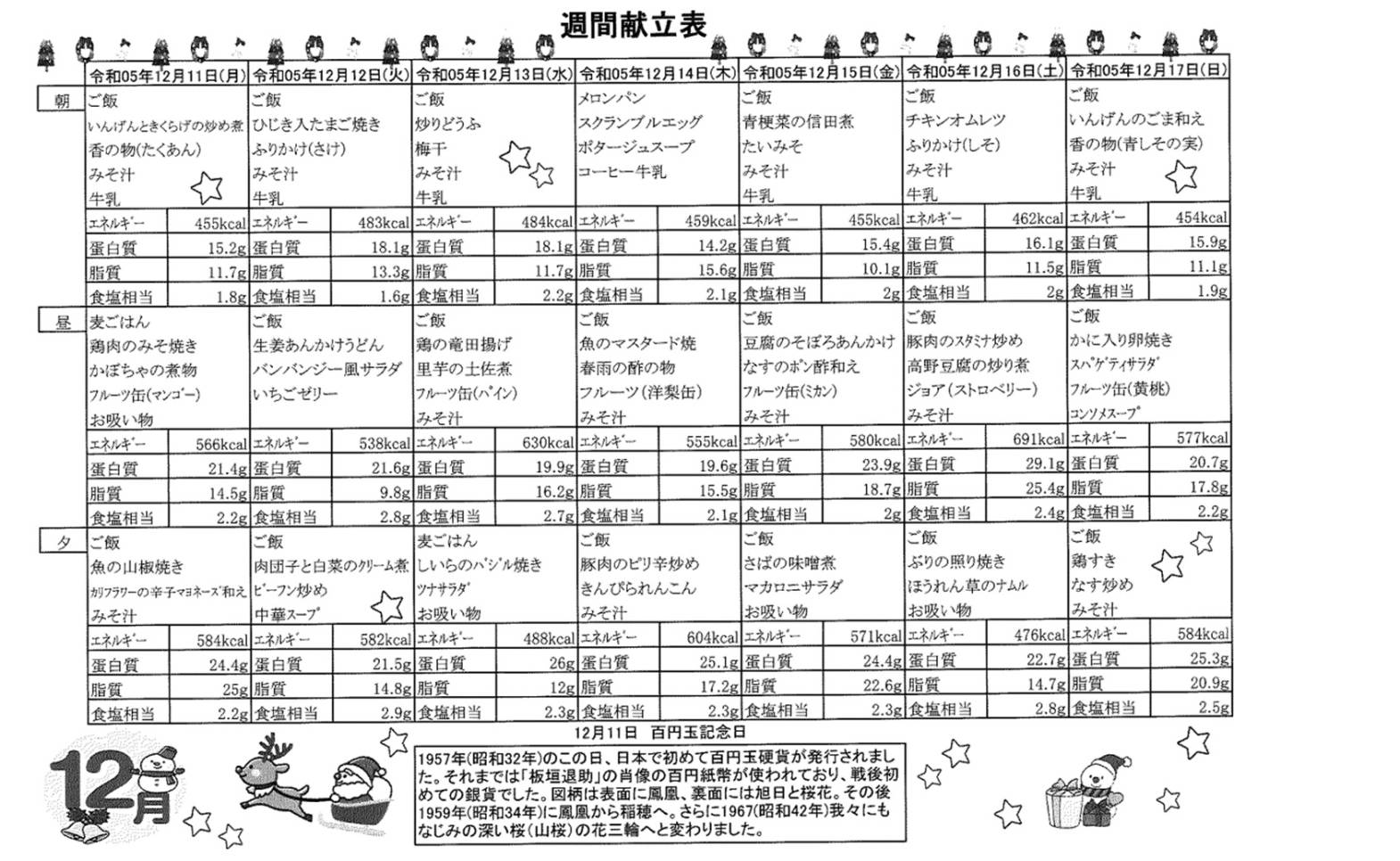 12月11日(月)~12月17日(日)の献立表になります。ぜひご覧ください。