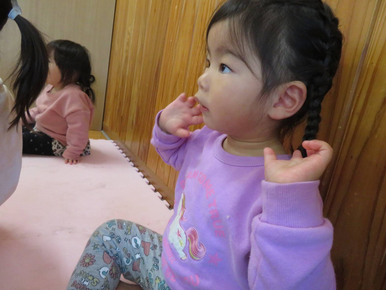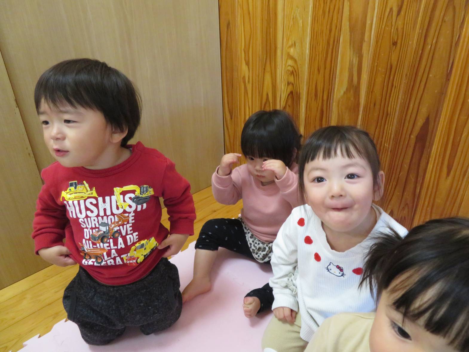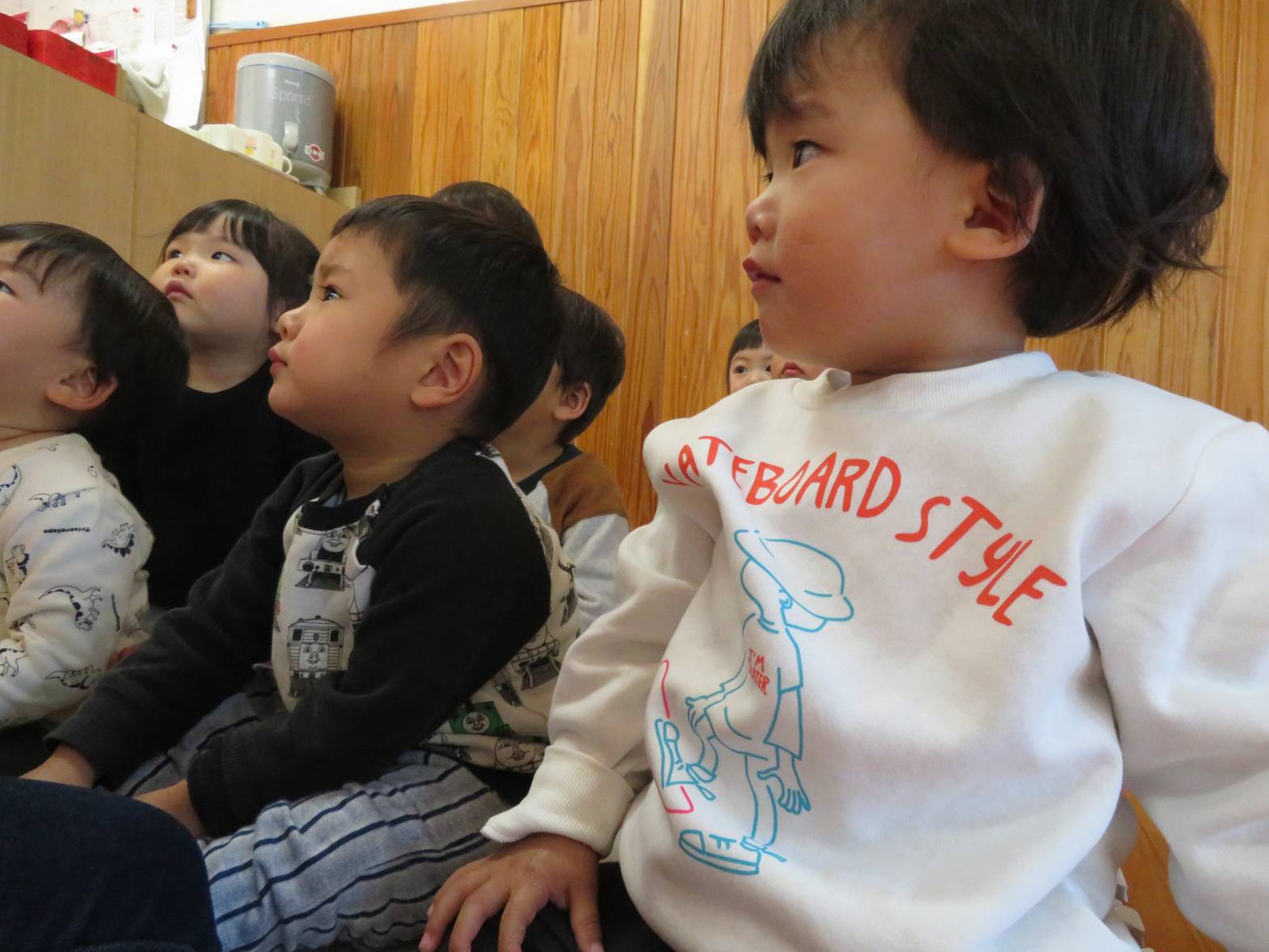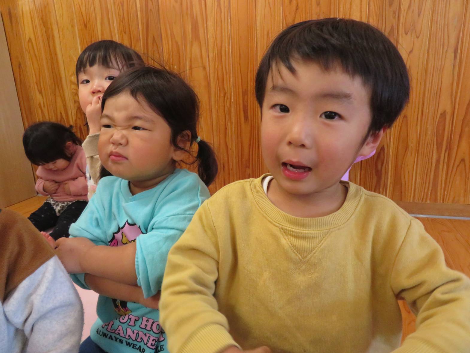 朝夕の集まりでは、絵本の読み聞かせを行っています。 絵本が大好きな子どもたち! 保育者が絵本を持つと、「何かな?」と楽しみにする姿が見られます。 『おいしいおかお』の絵本を読むと、絵本に出てくるお顔の真似をするこあら組さん! 「にっこり~!」、「えんえーん!」、「プンプン!」等といいながら、色々な表情を見せてくれました。 読み聞かせを通して、いろいろな言葉や名前を覚えてきている子どもたち♪ 今後も様々な絵本を提供していきたいと思います!
