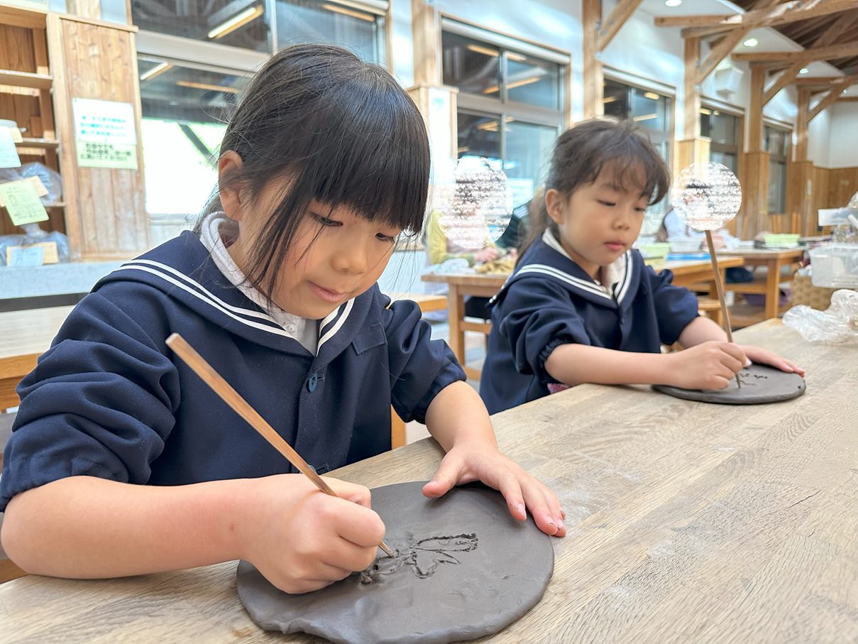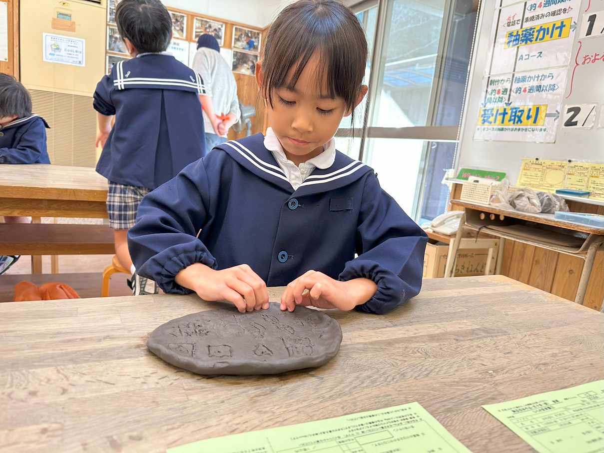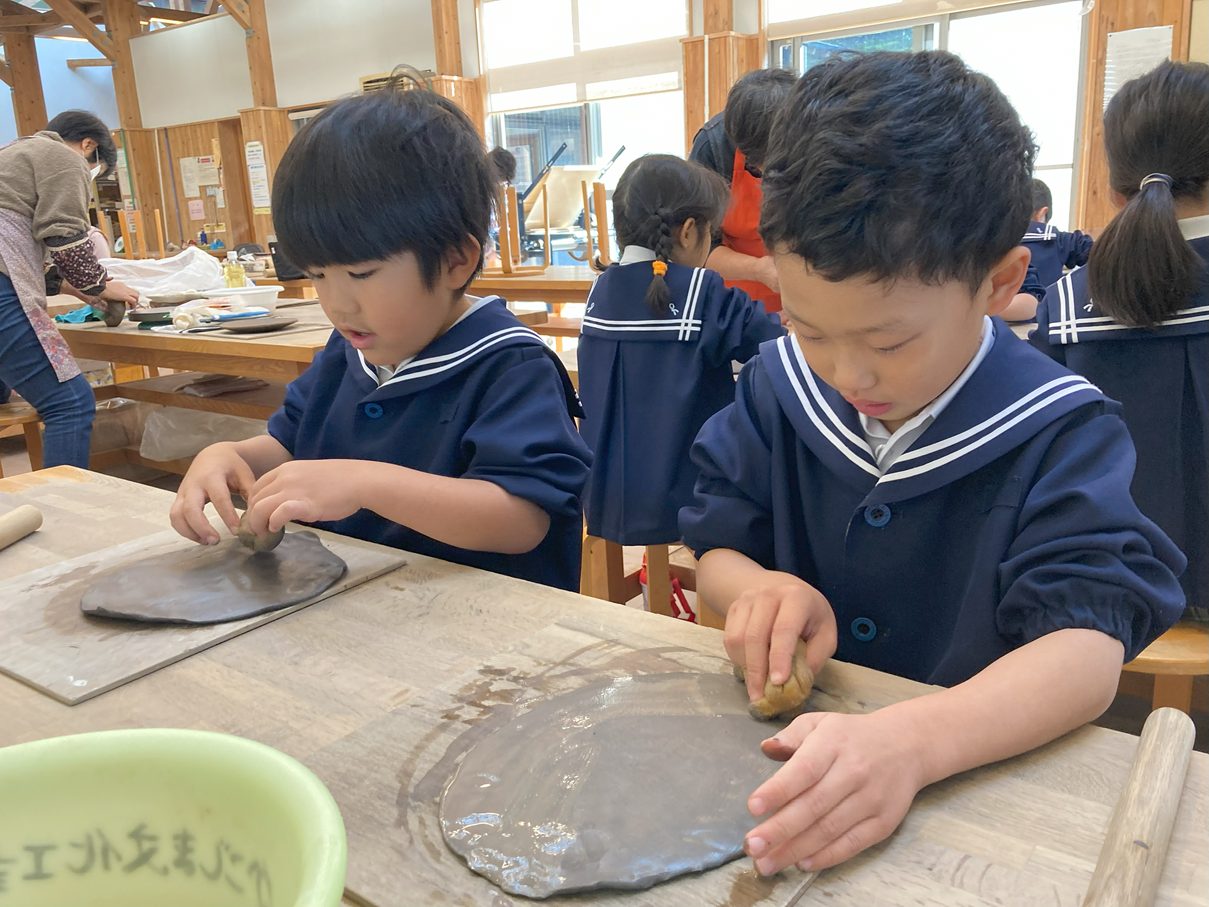 「保育園の粘土より硬いぞ!」「真っ黒い粘土だね!」と保育園の粘土との違いを発見する姿が見られました。