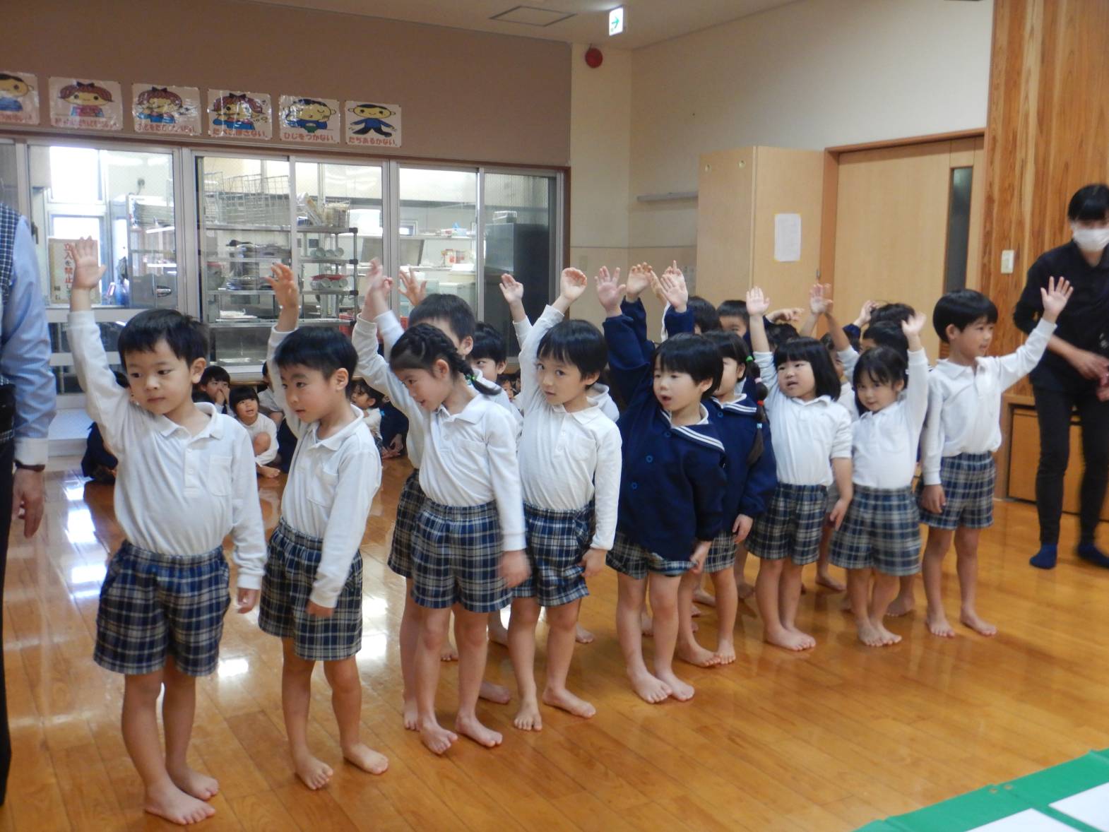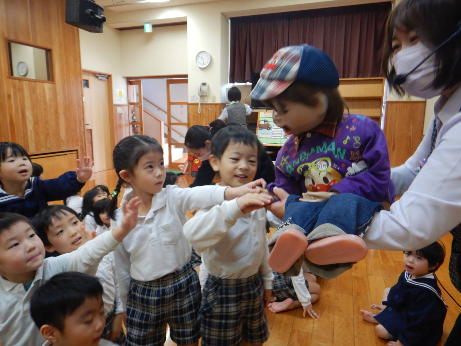 今週は交通安全教室がありました。 「何するんだろうね。」と興味津々の子どもたち。 話を聞いて「ちゃんとルールを守らないとね!」と改めて交通ルールの大切さを知る姿が見られました。 最後に「とまと」のお約束を教えてもらい「忘れないよ!」と自信満々のうさぎ組さんでした。