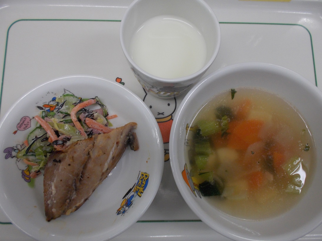 12月18日(月)から12月23日(土)までの給食献立写真・離乳食提供量と写真の一例です。