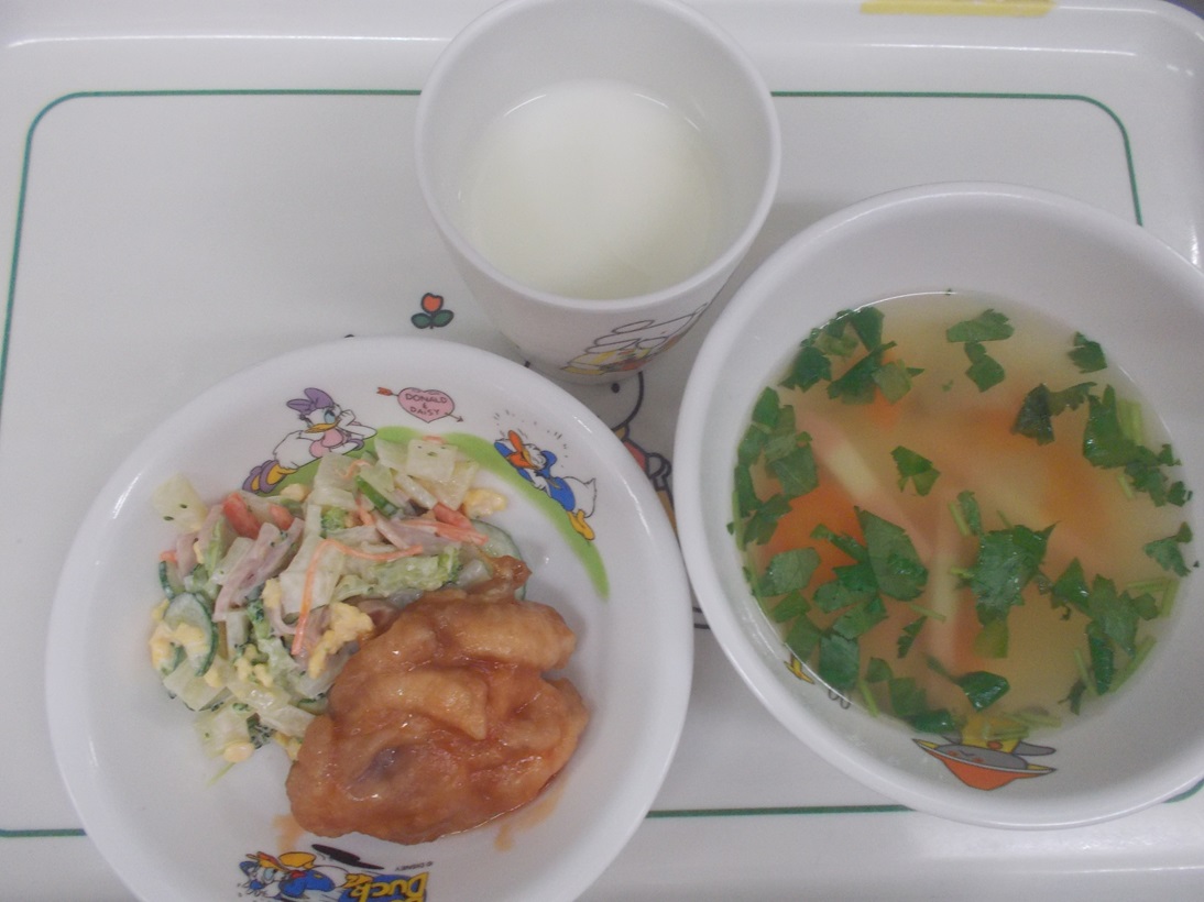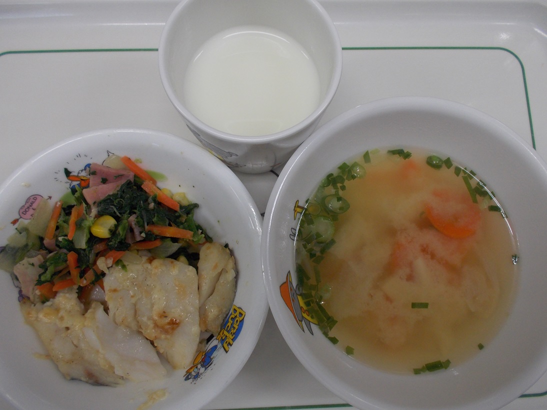 小松菜の味噌汁:お玉1杯弱(120ml)
