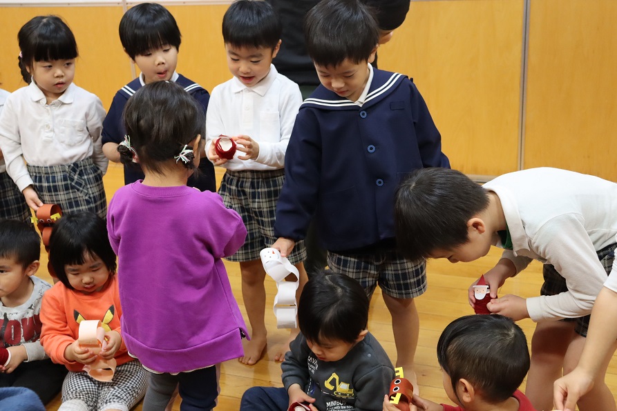 プレゼントを交換する際には、「これは僕が作ったんだよ。」「どうぞ!」と嬉しそうに渡す姿が見られました。