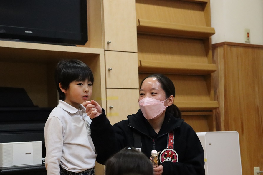 「サンタさんに手紙を書いたら、プレセントがくるんだ!」「ベルってまよけの意味があるんだね。」と、物語が進んでいく中で様々なことを学んでいく姿が見られました。