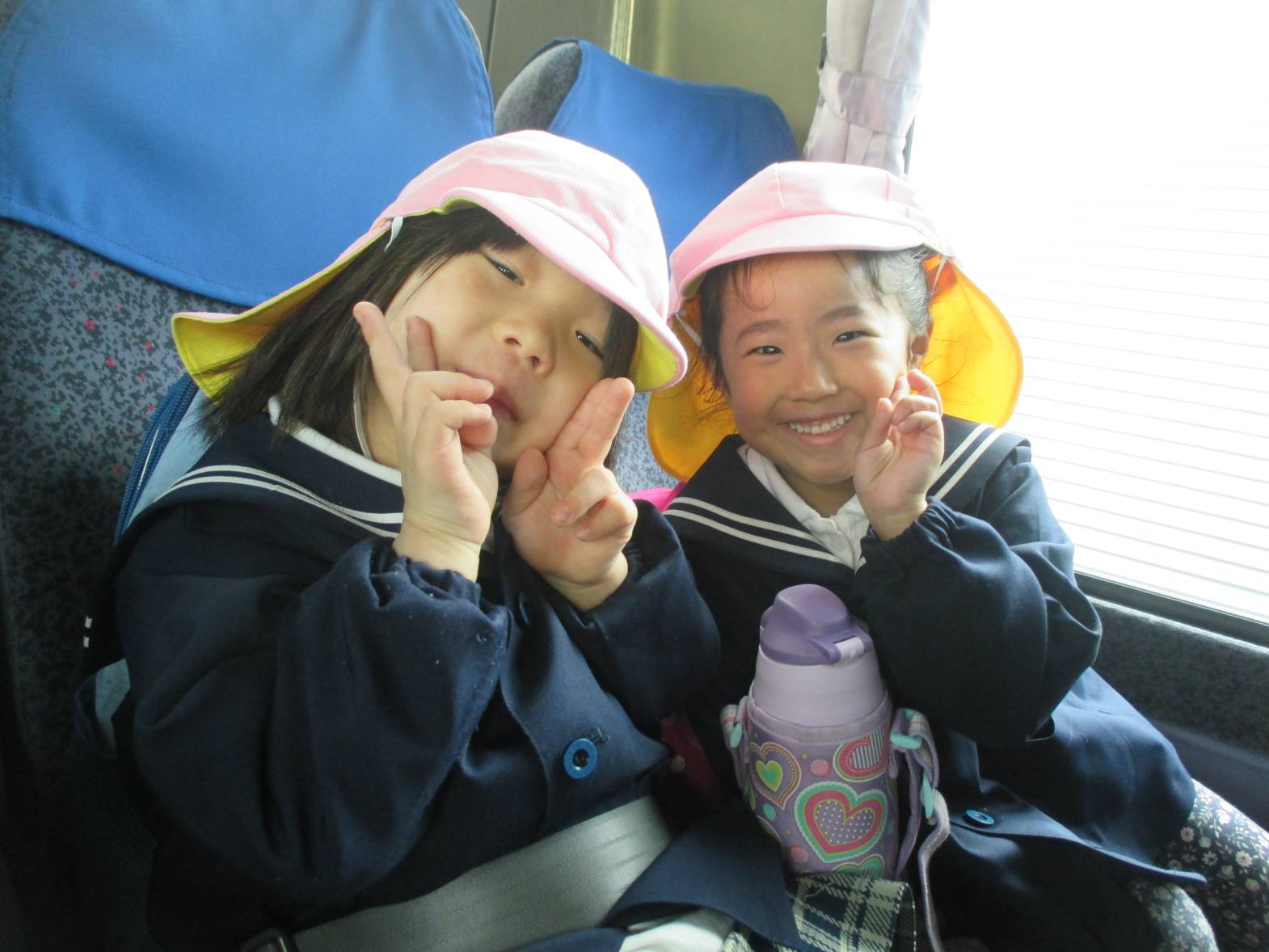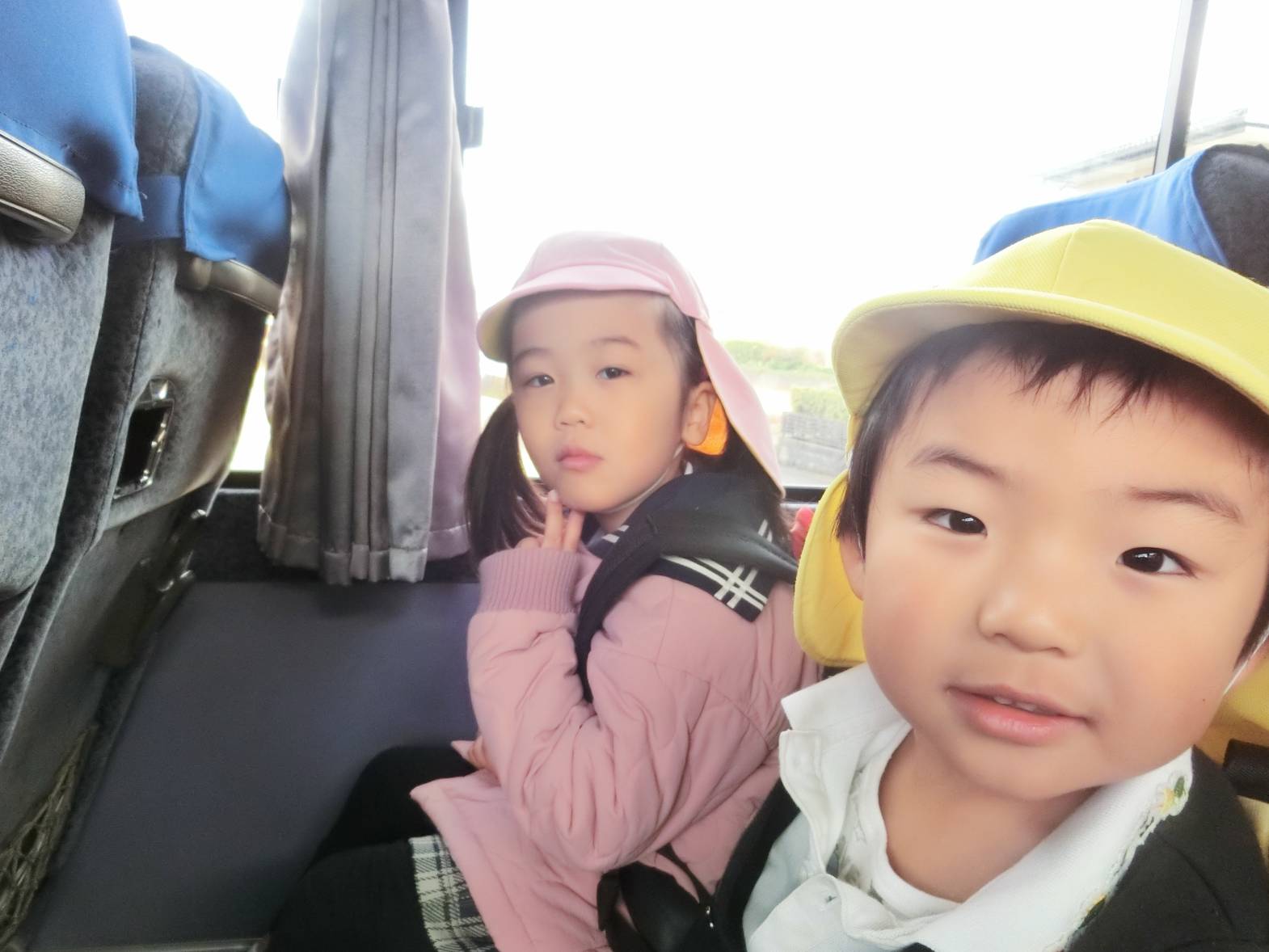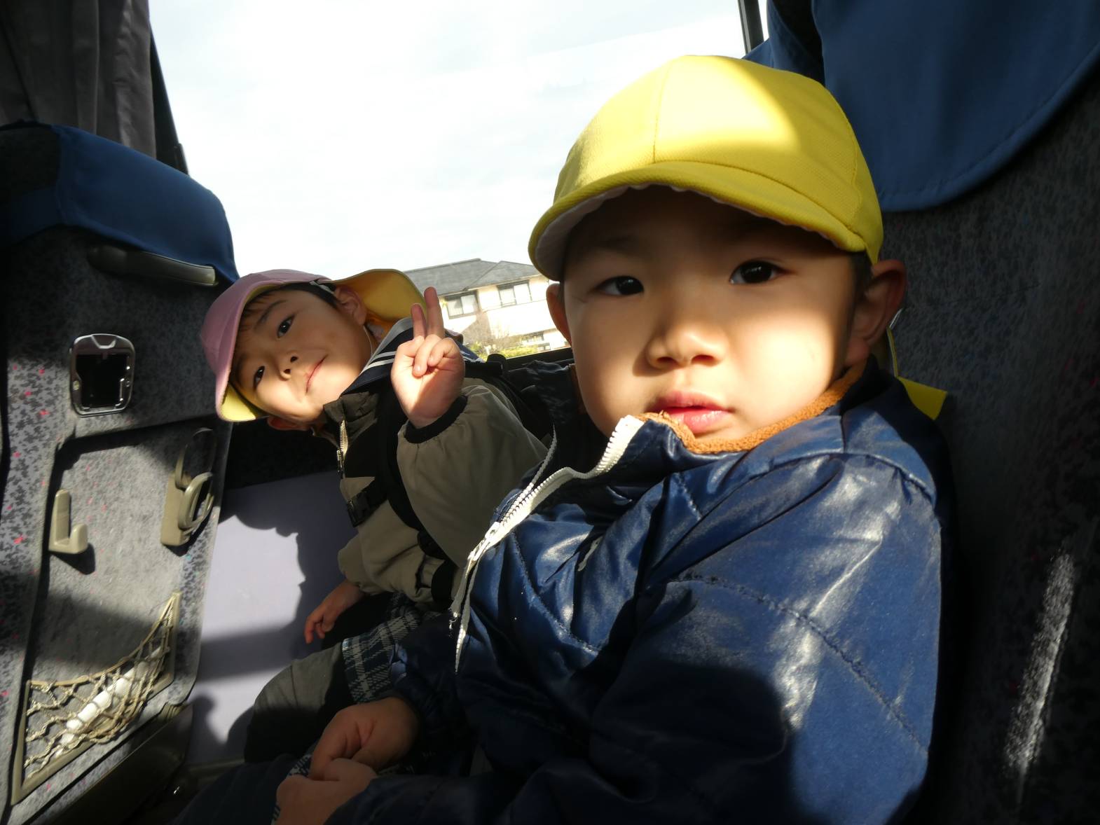 バスの中では、「ここ、ばあばに家の近く。」、「パパのお仕事見えるかな?」、「あ!あそこになんかあるよ。」、「木のトンネルだね。」と子どもたちもみんなで乗る初めてのバスに興奮気味です。