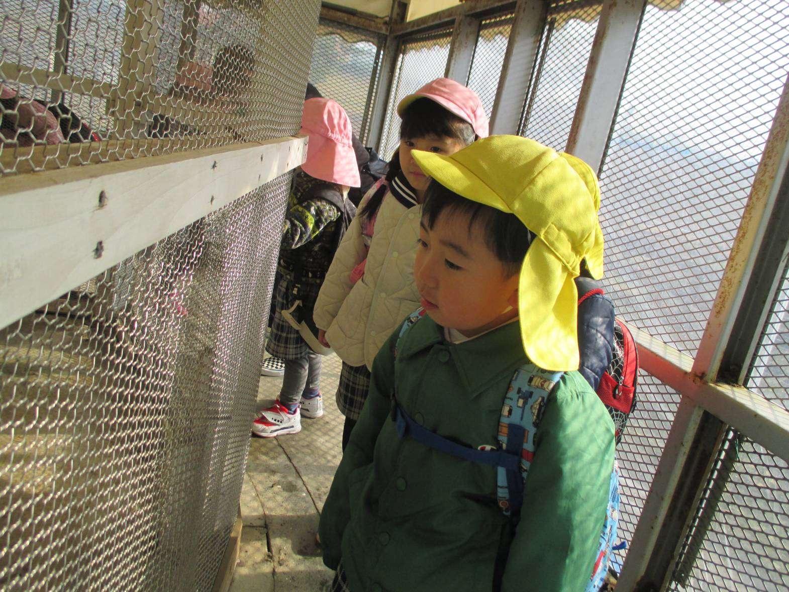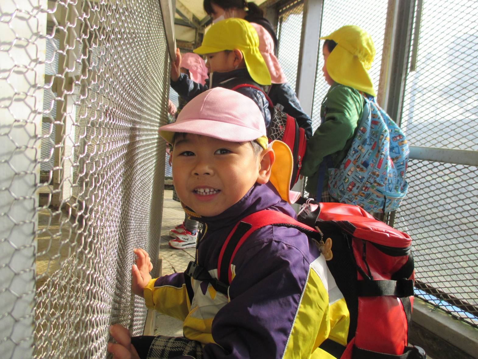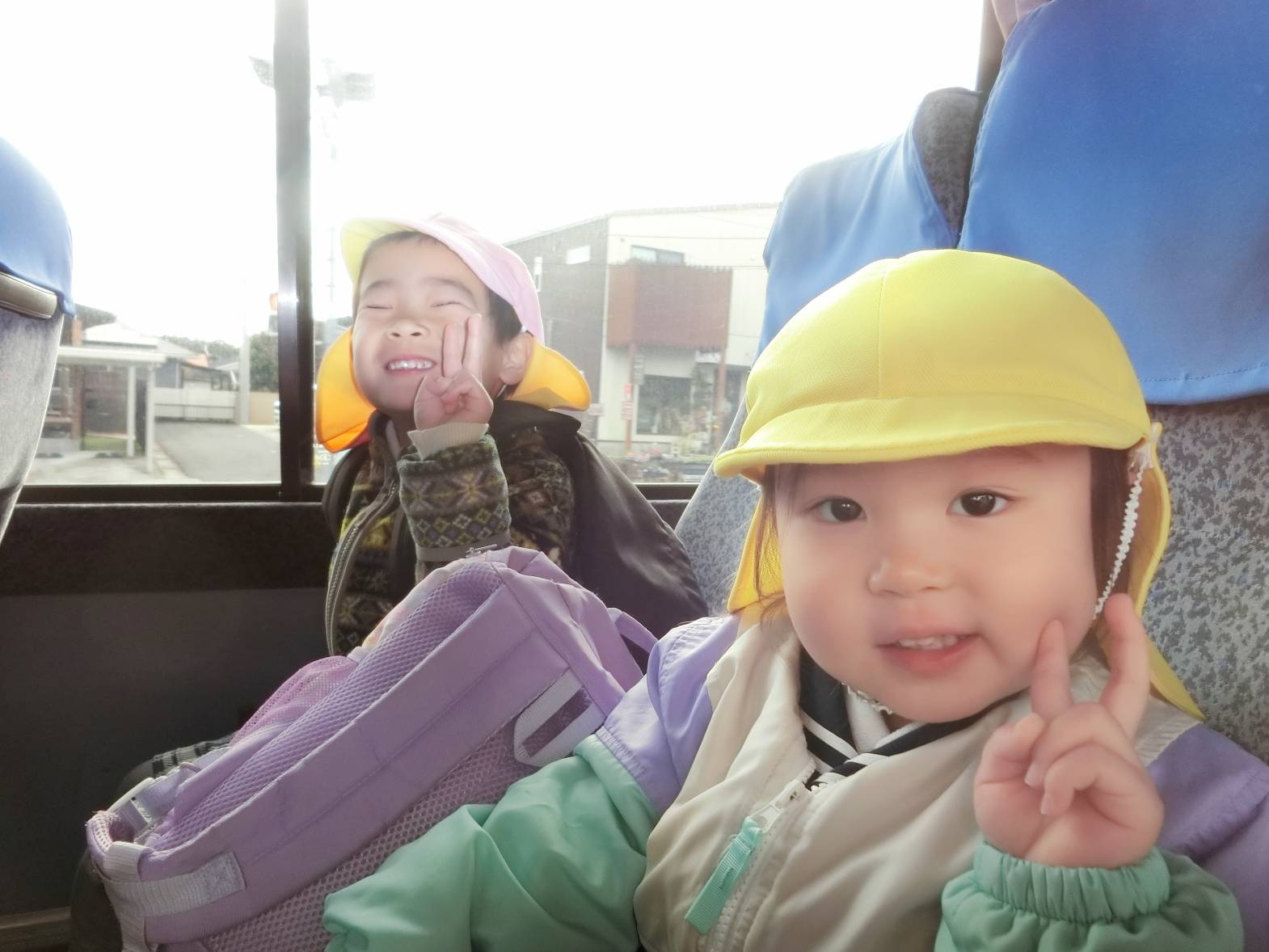 バスの中では、「ここ、ばあばに家の近く。」、「パパのお仕事見えるかな?」、「あ!あそこになんかあるよ。」、「木のトンネルだね。」と子どもたちもみんなで乗る初めてのバスに興奮気味です。