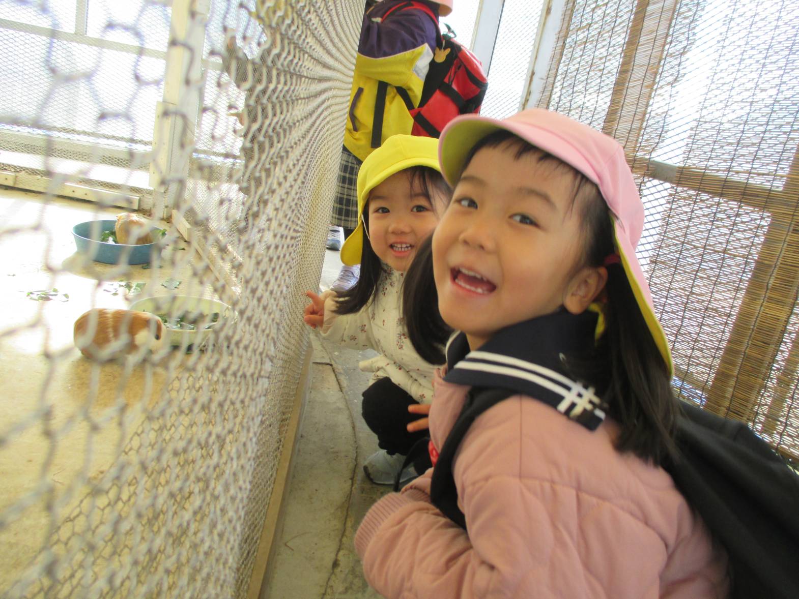 「見て!わあヤギもいるよ!」、「かわいい~♪」、「先生、動物園だよね!」と友だちと一緒に動物を見ることを楽しみました。