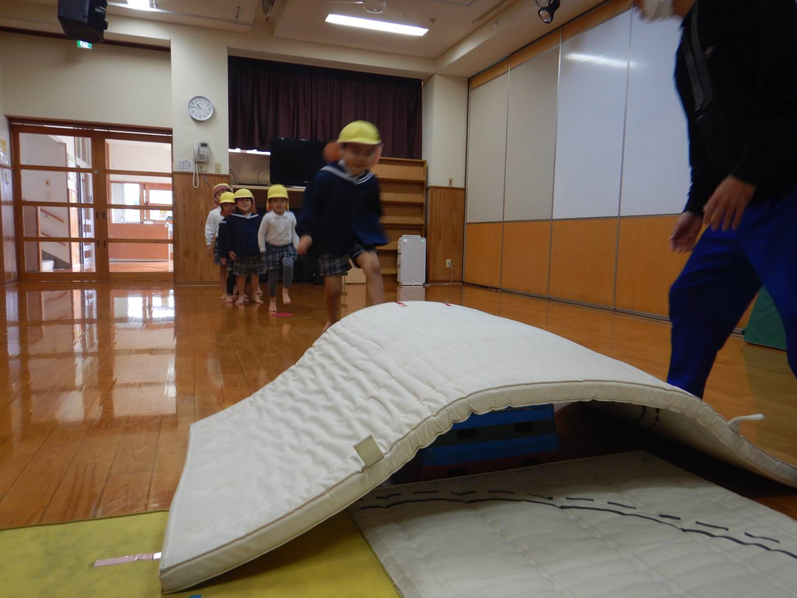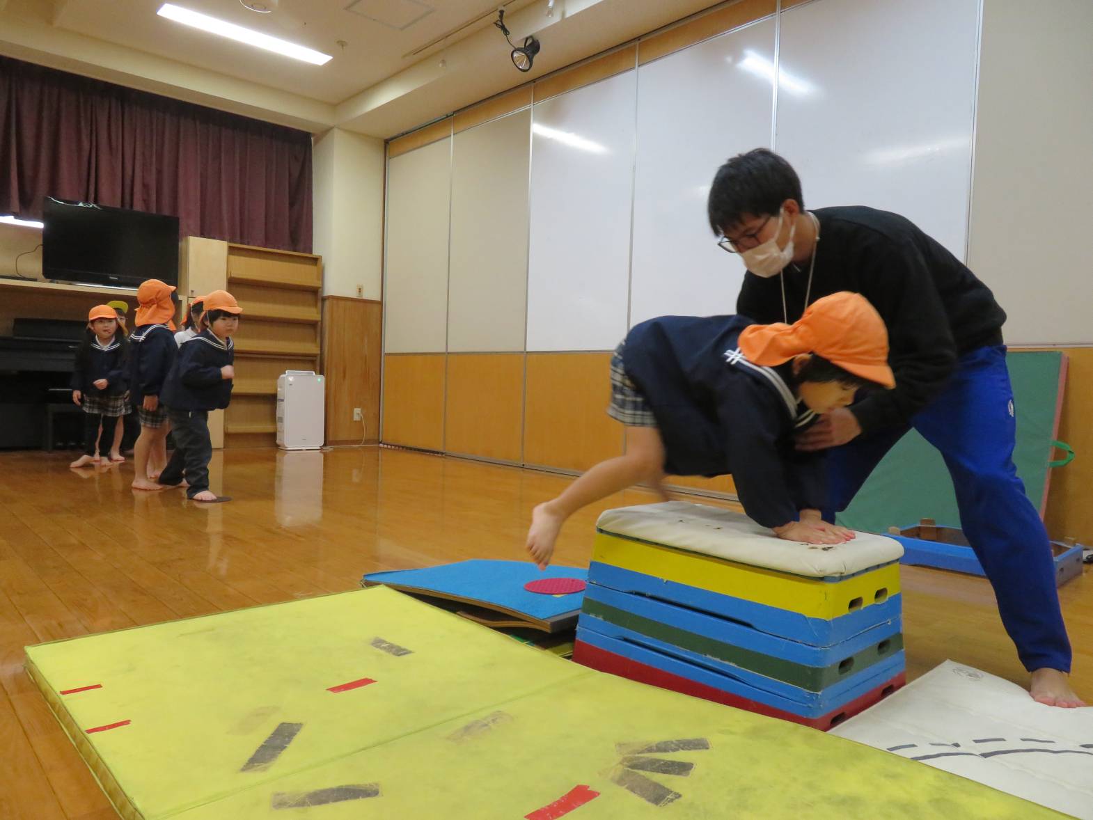 りす組では、飛び込み前転を行いました。