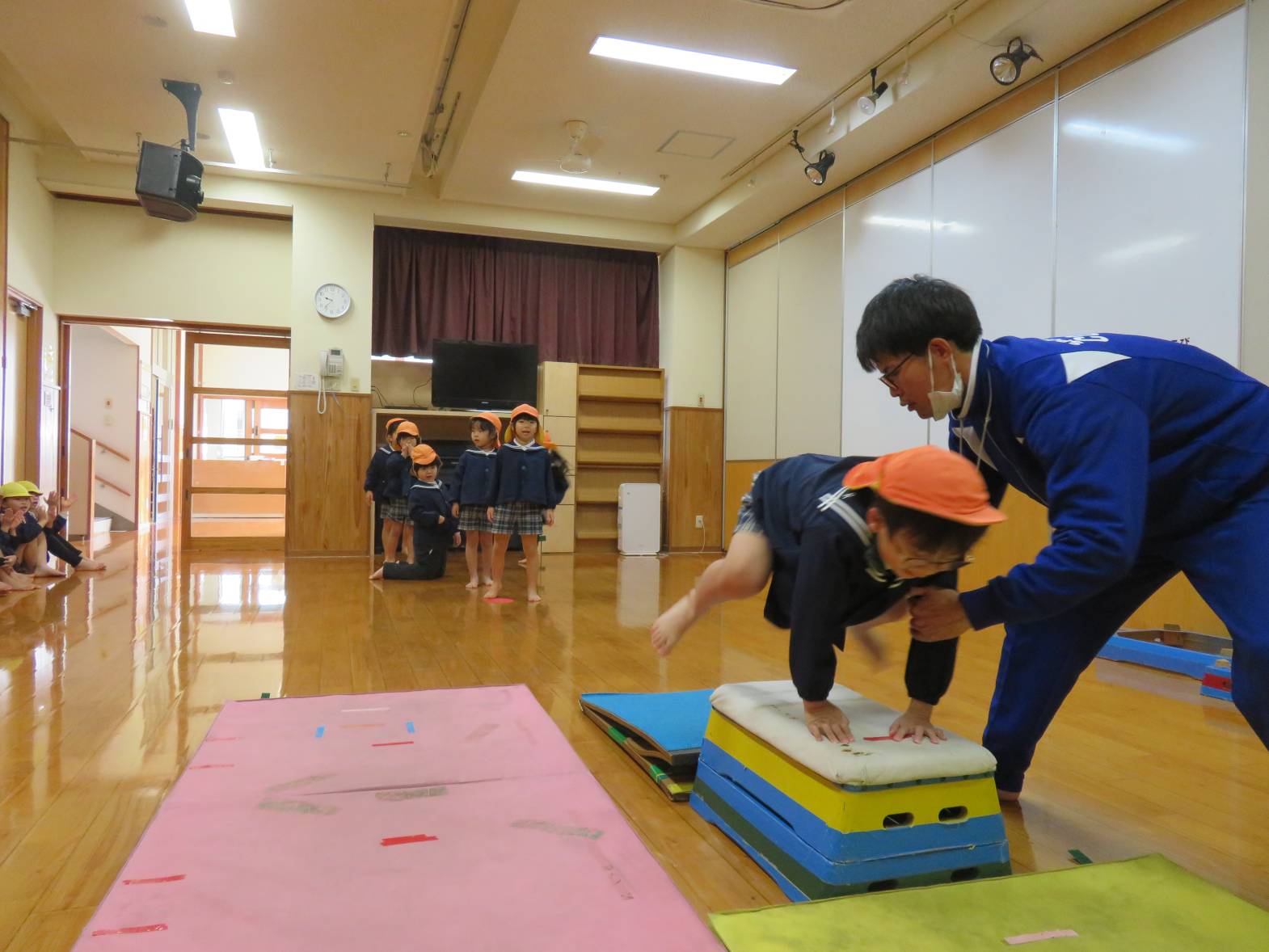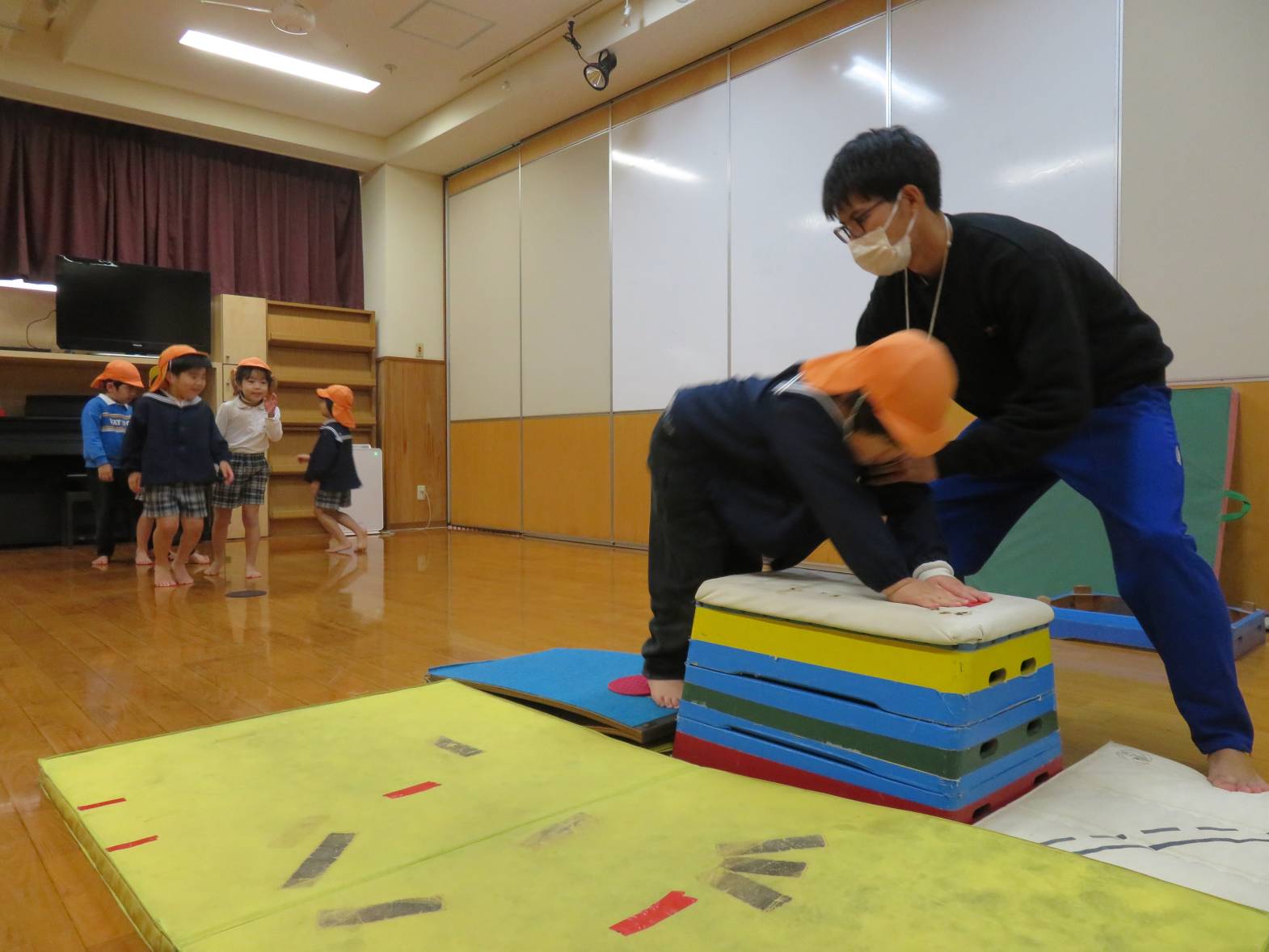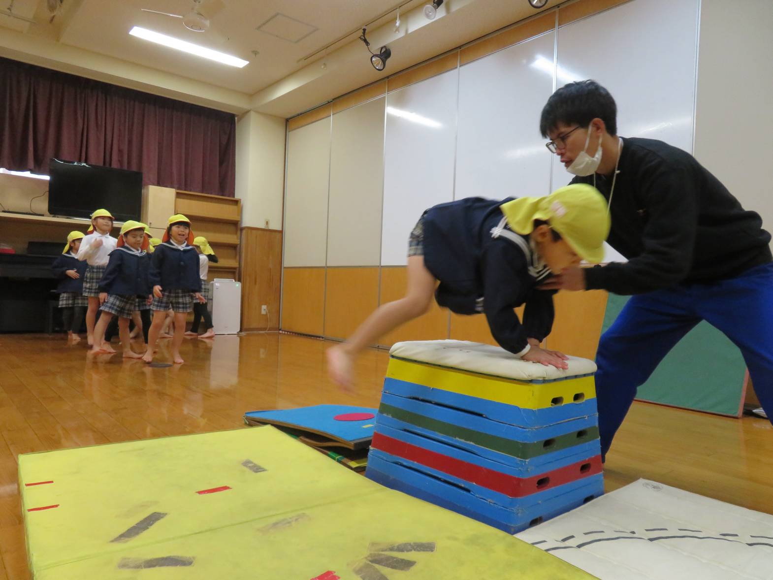きりん組は、跳び箱に挑戦しています!