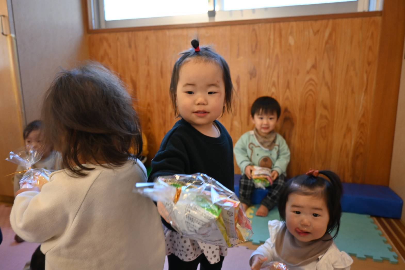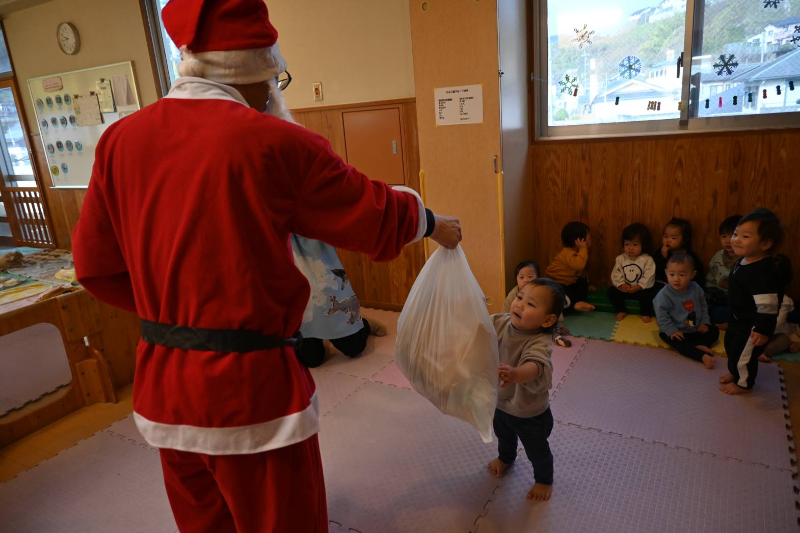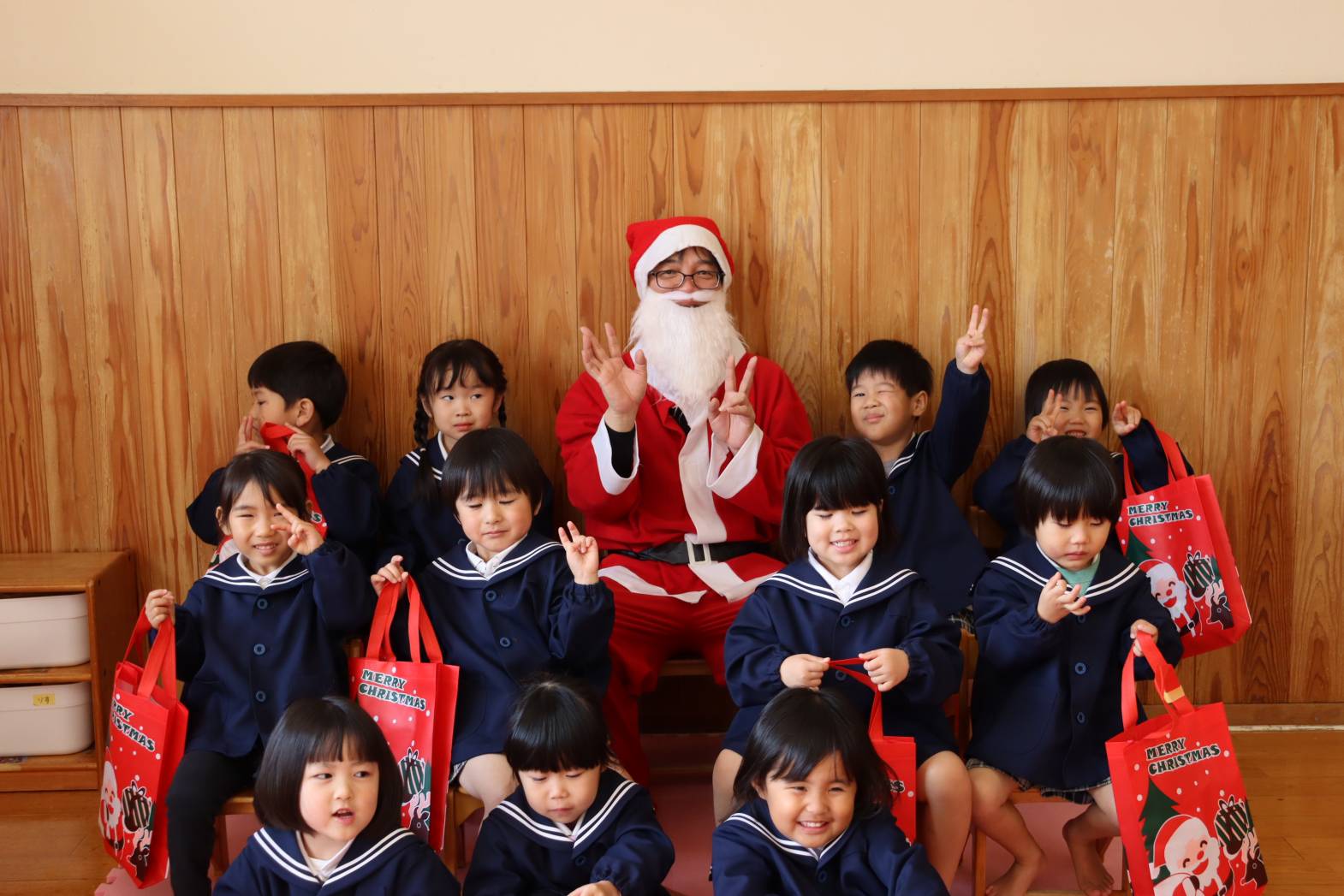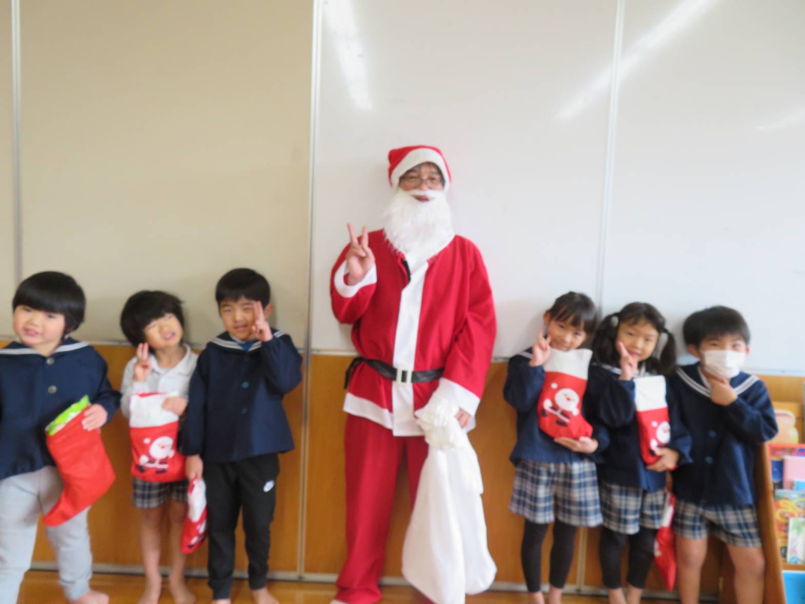子どもたちが待ちに待ったクリスマス! 今日は、ひろき保育園にもサンタさんが来てくれました。 小さい組さんはサンタさんの姿に少し驚きつつも、タッチしたり、手を振ったりと 触れ合うことができました。 大きい組さんでは、「好きな色は何ですか?」「トナカイさんは今日はどこにいますか?」 等とハキハキと質問することができました。 一人ひとりプレゼントを貰い、嬉しそうな表情を見せる子どもたち。 最後はサンタさんと一緒に写真を撮りました。